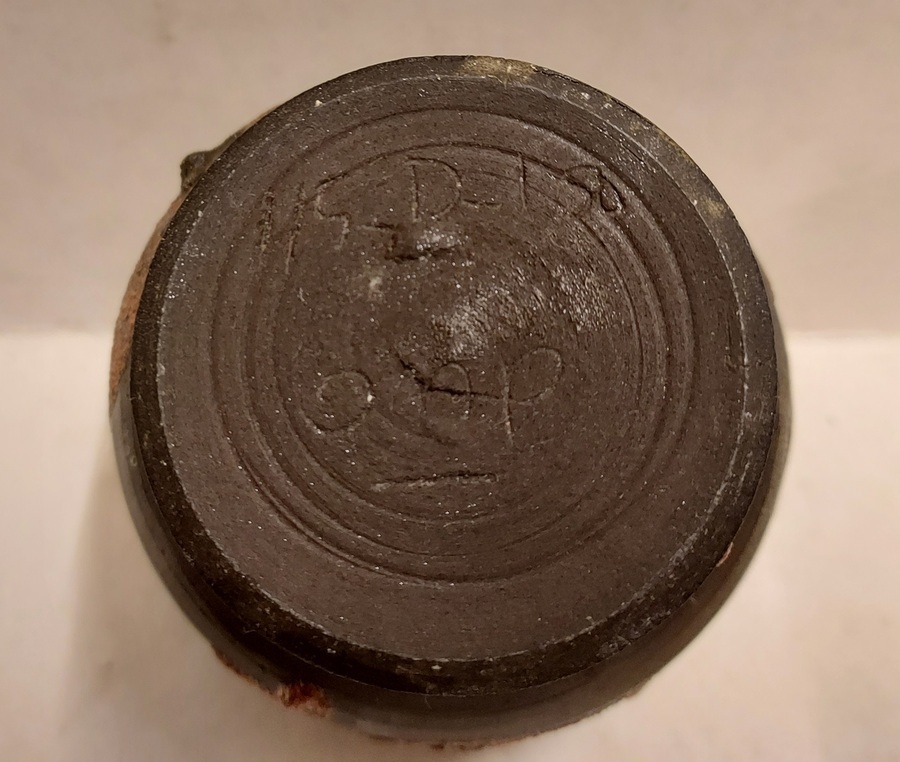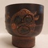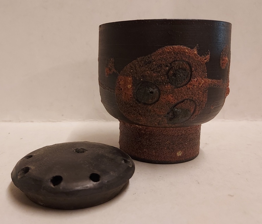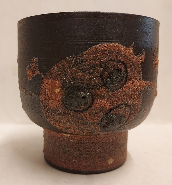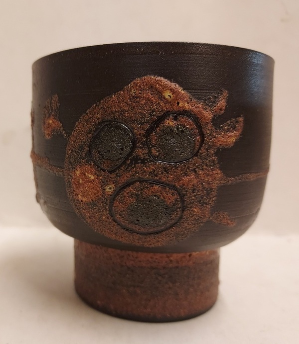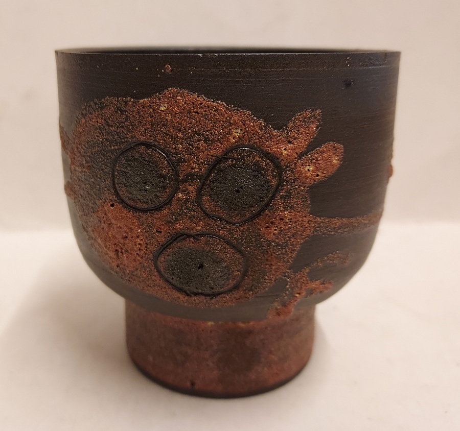 Bechervase mit abstraktem Gesicht, inklusive zugehörigem Rost. Unterseite signiert.