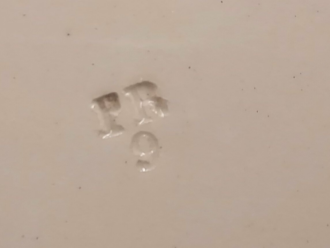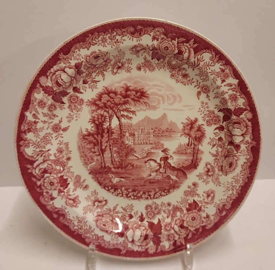 Monochrom rotes Transferdekor. Rückseite mit Fabrikmarke.