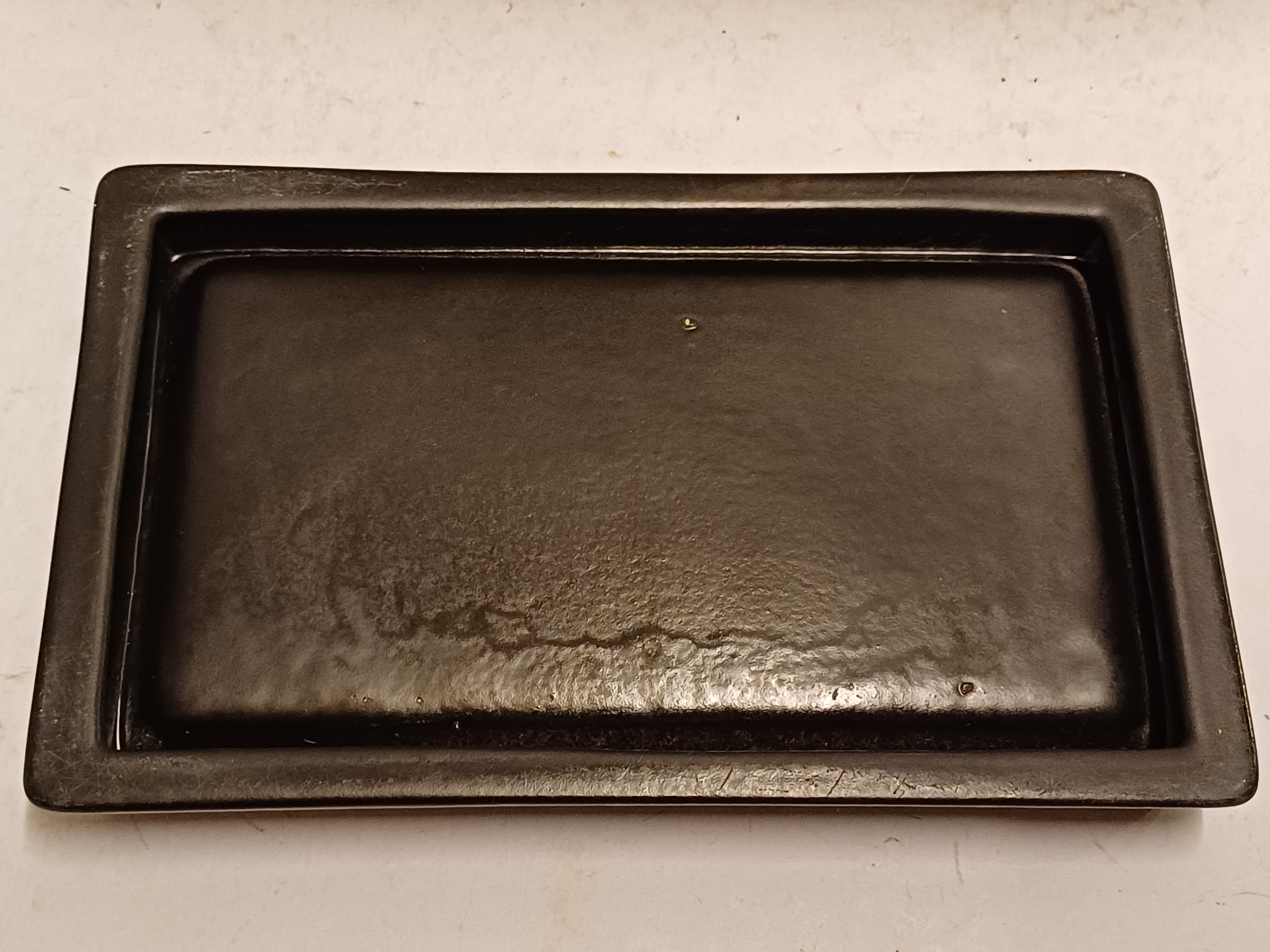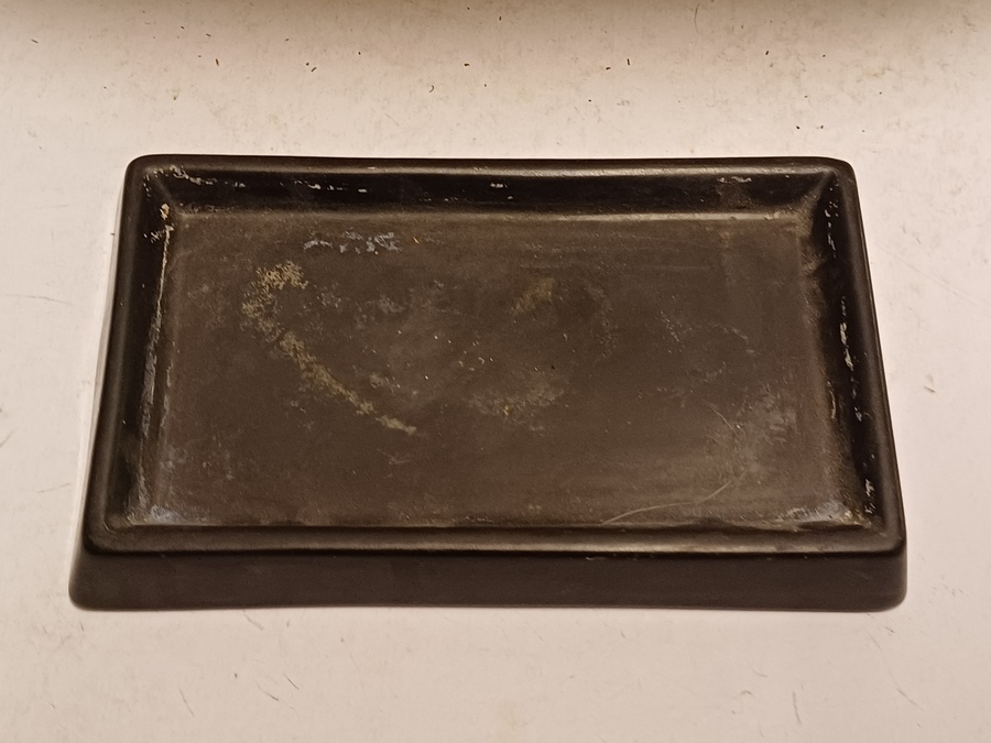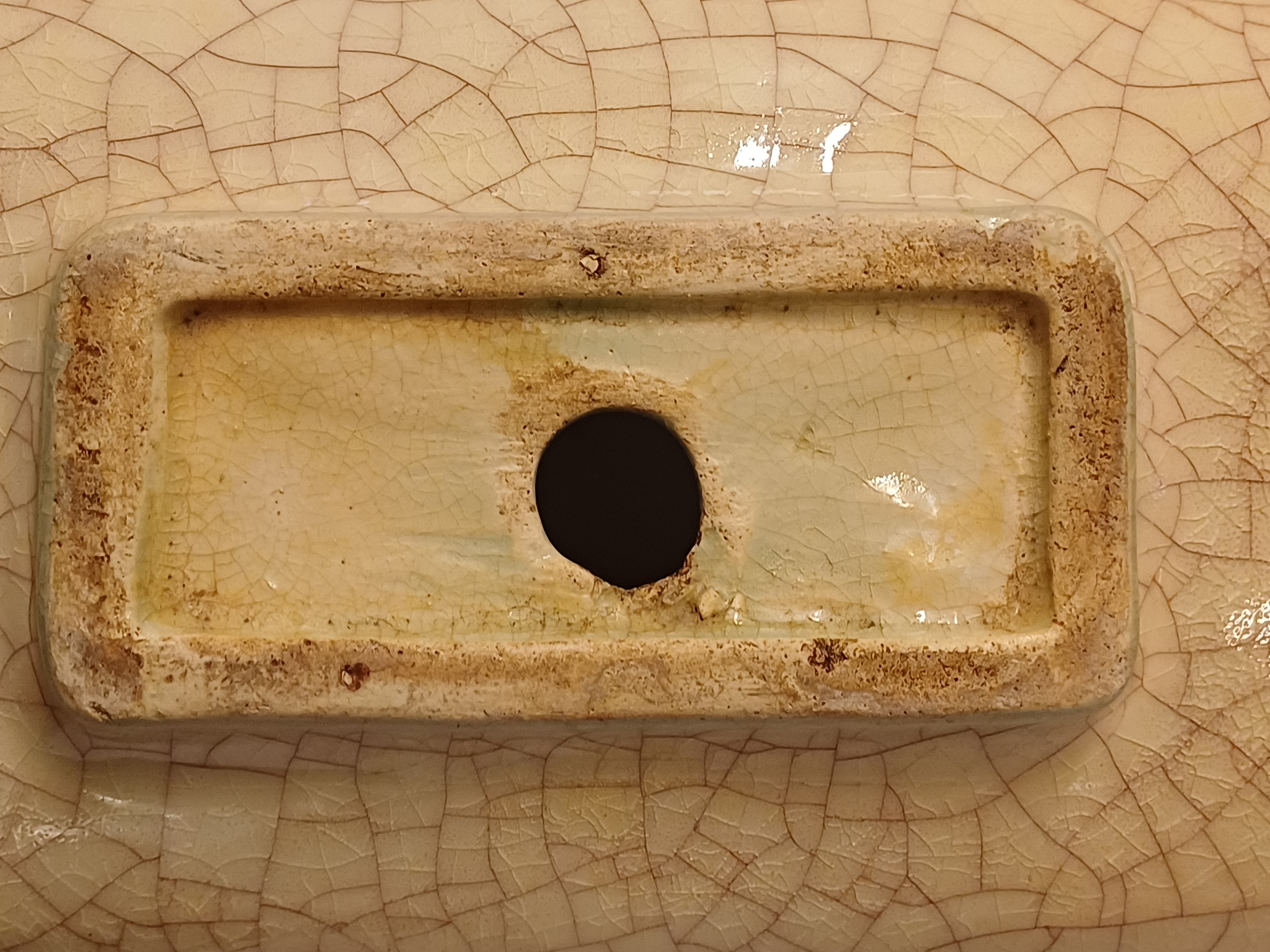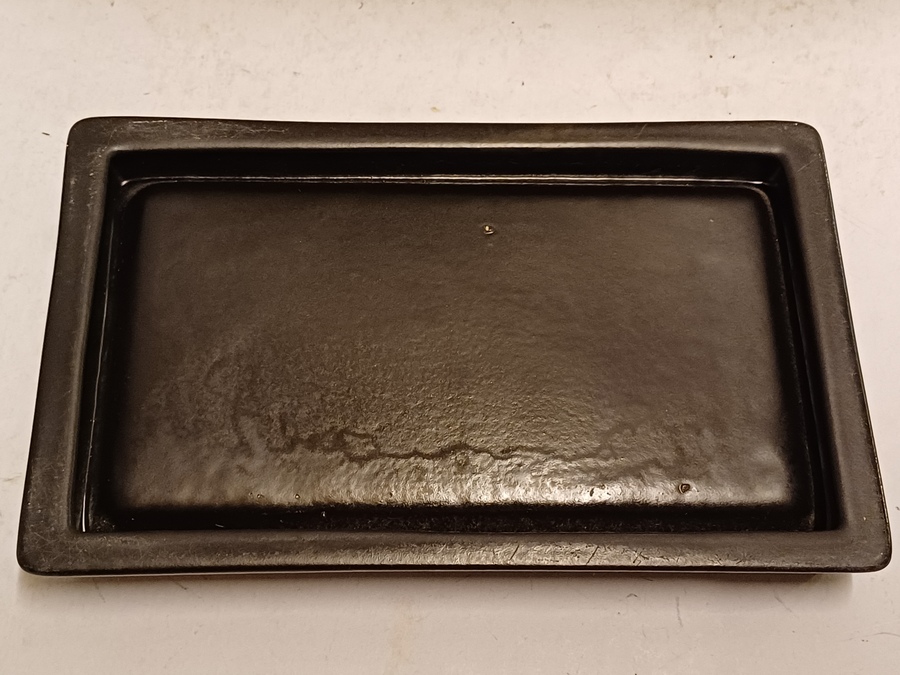 Große gecraqueleerte Kaktusschale mit hellblauer Glasur. Steht auf einem nicht originalen schwarzen keramischen Fußgestell. Nicht signiert.