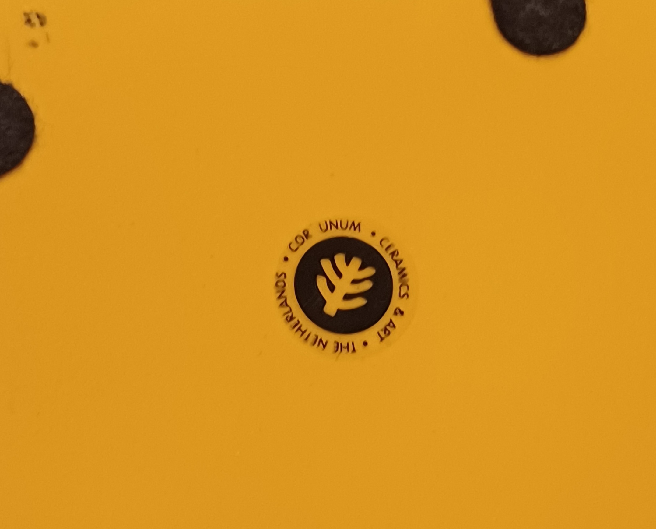 Ockergelbe große Garbo-Vase, Ausführung Cor Unum Den Bosch. Unterseite mit einem Aufkleber markiert.
