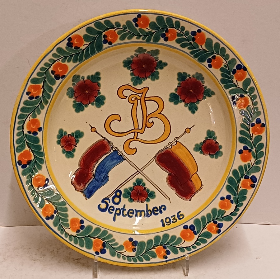 Herdenkingsbord verloving Juliana Bernard 8 September 1936, Plateelbakkerij zuid Holland