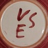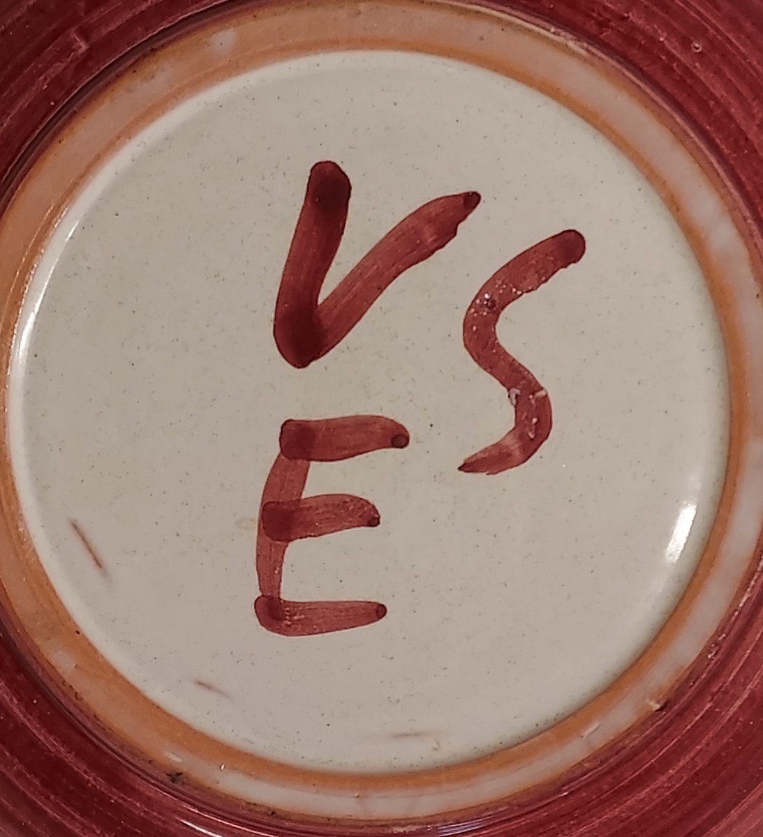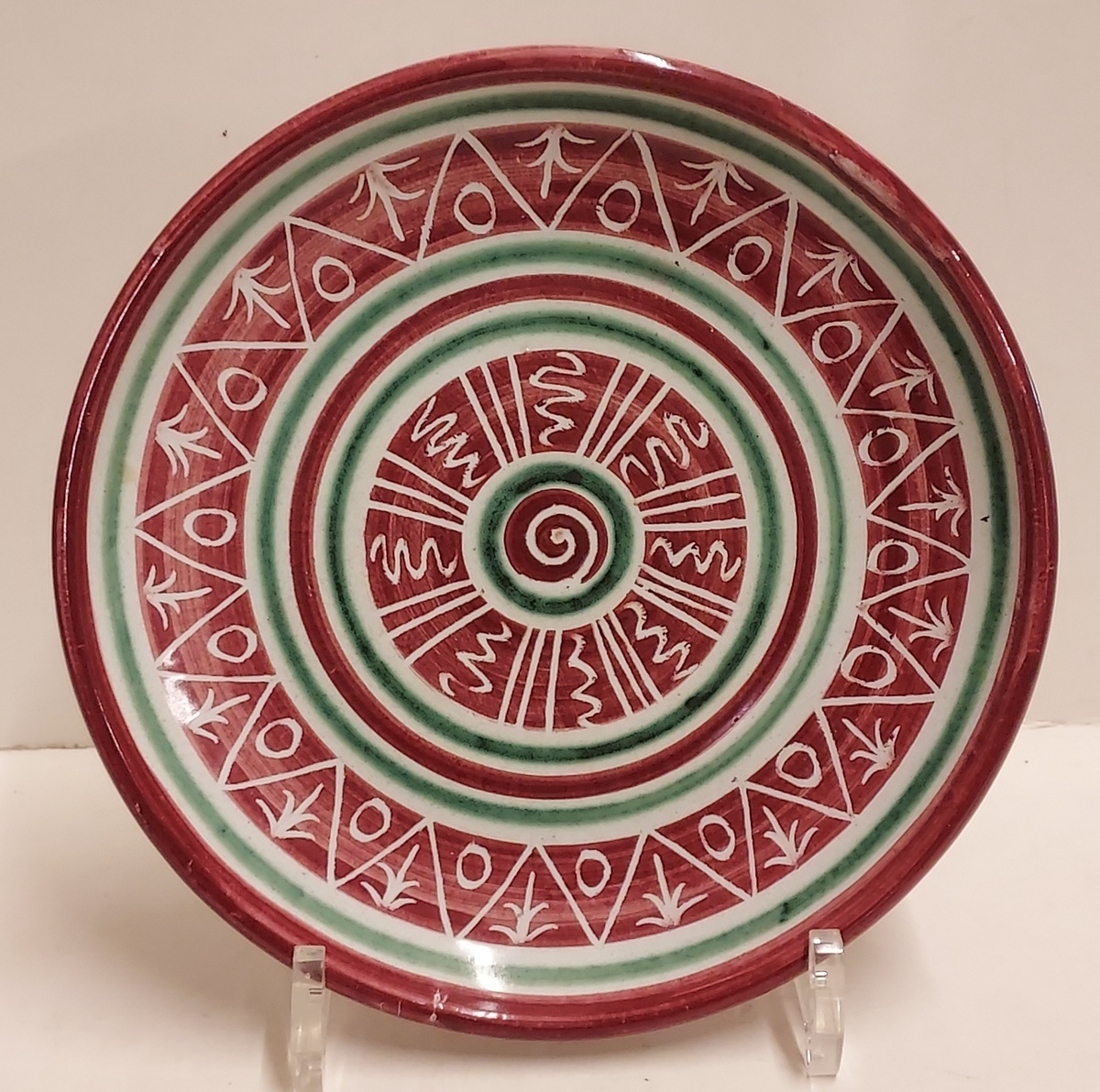Teller mit Dekoration von Simon Engelhart in Rot und Grün. Signiert mit VS E.
