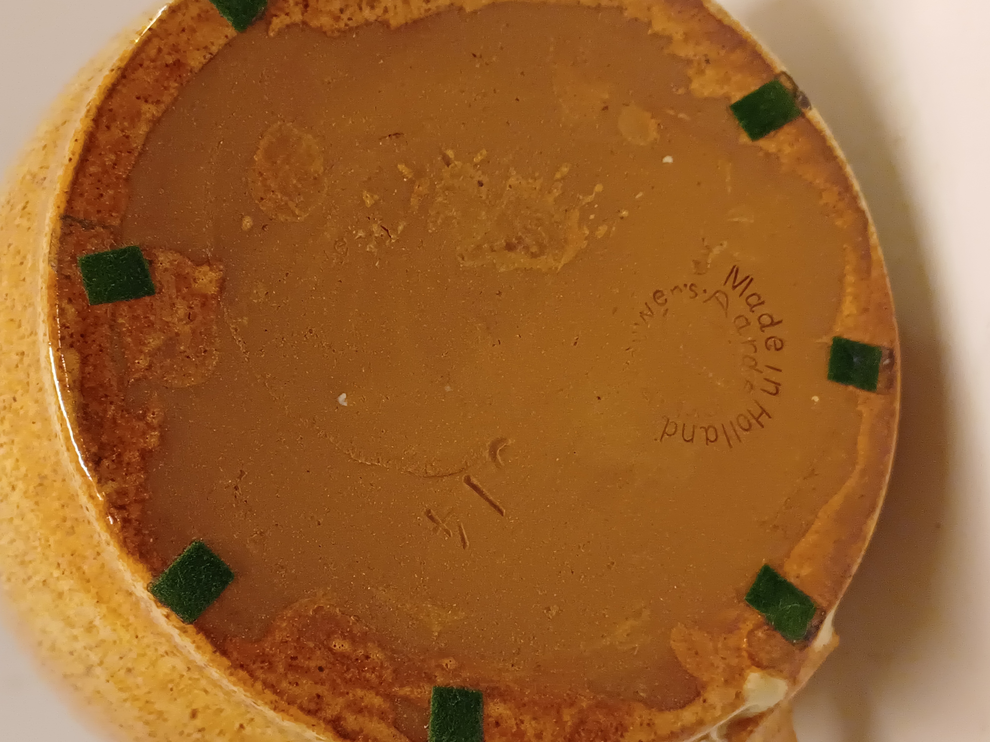 Kan met bruine glazuur. Onderzijde met modelnummer en signatuur.