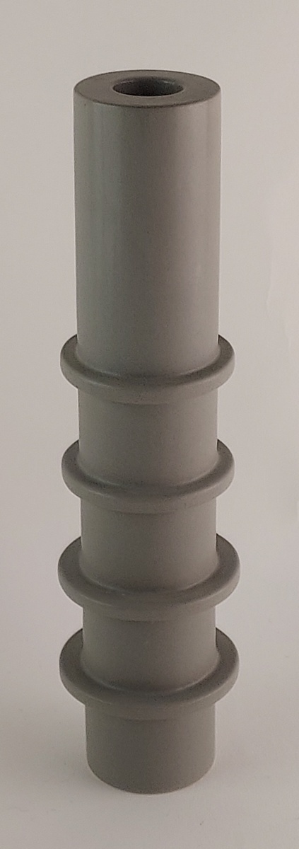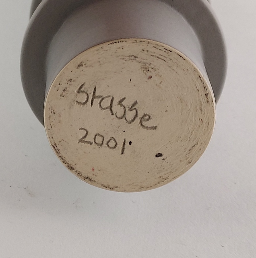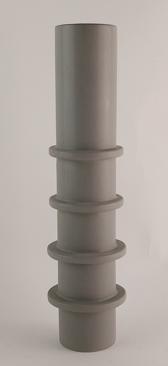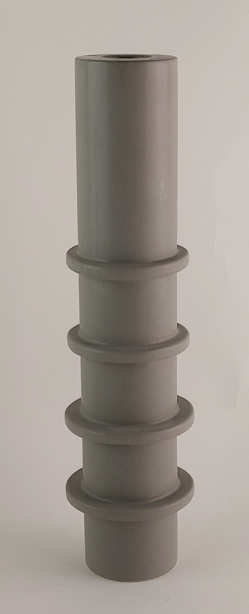 Grau glasierter zylindrischer Kerzenhalter mit 4 Ringen. Unterseite signiert n '01.
