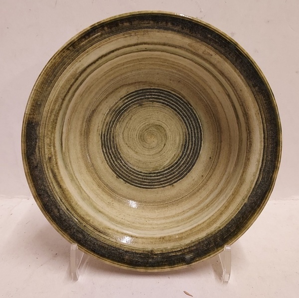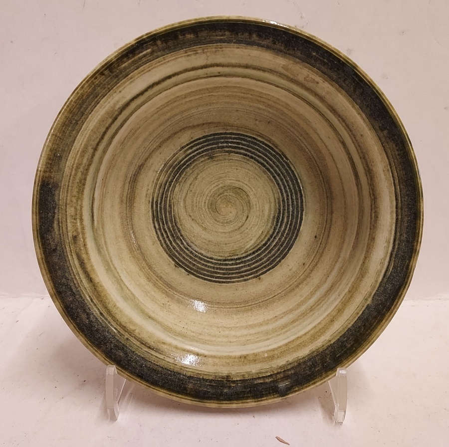 Schüssel mit Linienspiel in Grün. Signiert mit Monogramm.