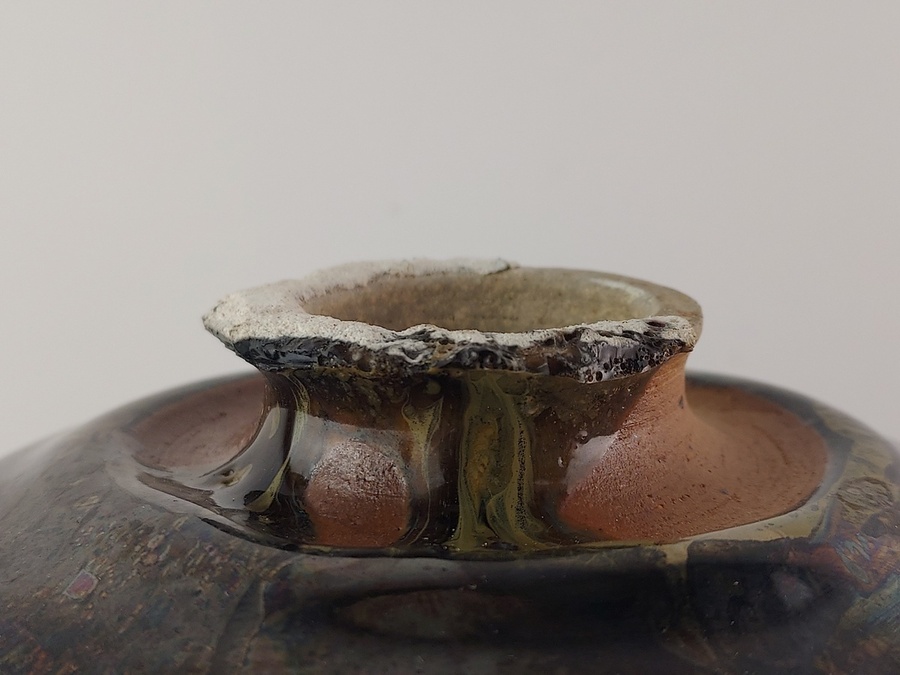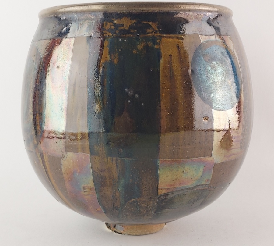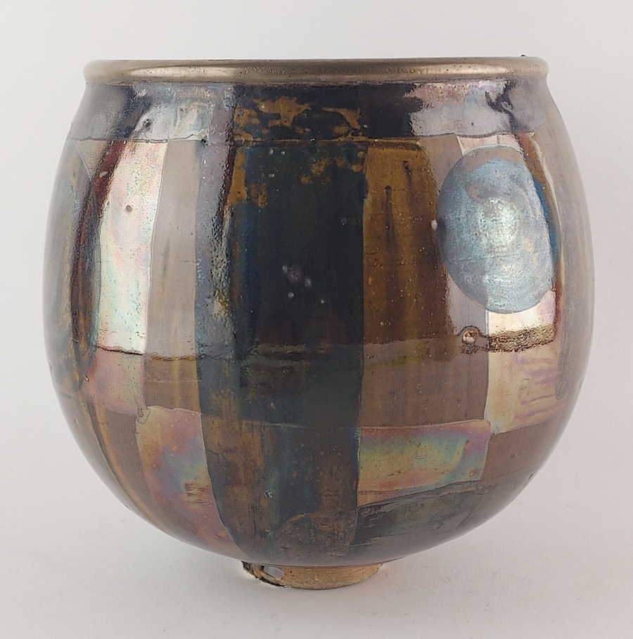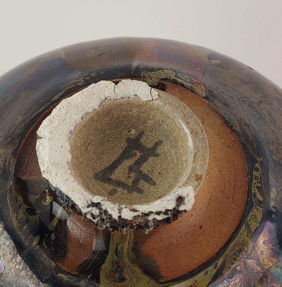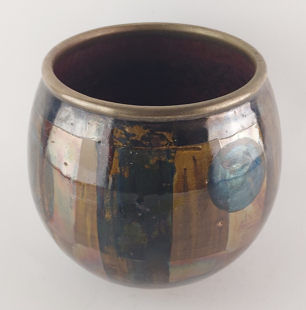 Mit flacher Dekoration in Lüsterglasur. Unterseite mit Monogramm.