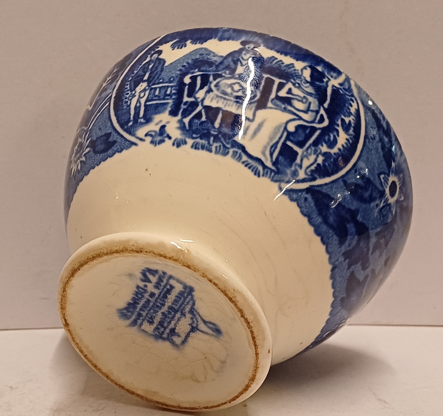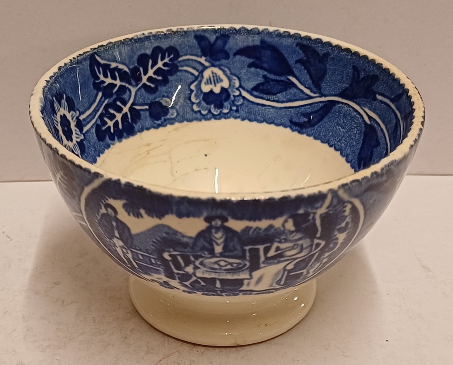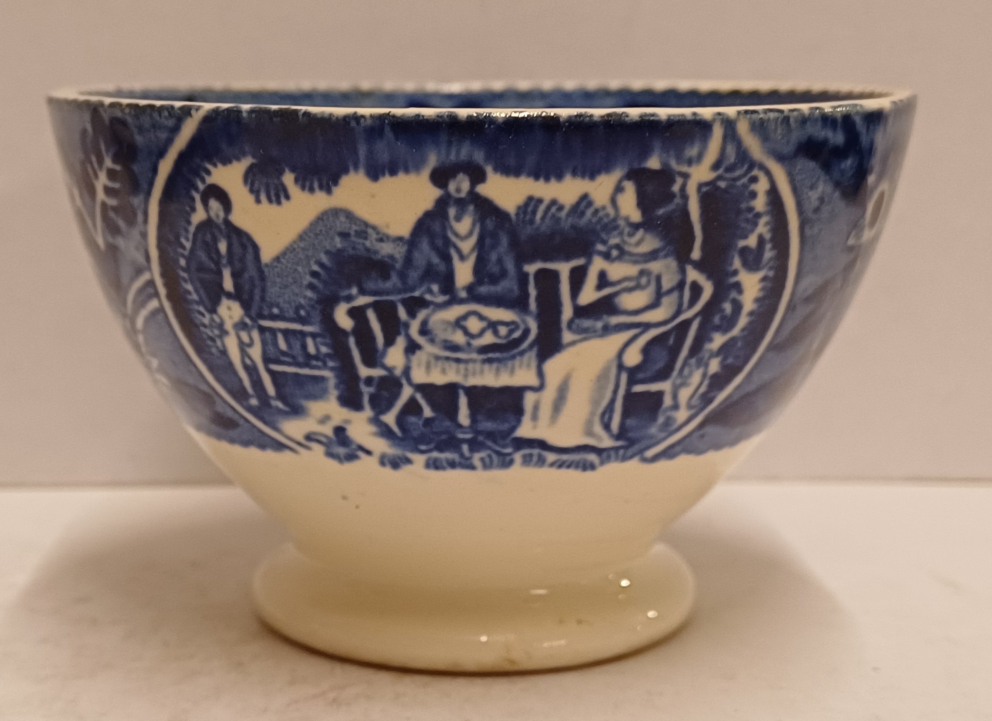 Steingut Schüssel mit blauem Transferdekor Tea Drinker. Ausführung Petrus Regout Maastricht.