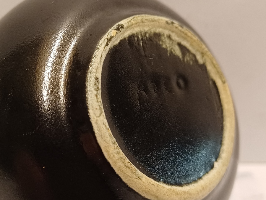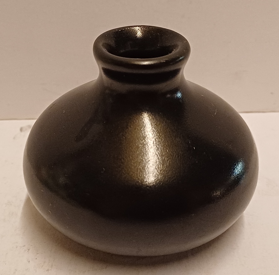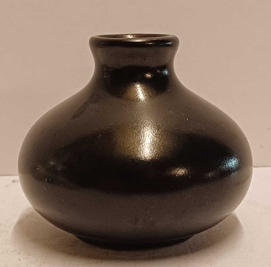 Miniaturvase mit schwarzer Glasur. Unterseite signiert.