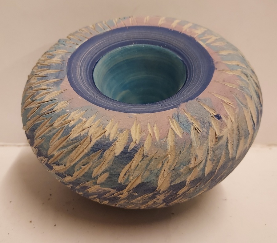 Keramisches Objekt. In mehrfarbiger Glasur.