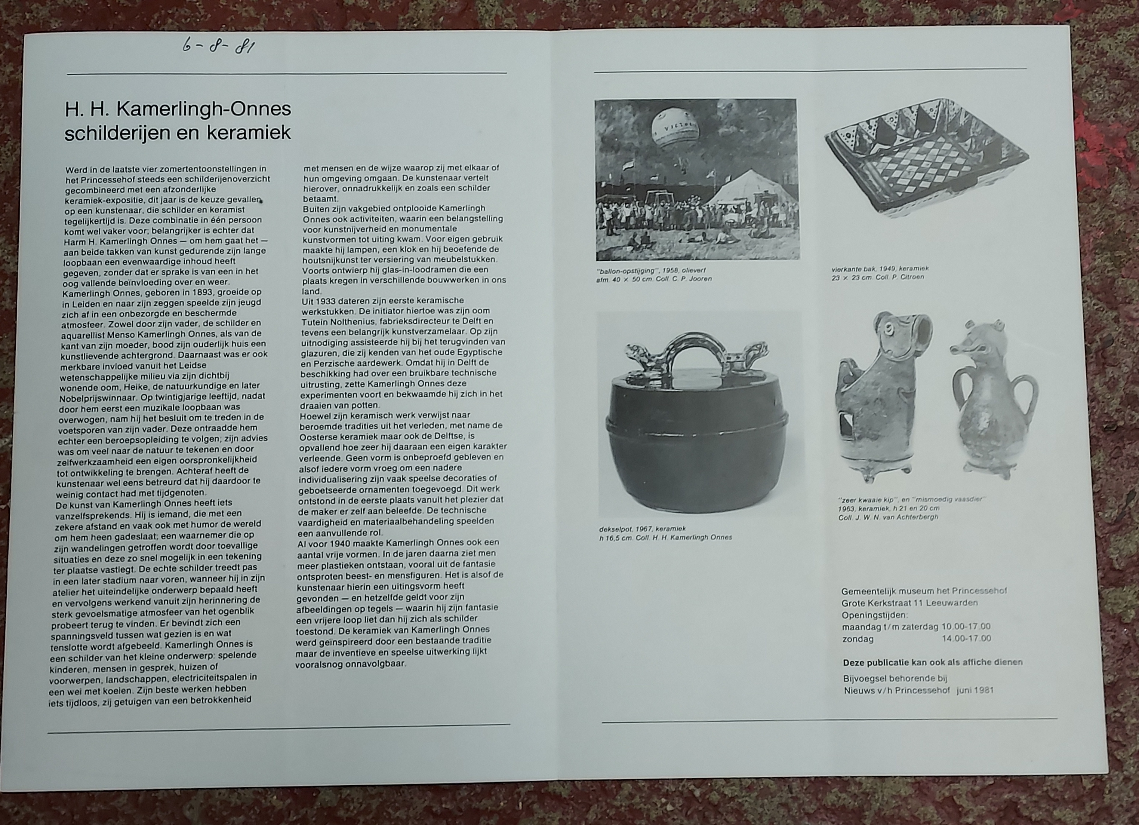 Falt-Poster Kamerlingh Onnes Princessehof Leeuwarden.