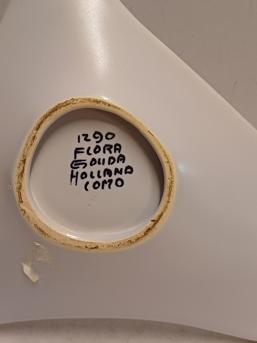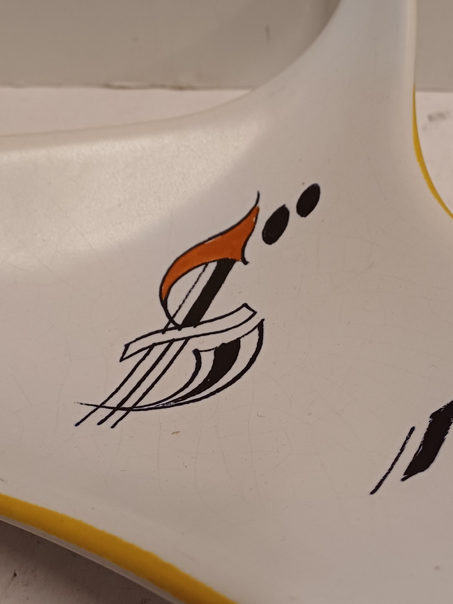 Plateel Schale mit Sixties-Dekor Como. Unterseite mit gemaltem Markenzeichen und Modellnummer.
