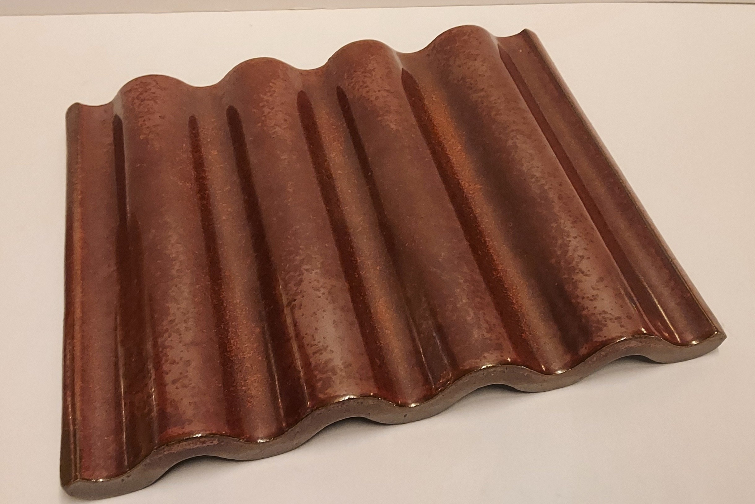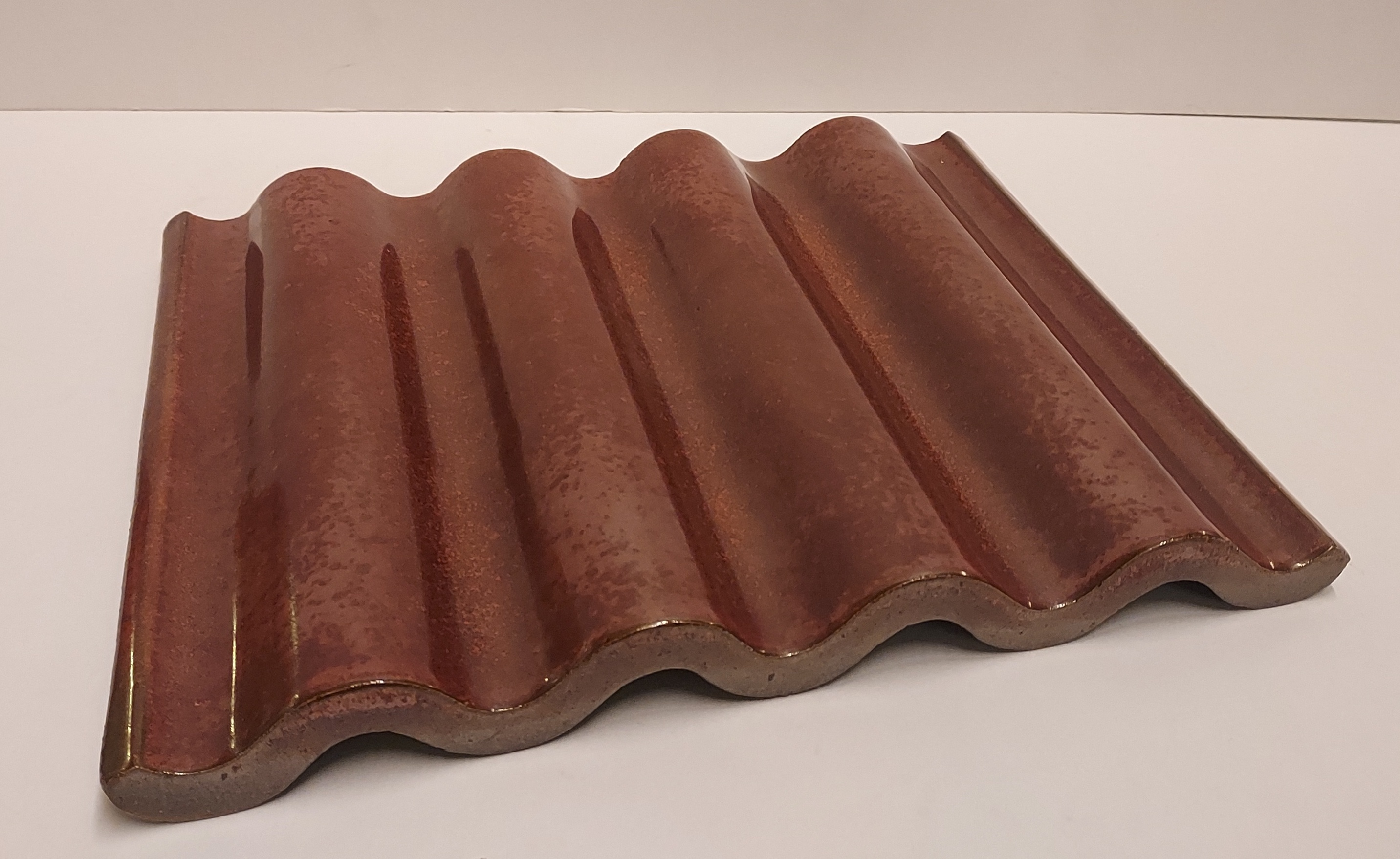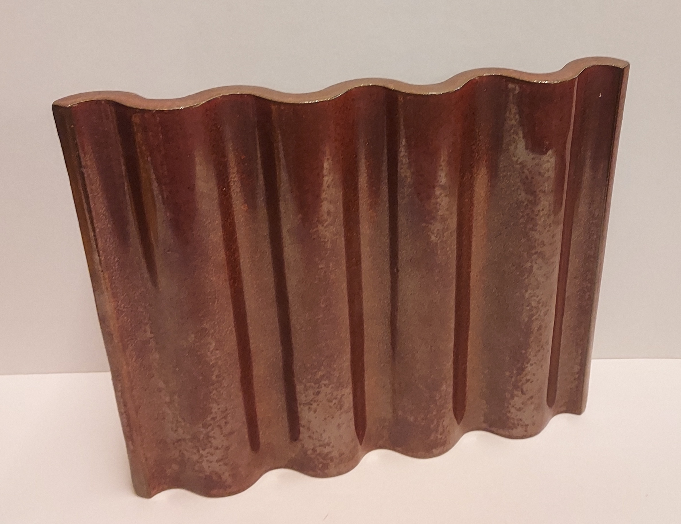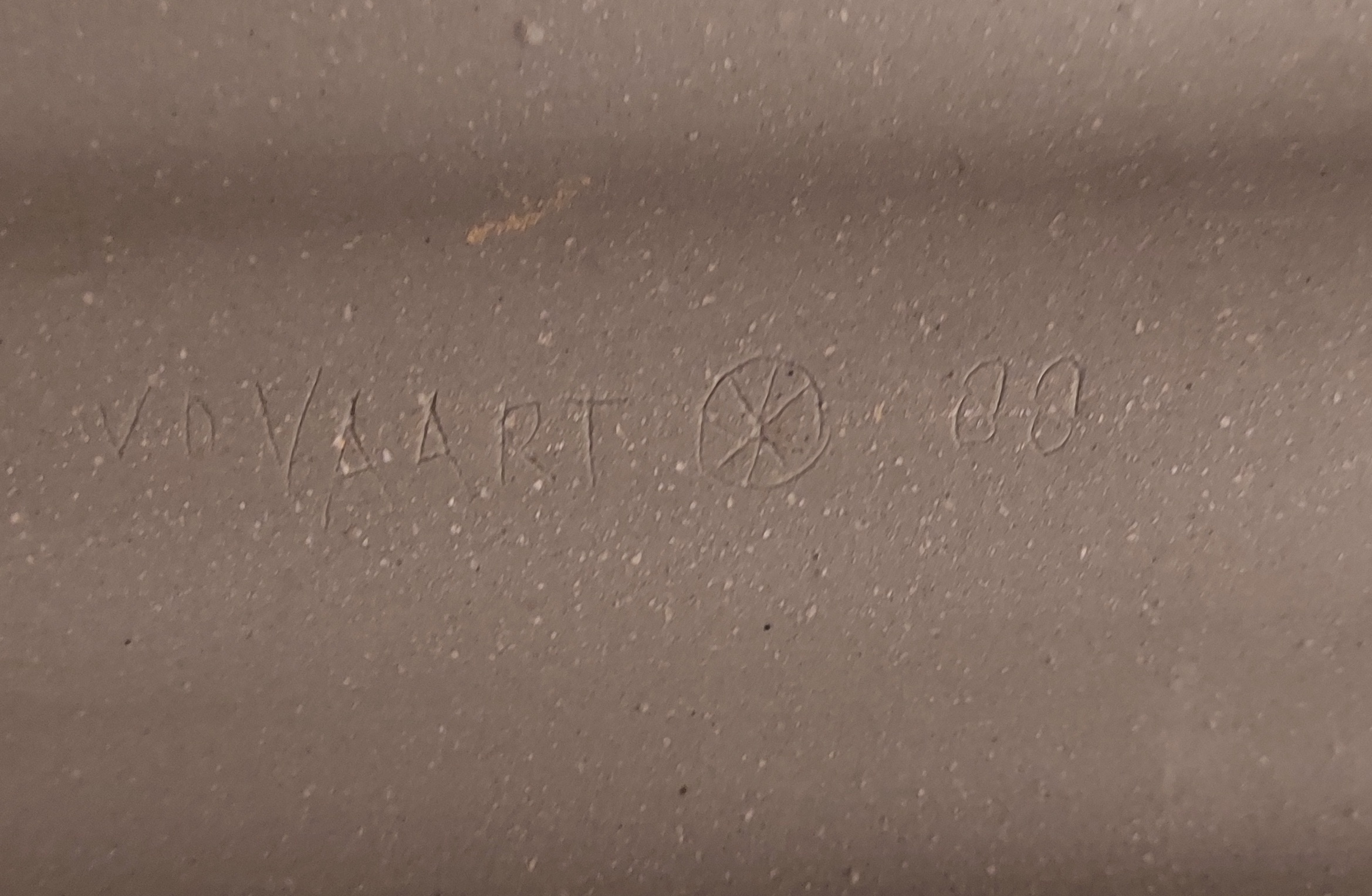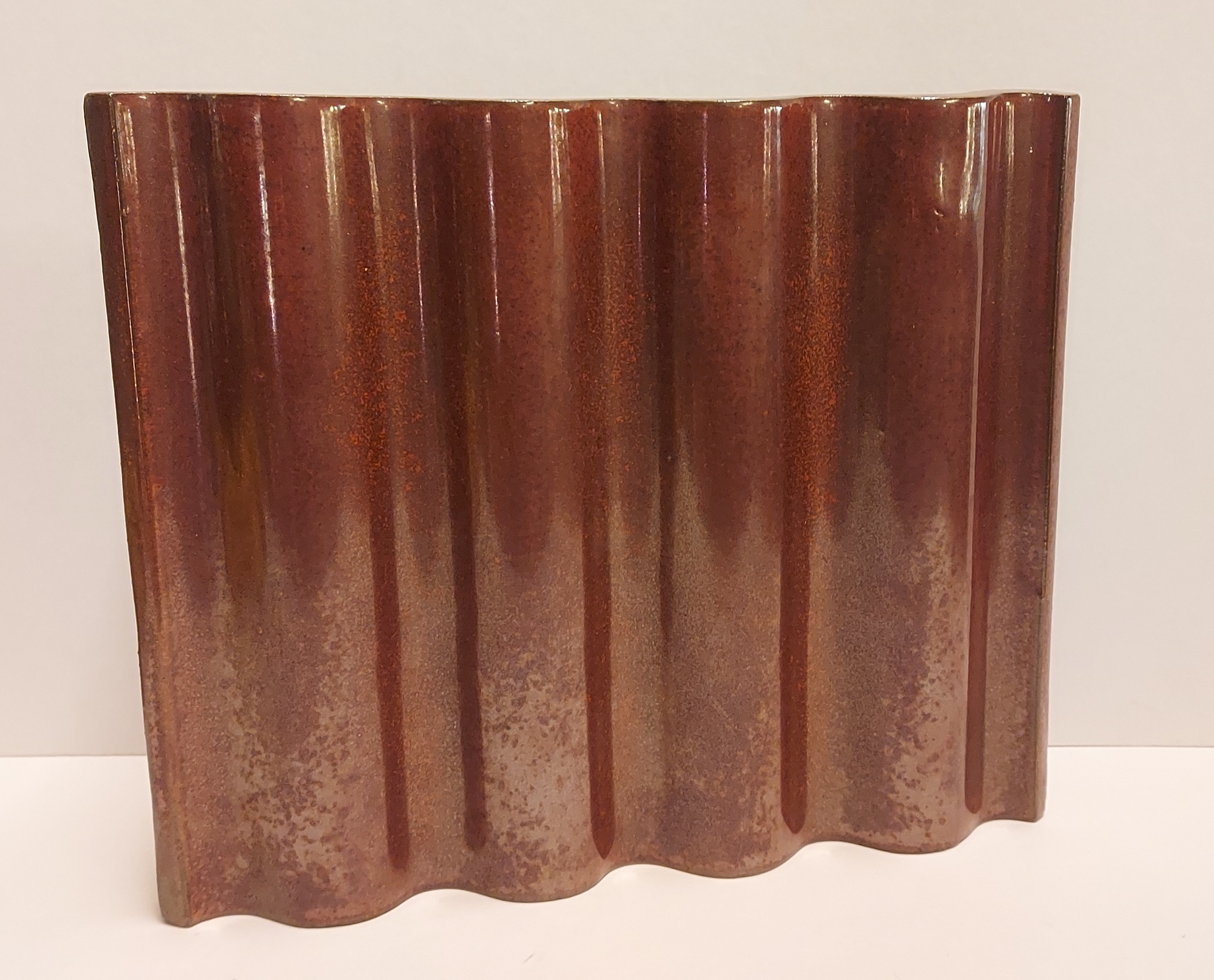Eine oxenblutrot glasierte wellenförmige rechteckige Steinzeug Schale, hergestellt im Atelier des Künstlers, 1988, auf der grauen Rückseite signiert und mit Jahreszahl. Herkunft: der Nachlass der Amsterdamer Galeristin Carla Koch (1940-2022).