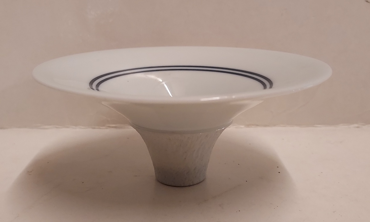 Porzellanschale mit blauen Linien. Nicht signiert.
