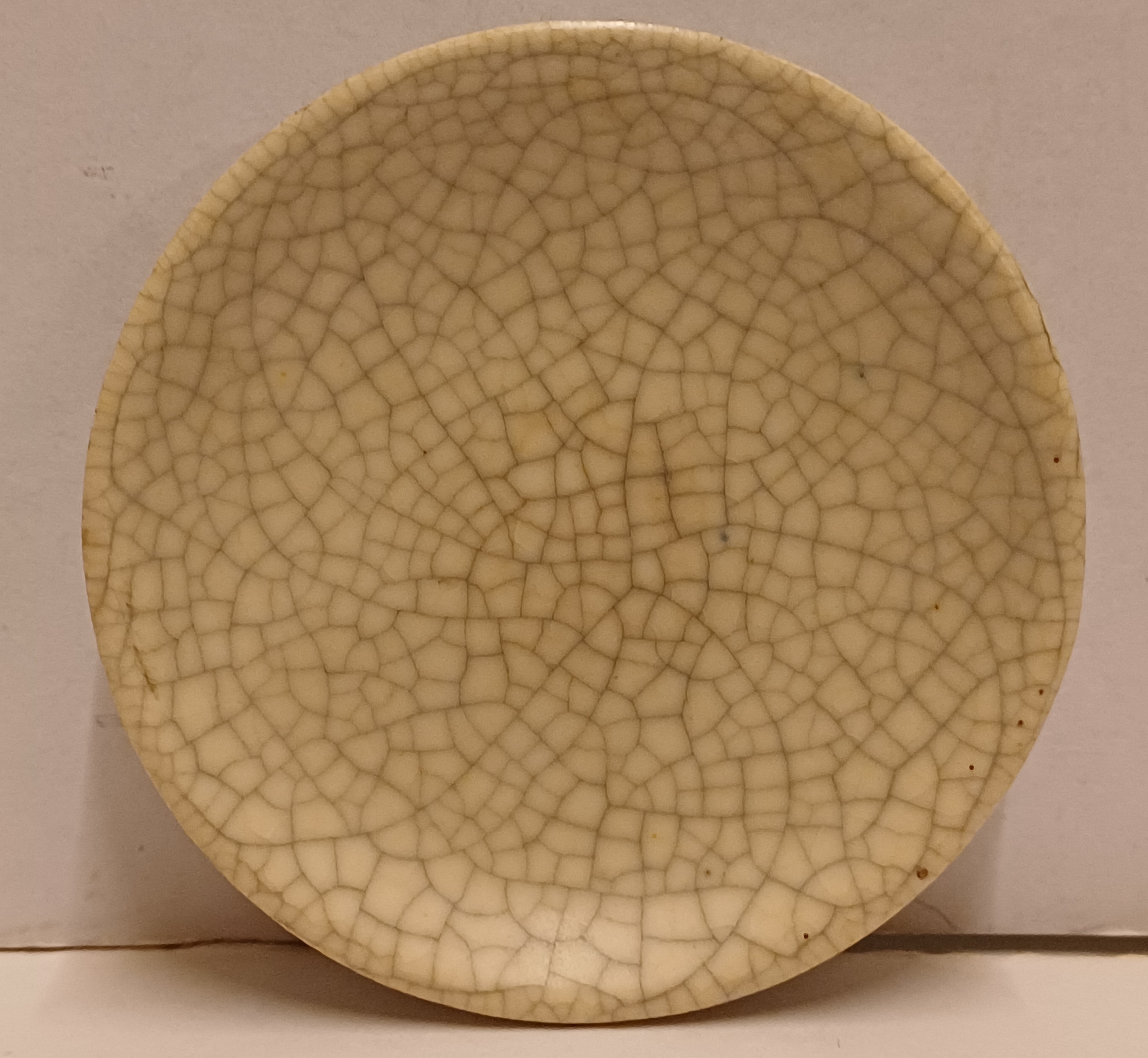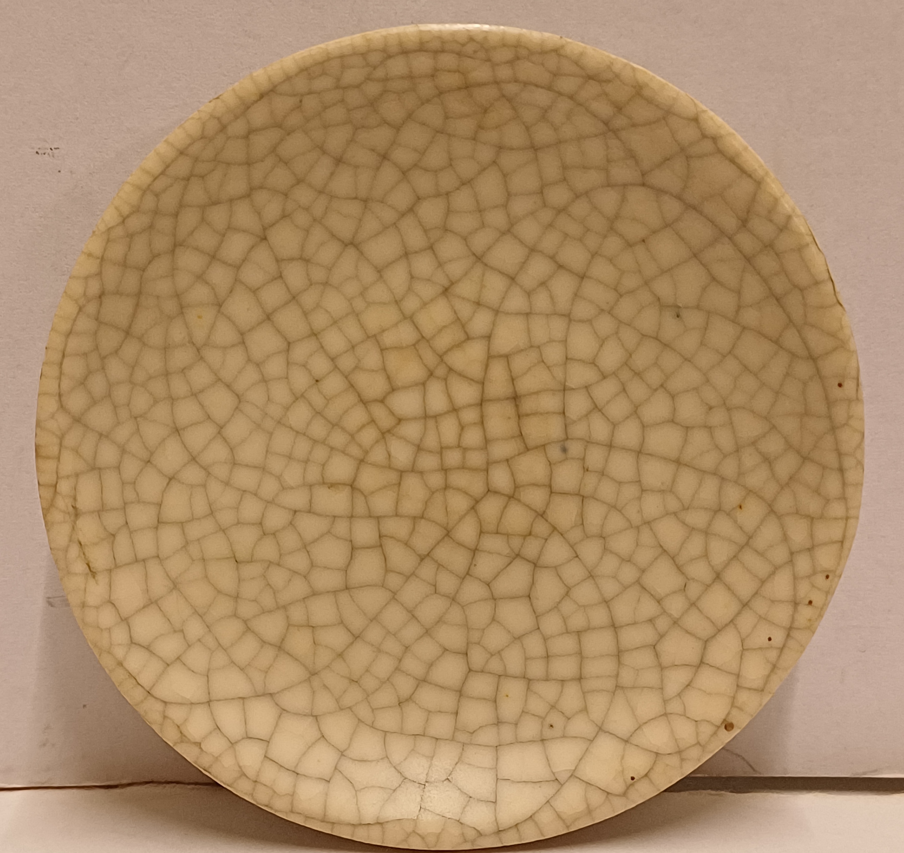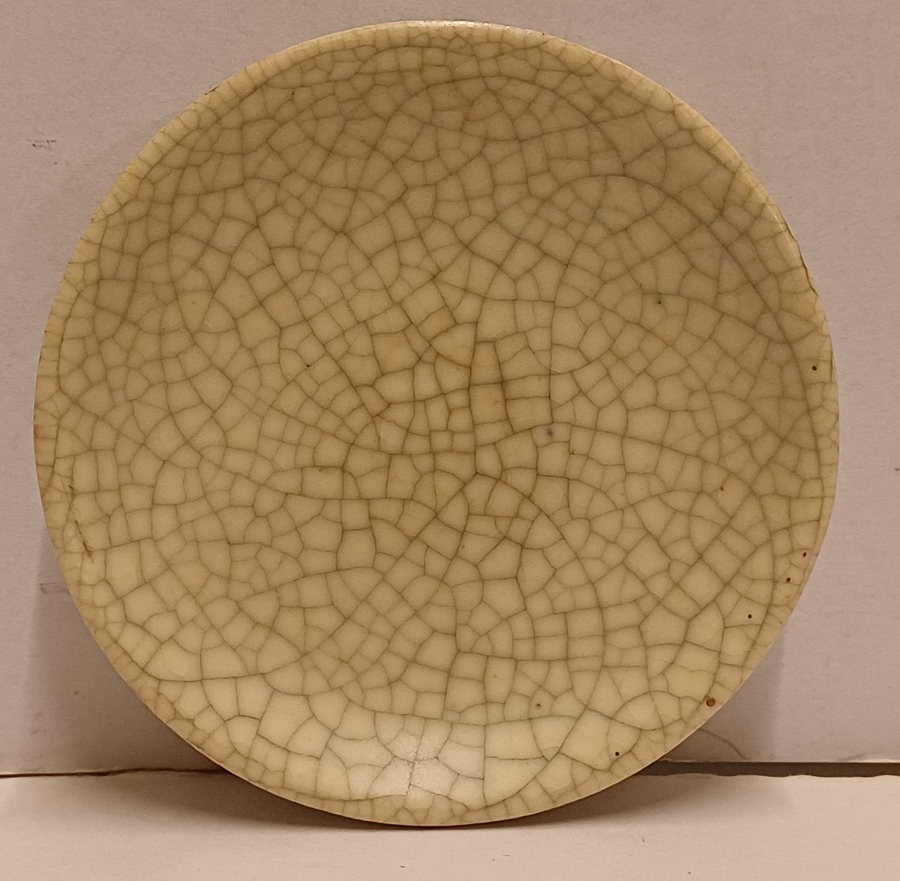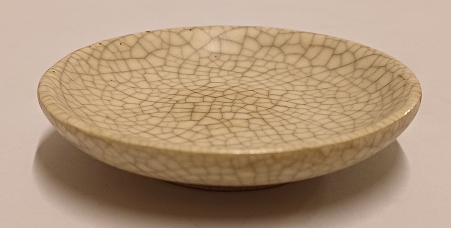 Kleines Schälchen mit feiner Craquelé auf cremefarbenem Untergrund. Unterseite signiert und mit Modellnummer 792.