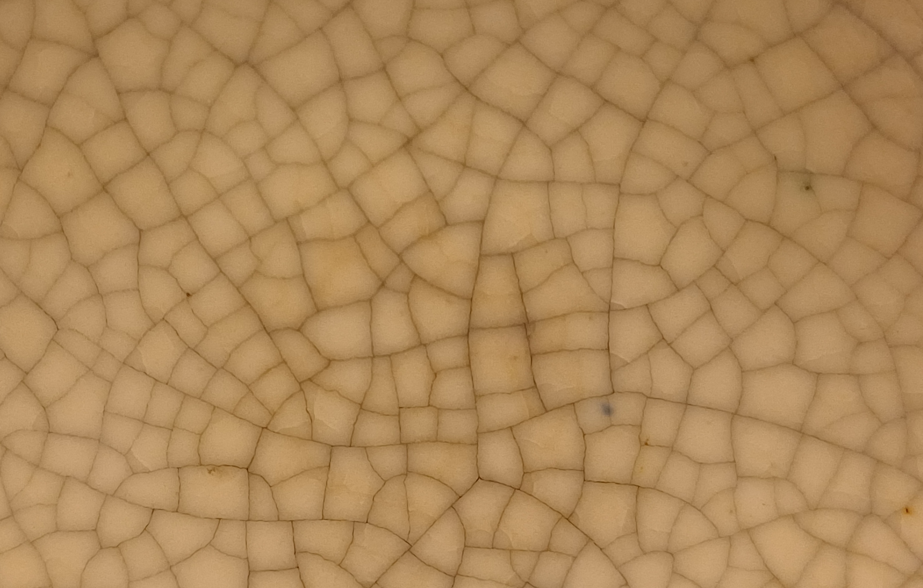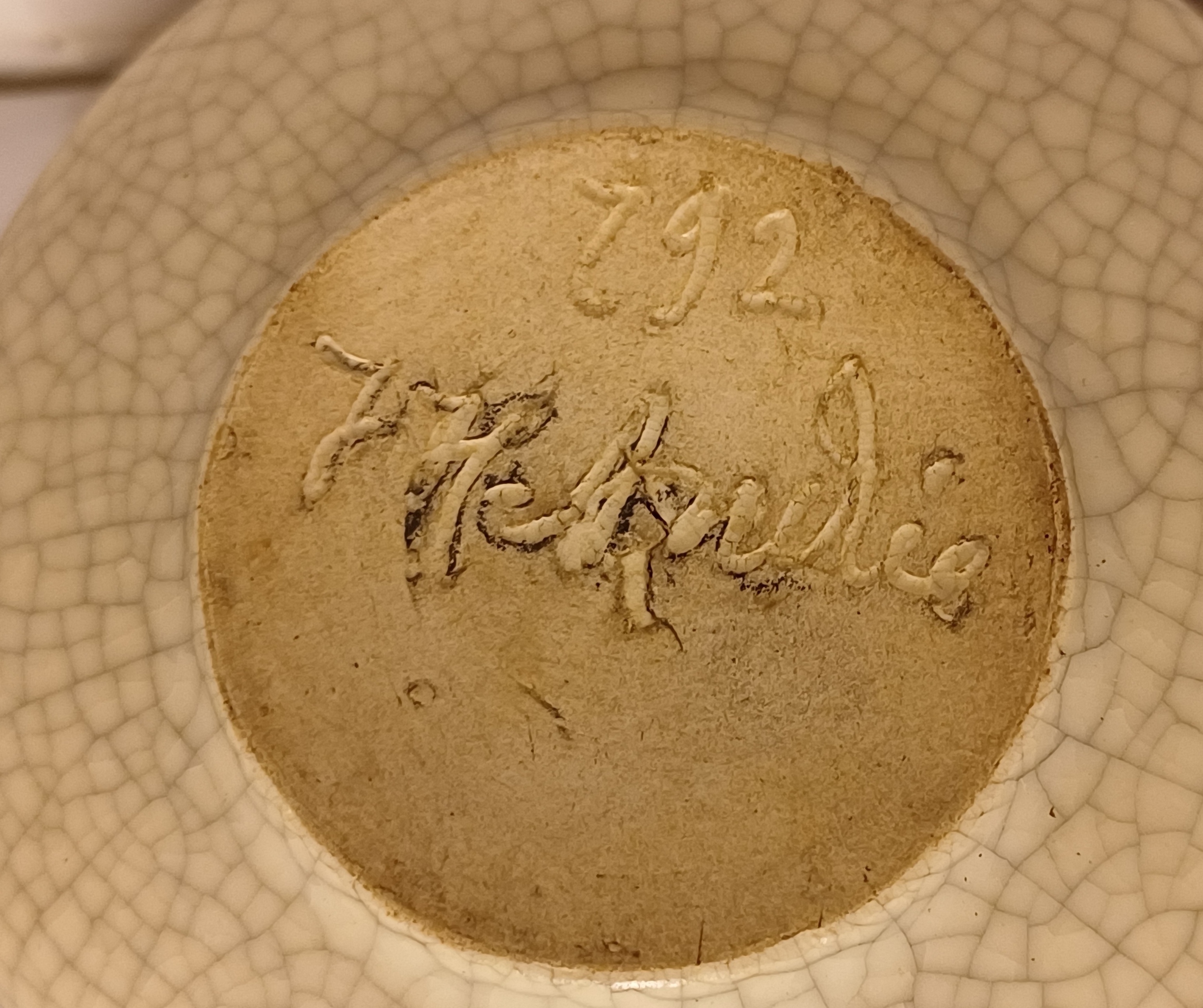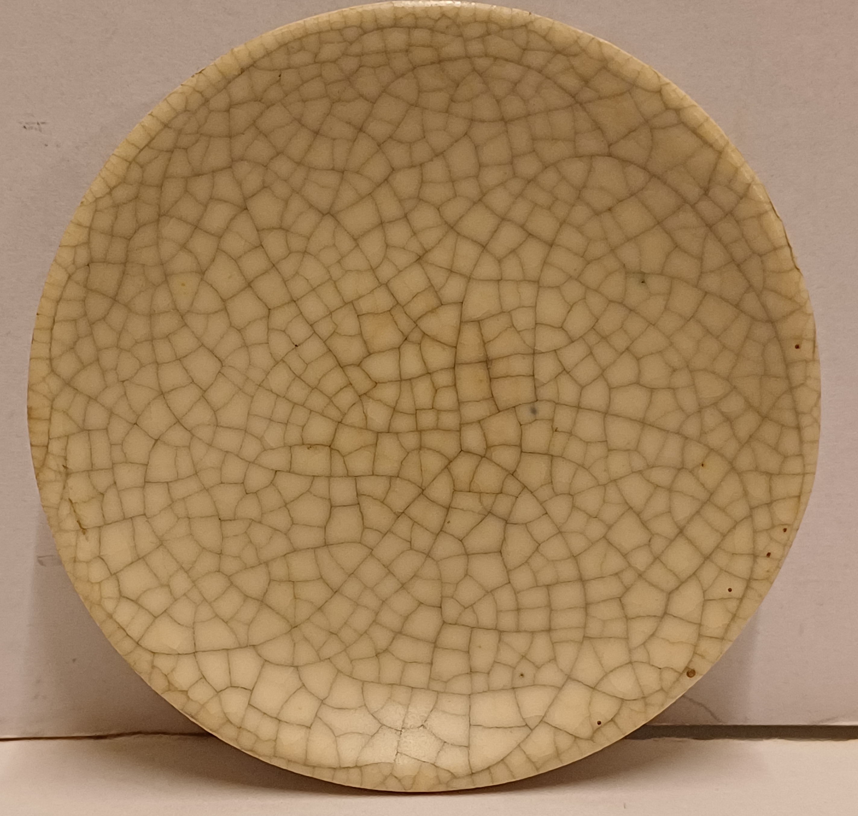 Kleines Schälchen mit feiner Craquelé auf cremefarbenem Untergrund. Unterseite signiert und mit Modellnummer 792.