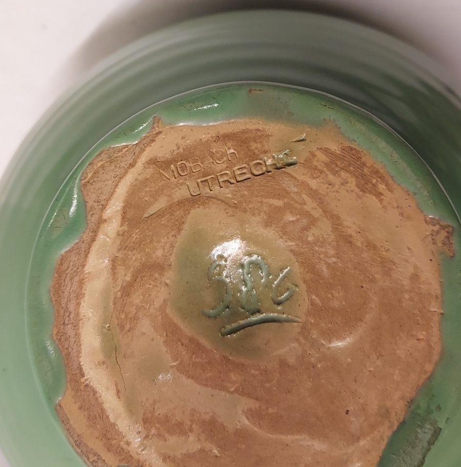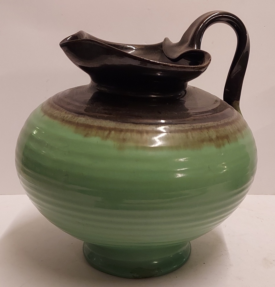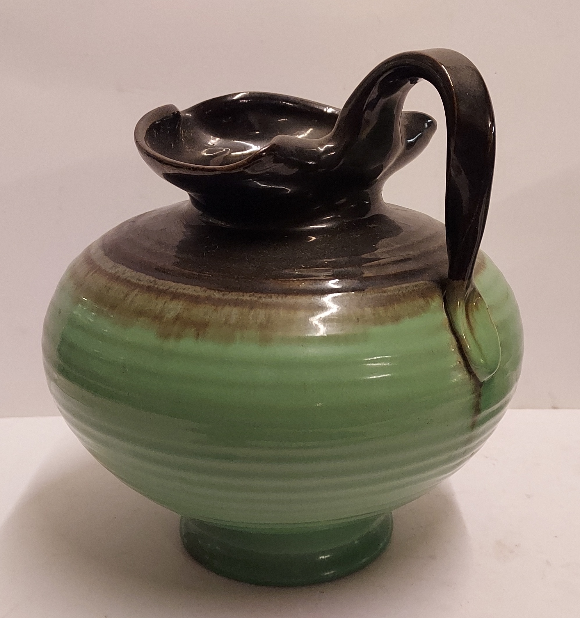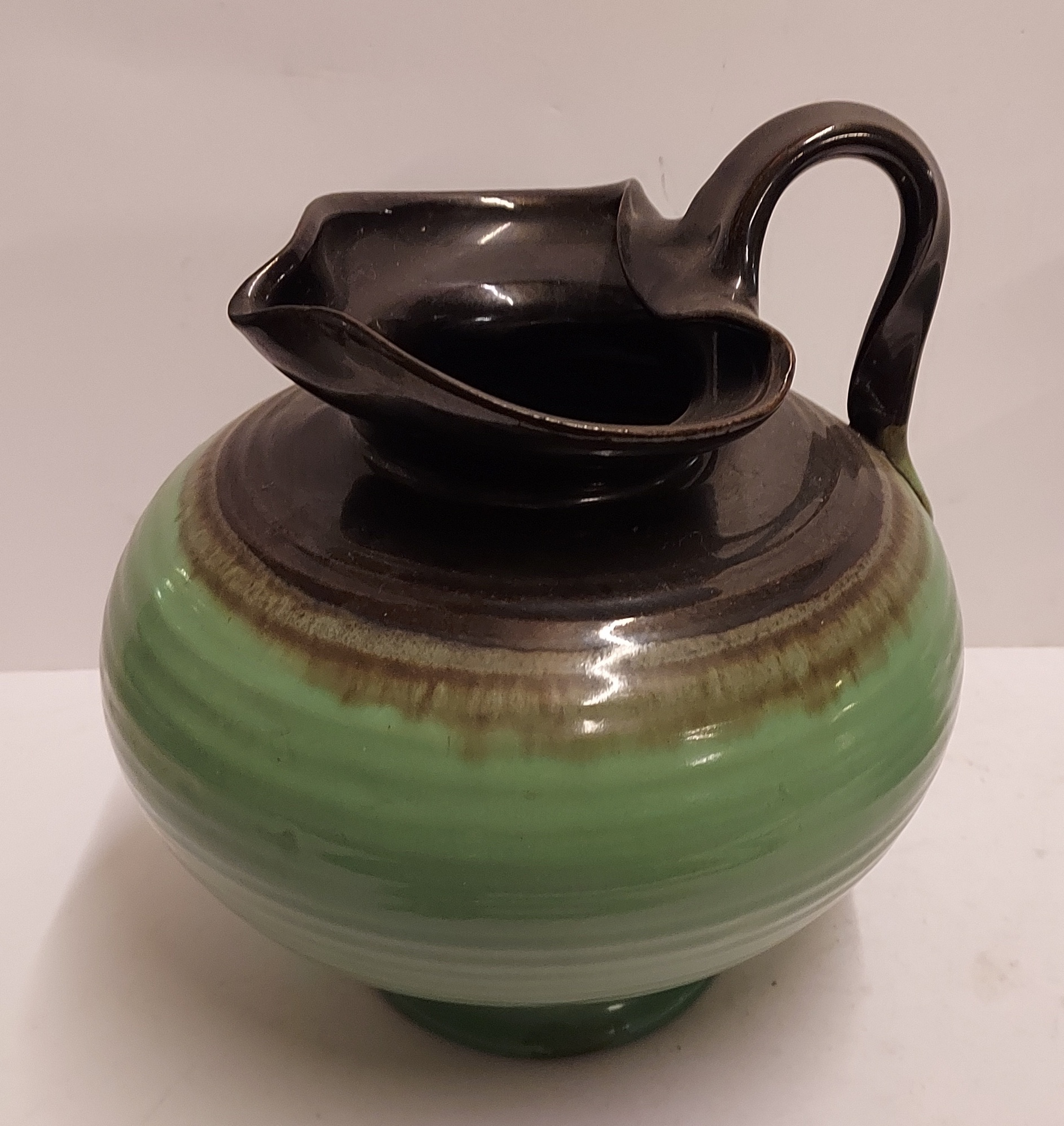 Art-Deco-Modell Kanne mit schwarzer und grüner Glasur. Unterseite mit Fabrikmarke.