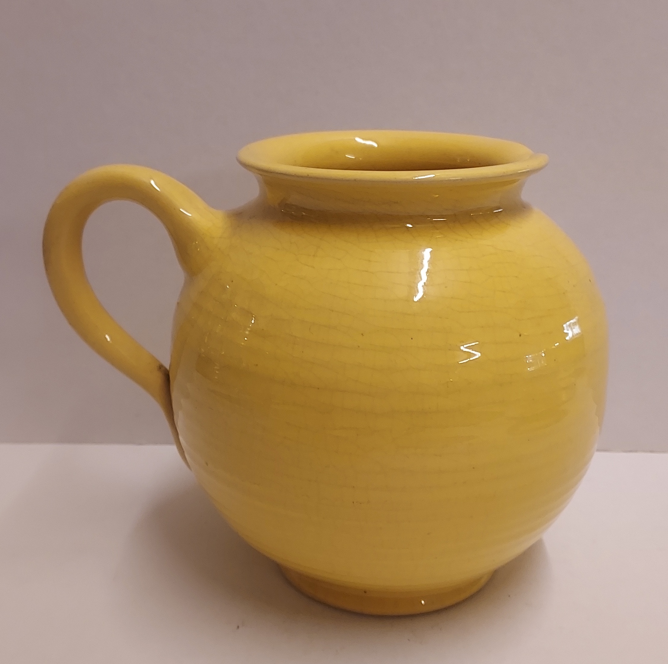 Gelb glasierter Krug. Unterseite mit Modellnummer 10, weiter nicht signiert.