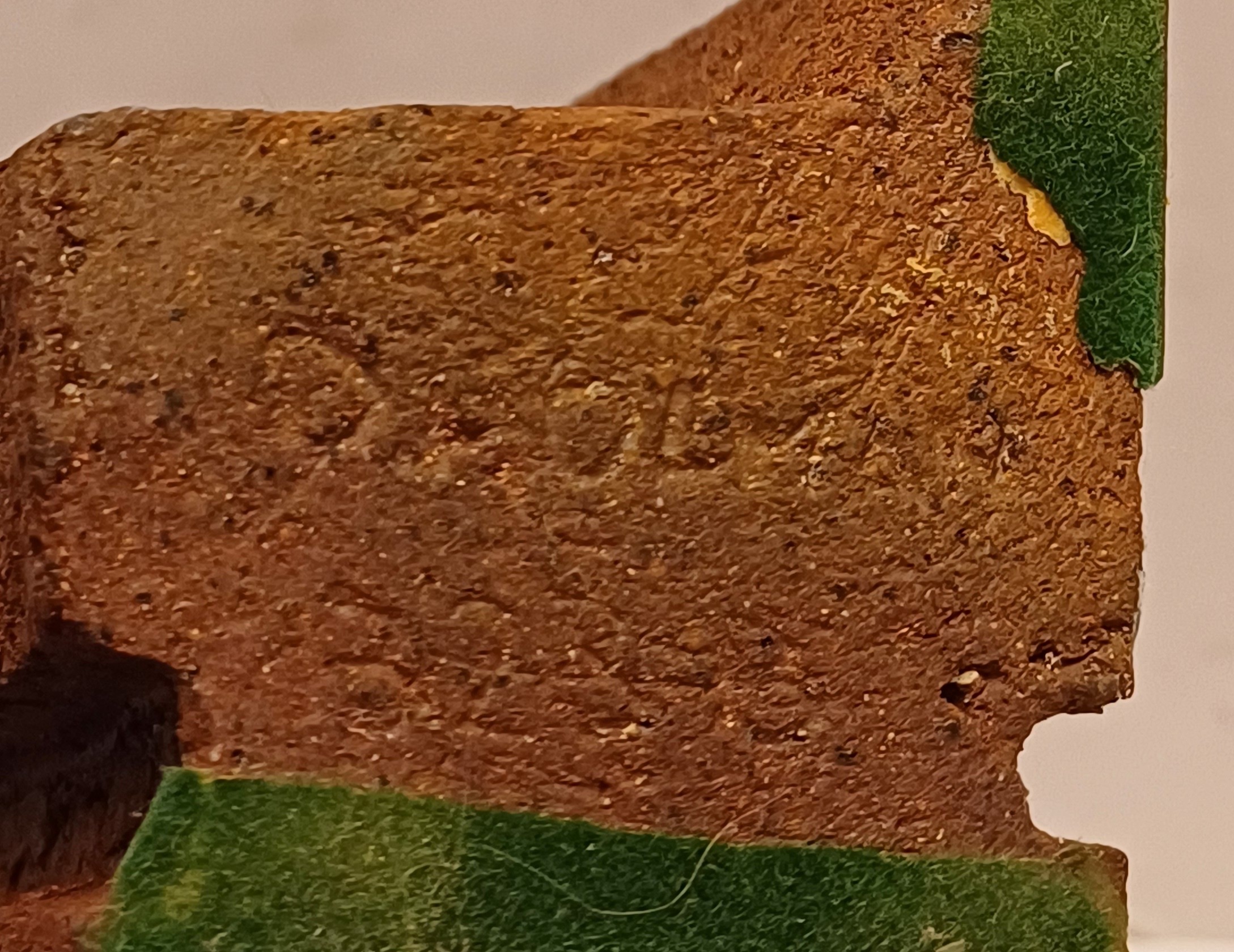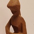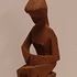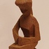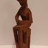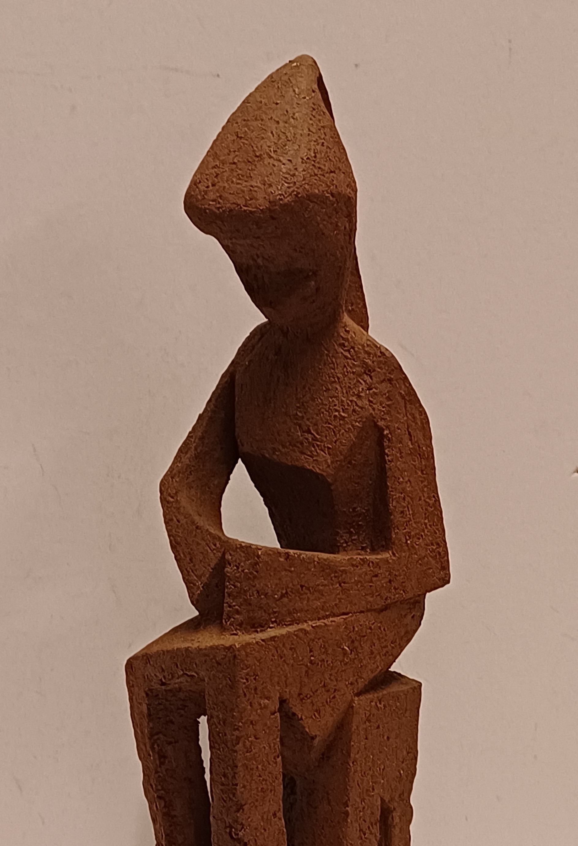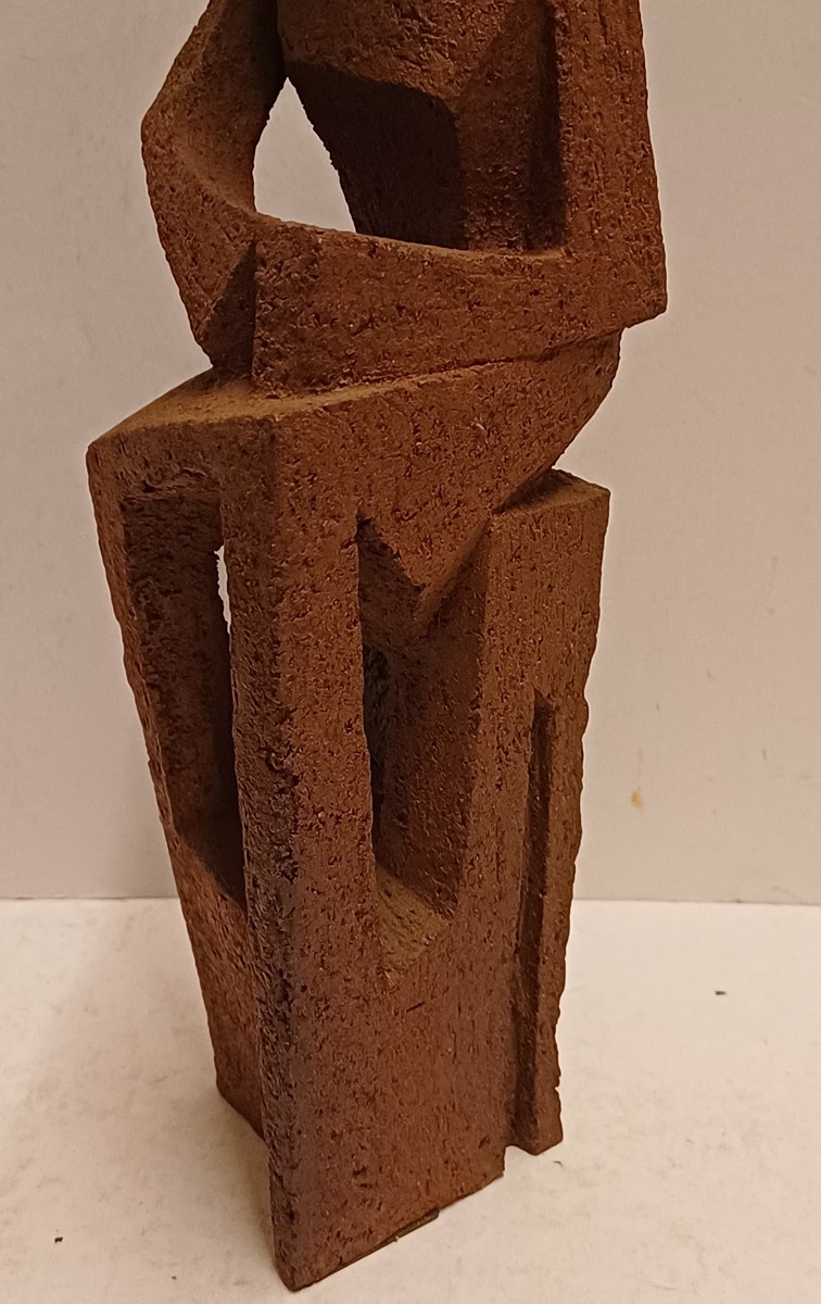 Aardewerken sculptuur van een zittende dame. Onderzijde gesigneerd