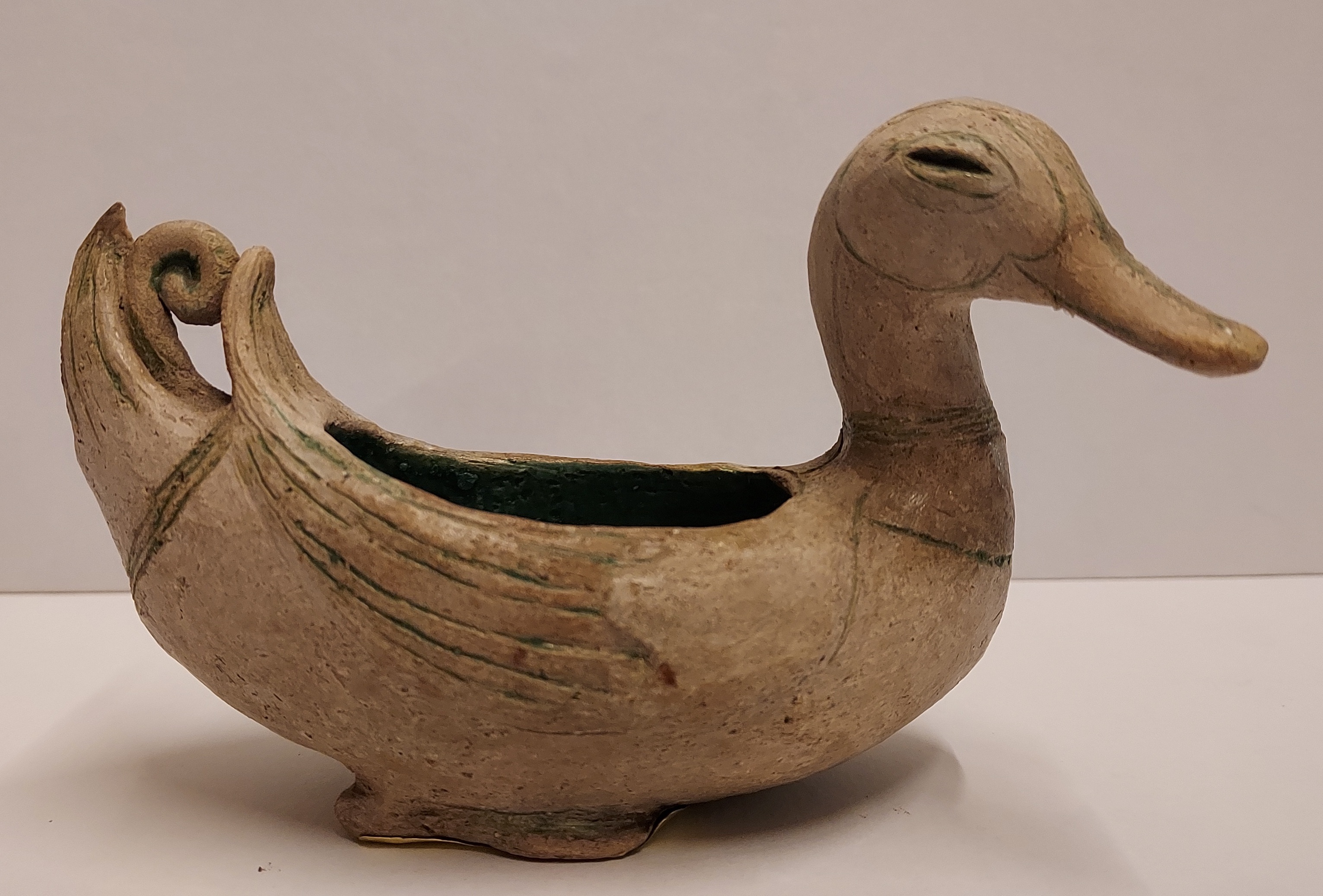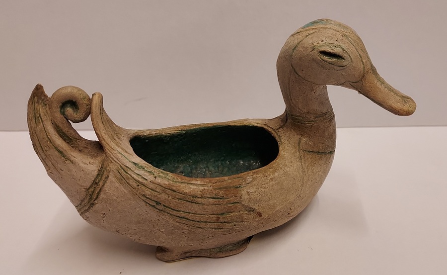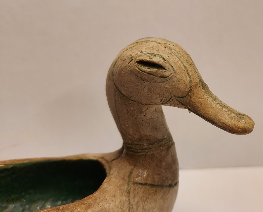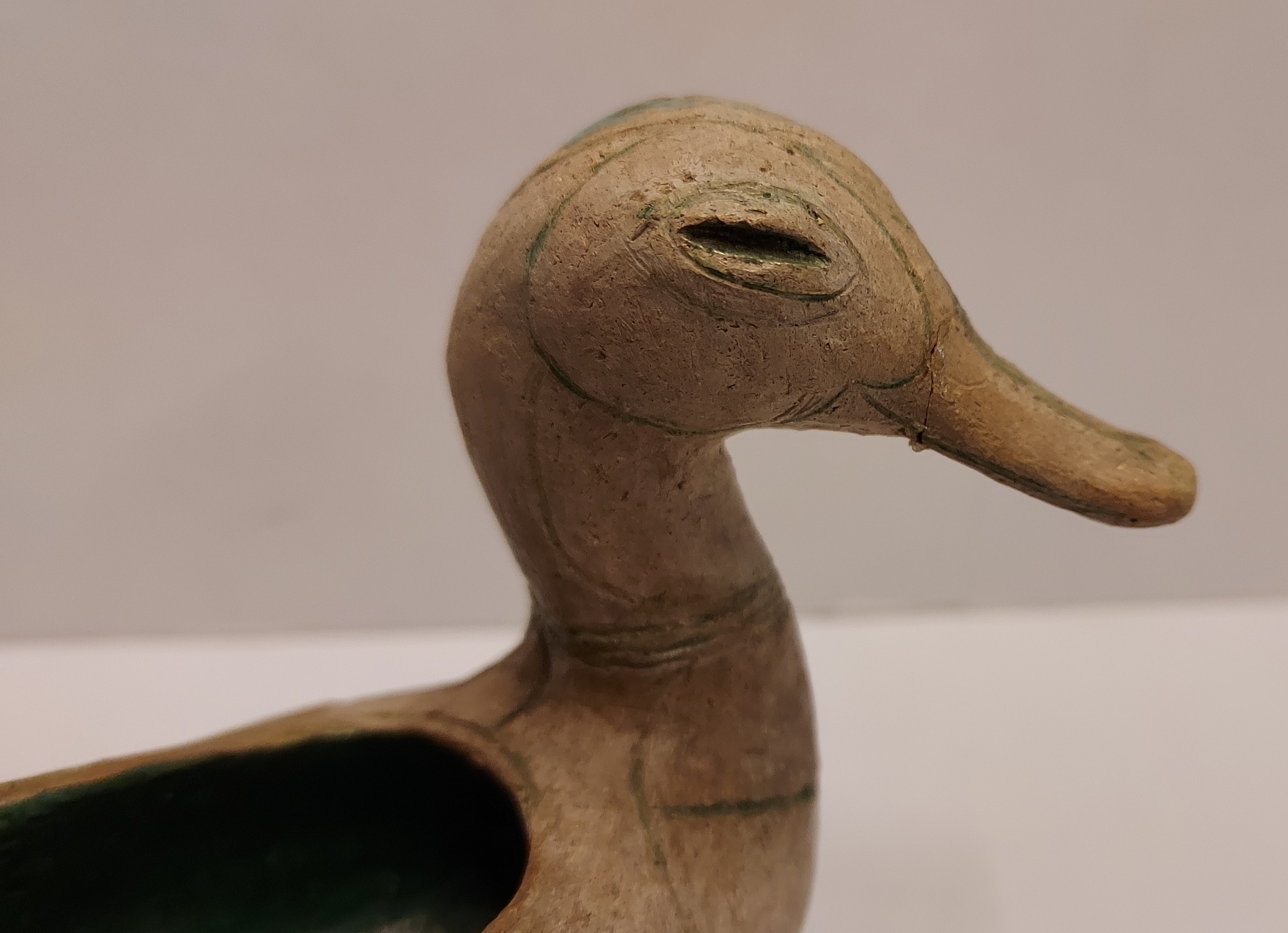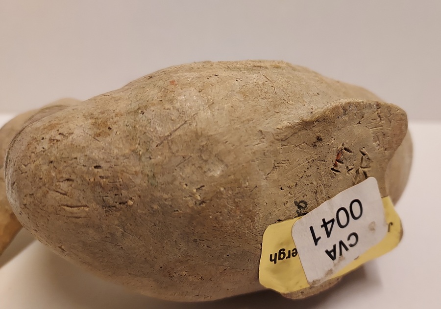 Steingut handgeknetetes Formstück. Rotbrennender Ton mit Engoben und eingeritzten Dekorationen. Unterseite eingeritzt EvR Ausführung 1956. Ex Sammlung J.W.N. van Agterbergh.