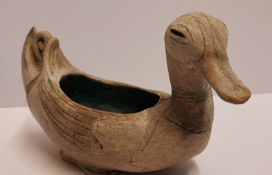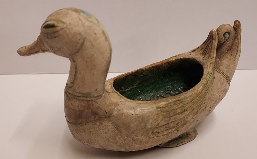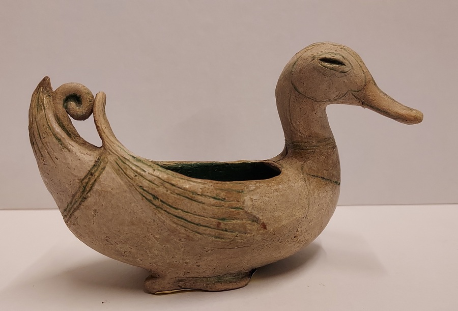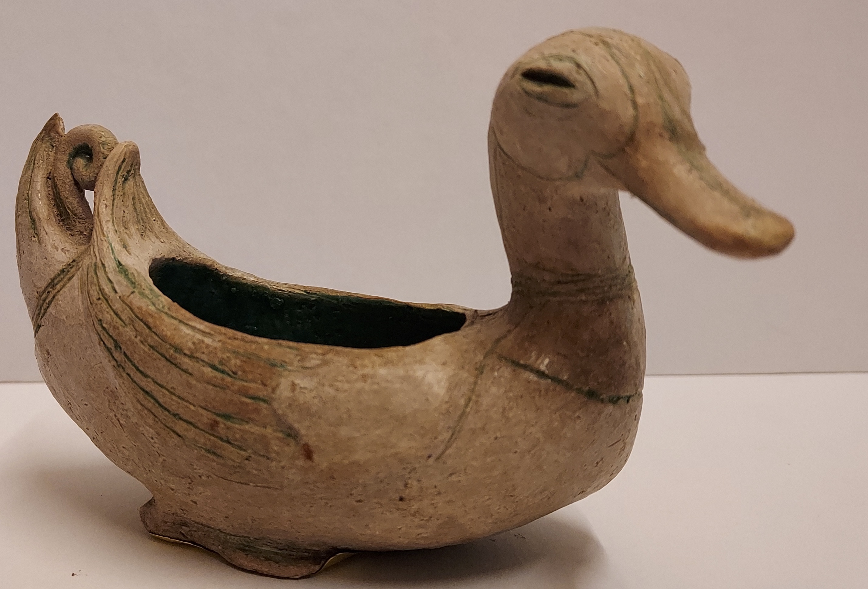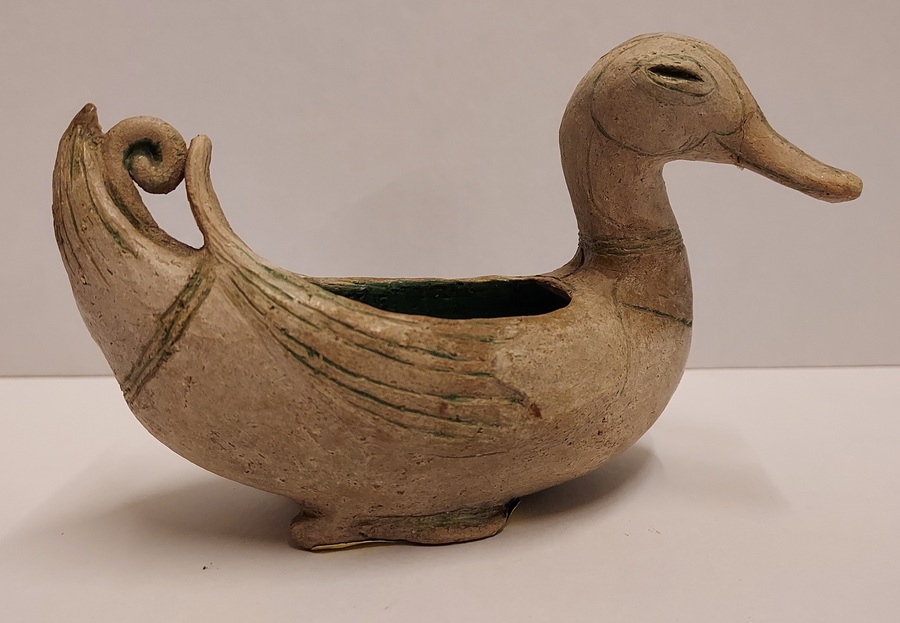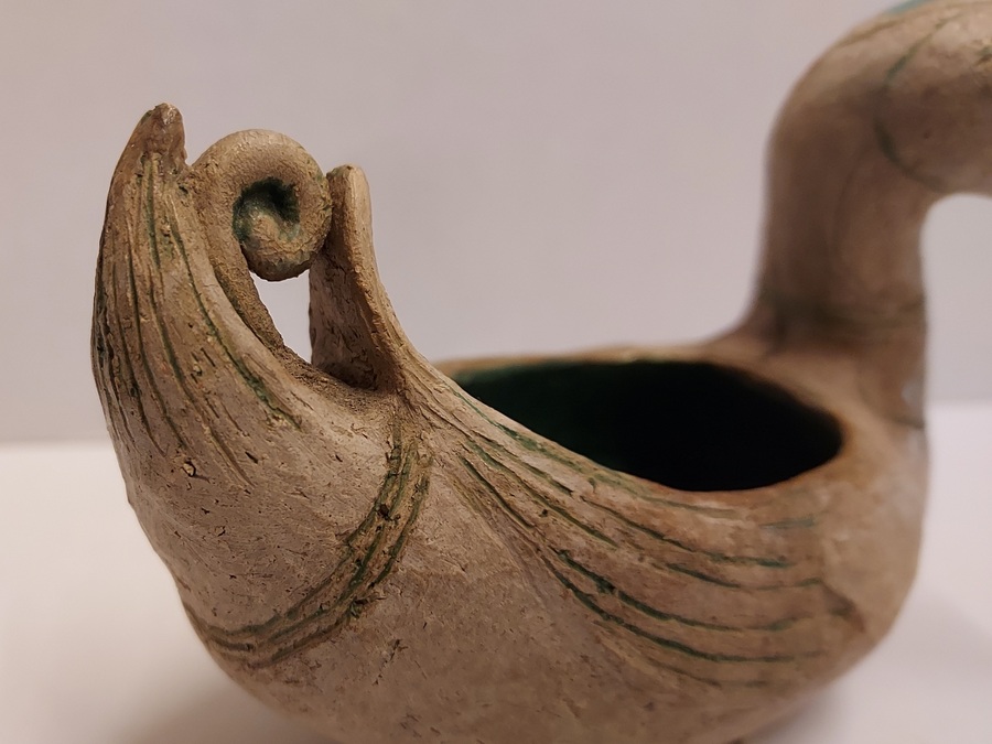 Steingut handgeknetetes Formstück. Rotbrennender Ton mit Engoben und eingeritzten Dekorationen. Unterseite eingeritzt EvR Ausführung 1956. Ex Sammlung J.W.N. van Agterbergh.