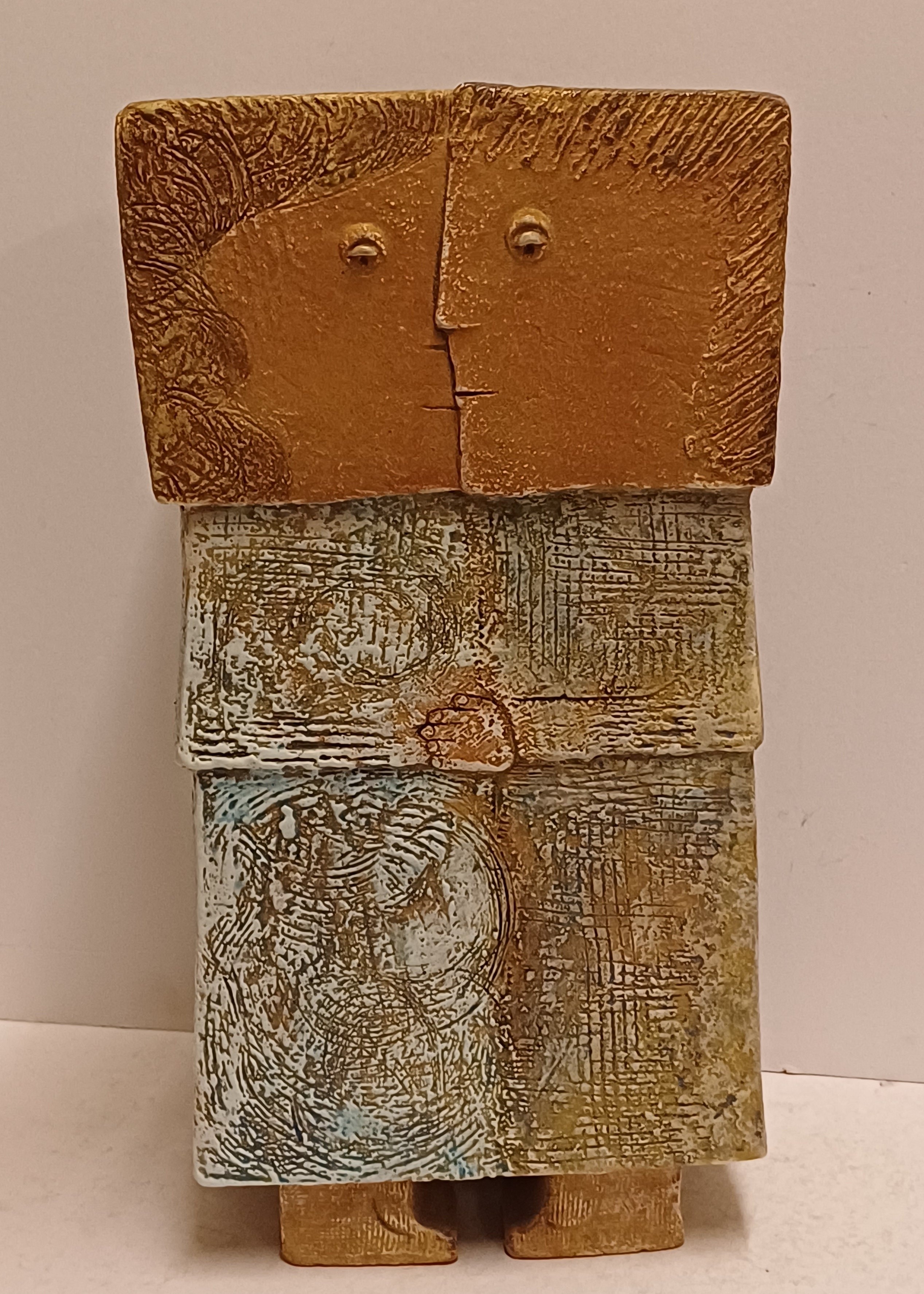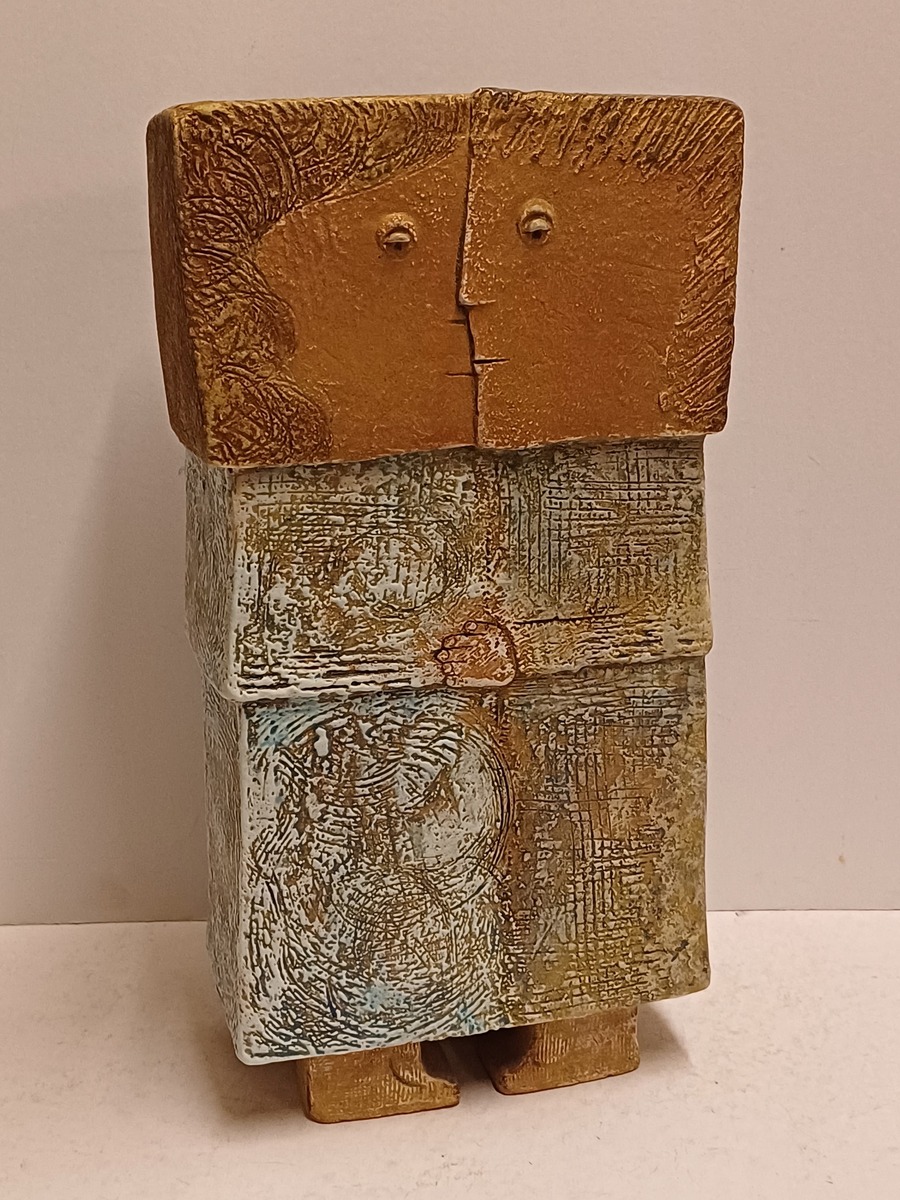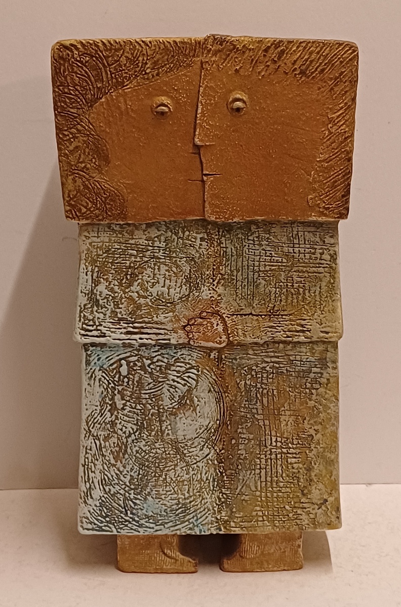 Keramikfigur eines verliebten Paares. Betitelt "twee geliefden", signiert mit Monogramm und datiert '92.