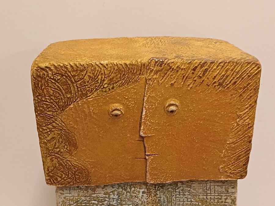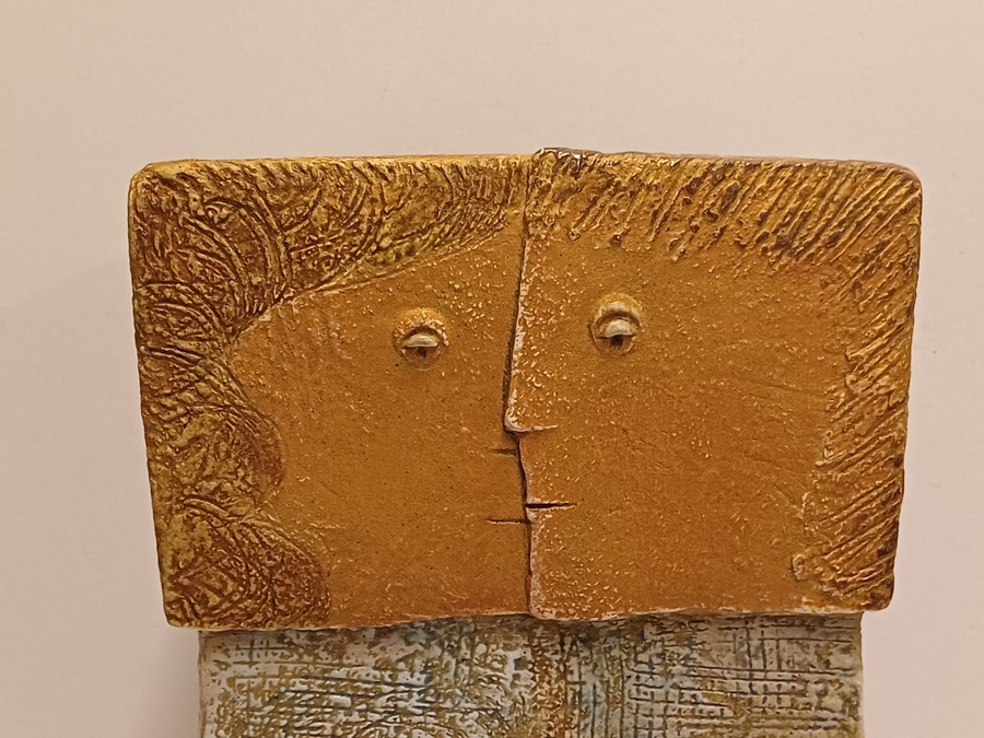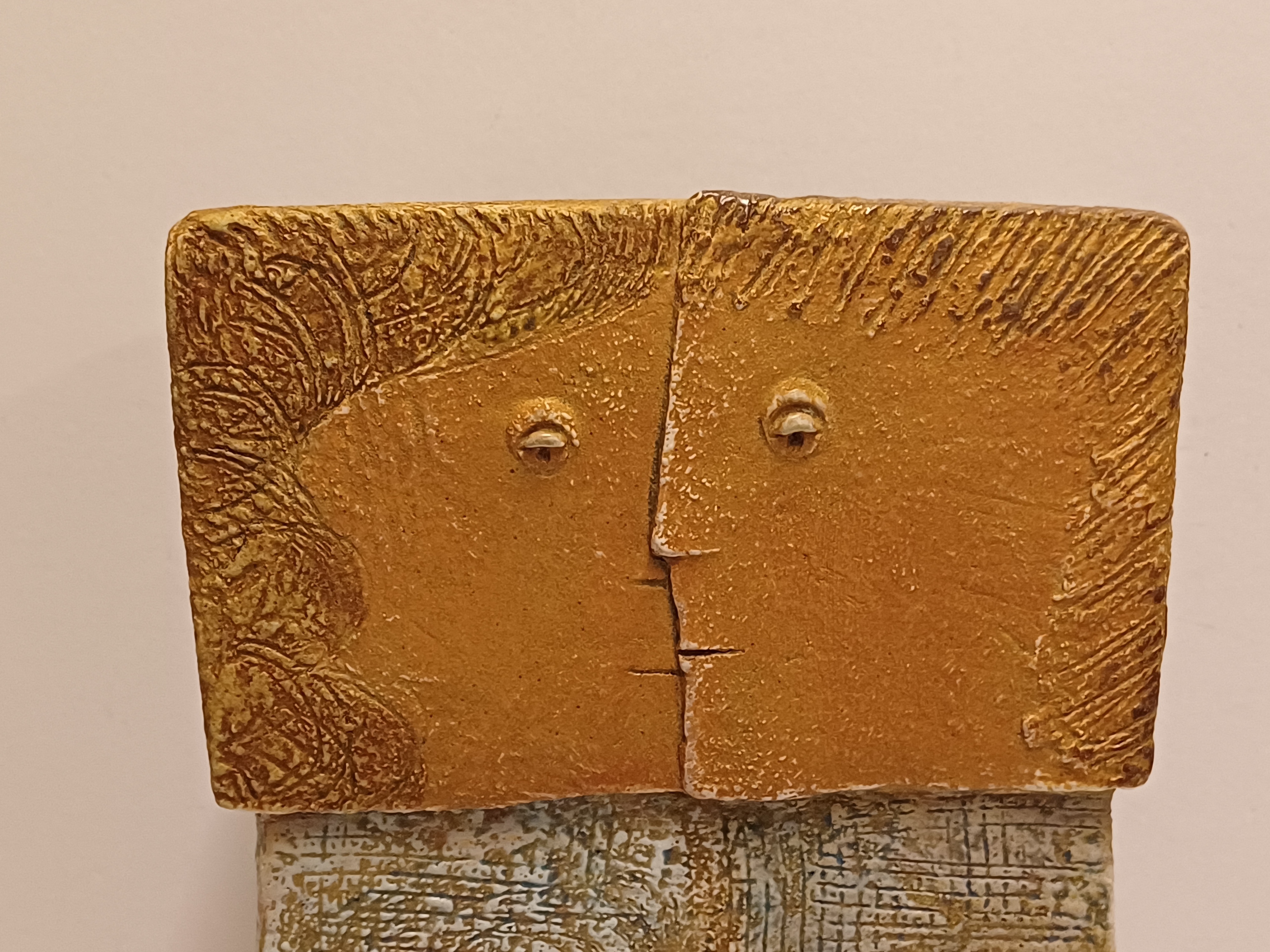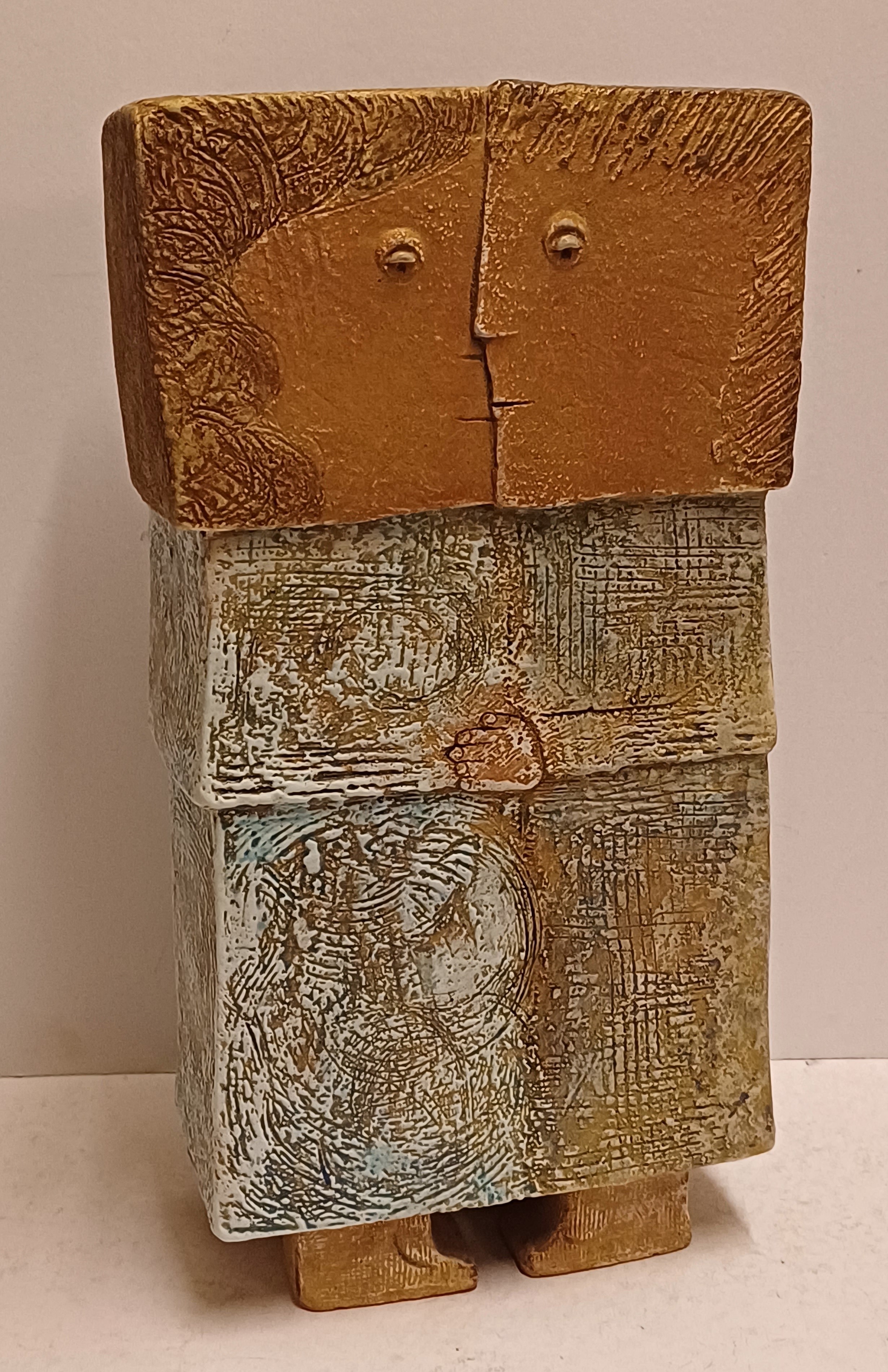 Keramikfigur eines verliebten Paares. Betitelt "twee geliefden", signiert mit Monogramm und datiert '92.