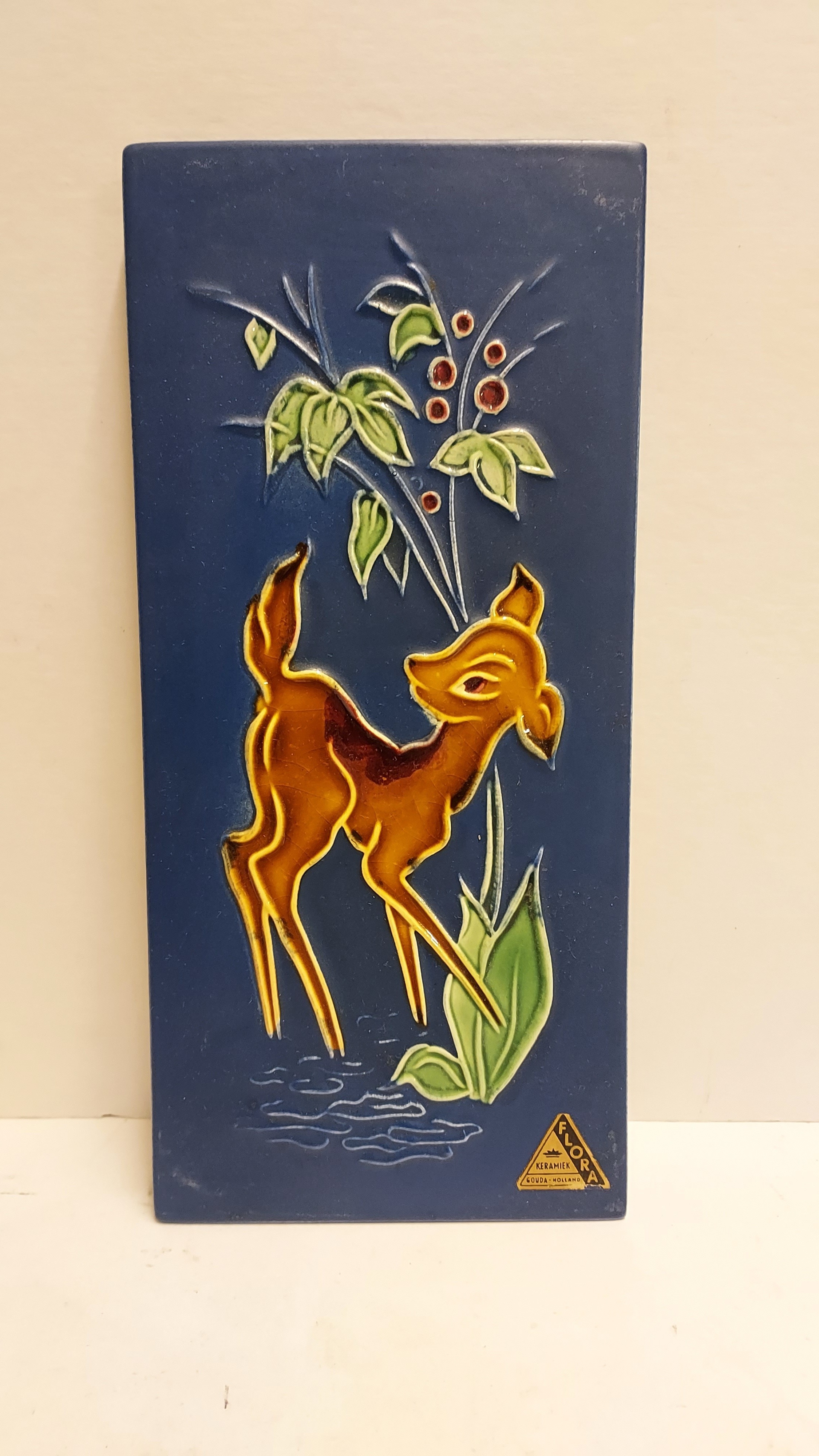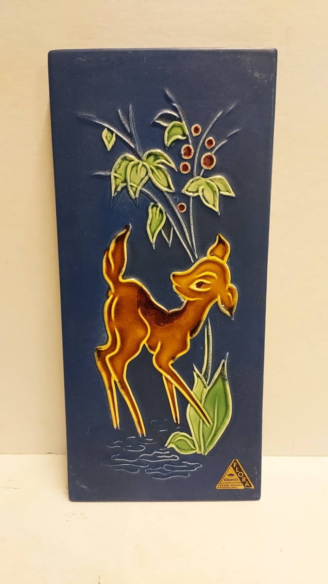 Mit Dekoration eines jungen Rehkitzes. Rückseite mit Fabrikmarke.