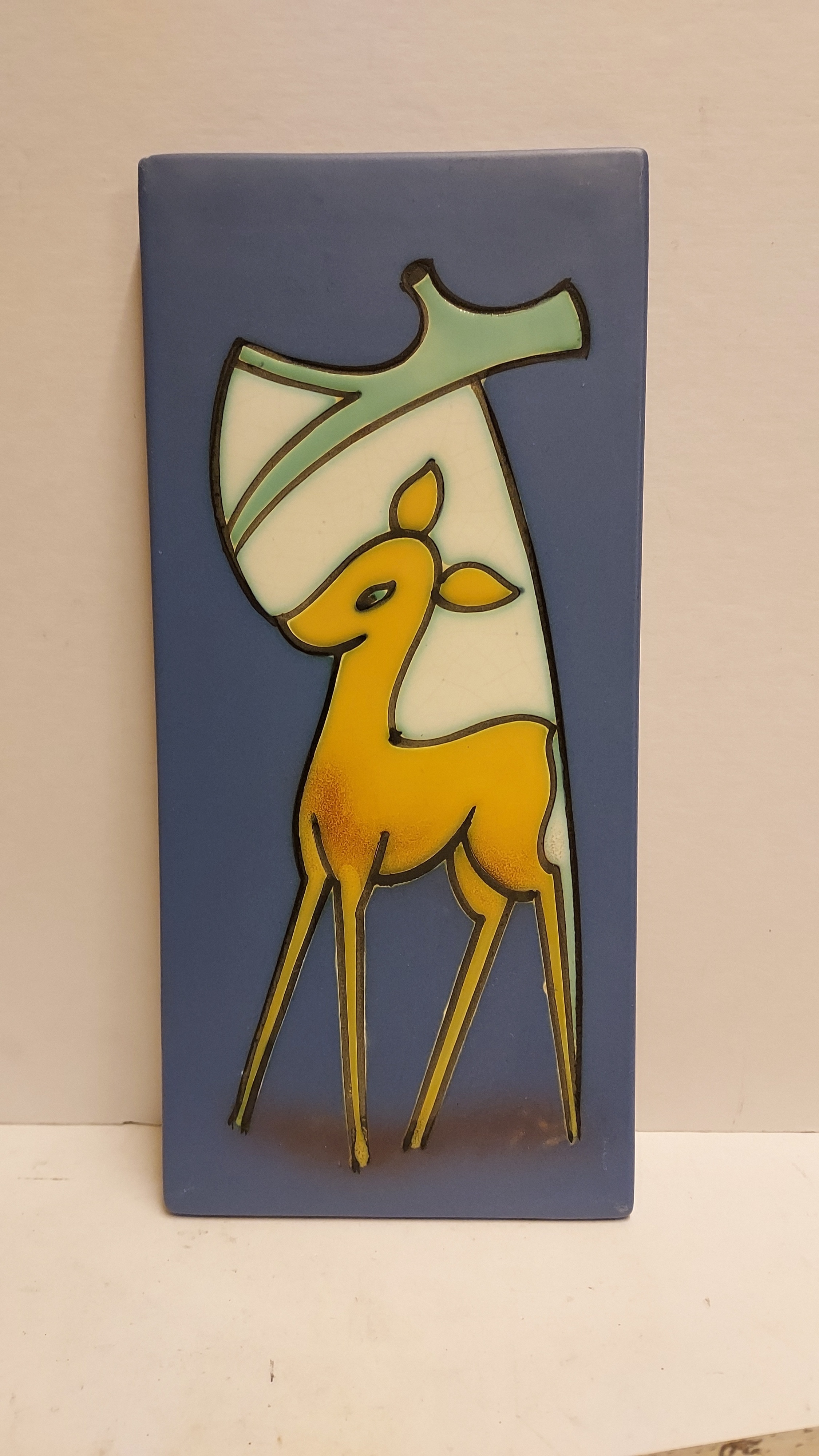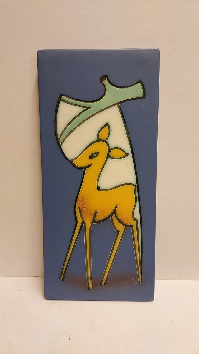 Mit Hirsch in Artistique-Dekoration. Rückseite signiert.
