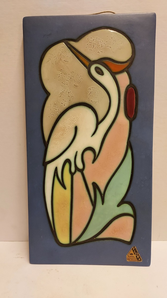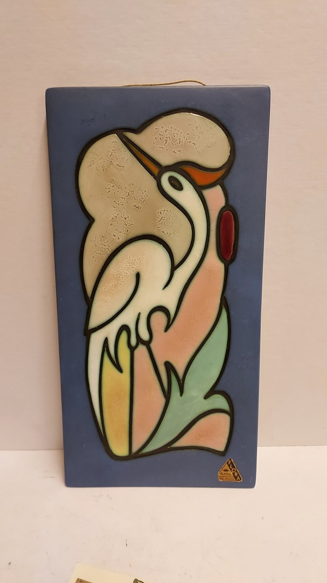 Dekoration eines Reihers im Artistque-Dekor. Rückseite mit Fabrikmarke.