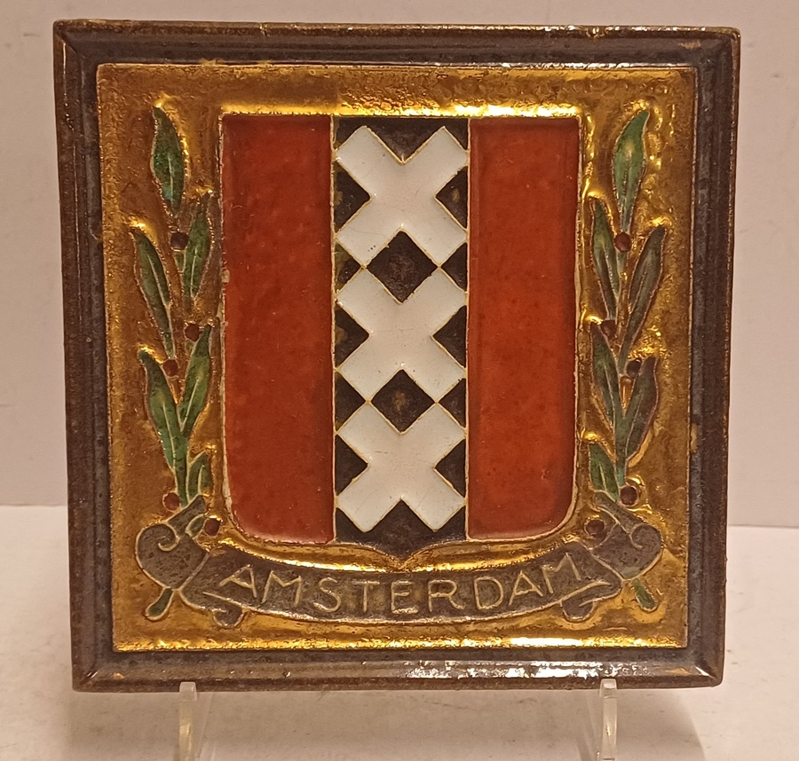 Tegel wapenschild Amsterdam. Porceleyne fles Delft