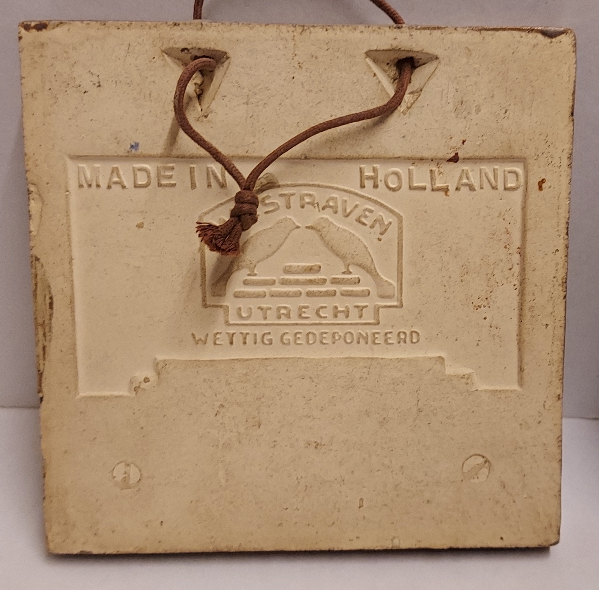 Cloisonné-Fliese mit dem Stadtwappen von Leeuwarden. Rückseite mit Fabrikmarke.
