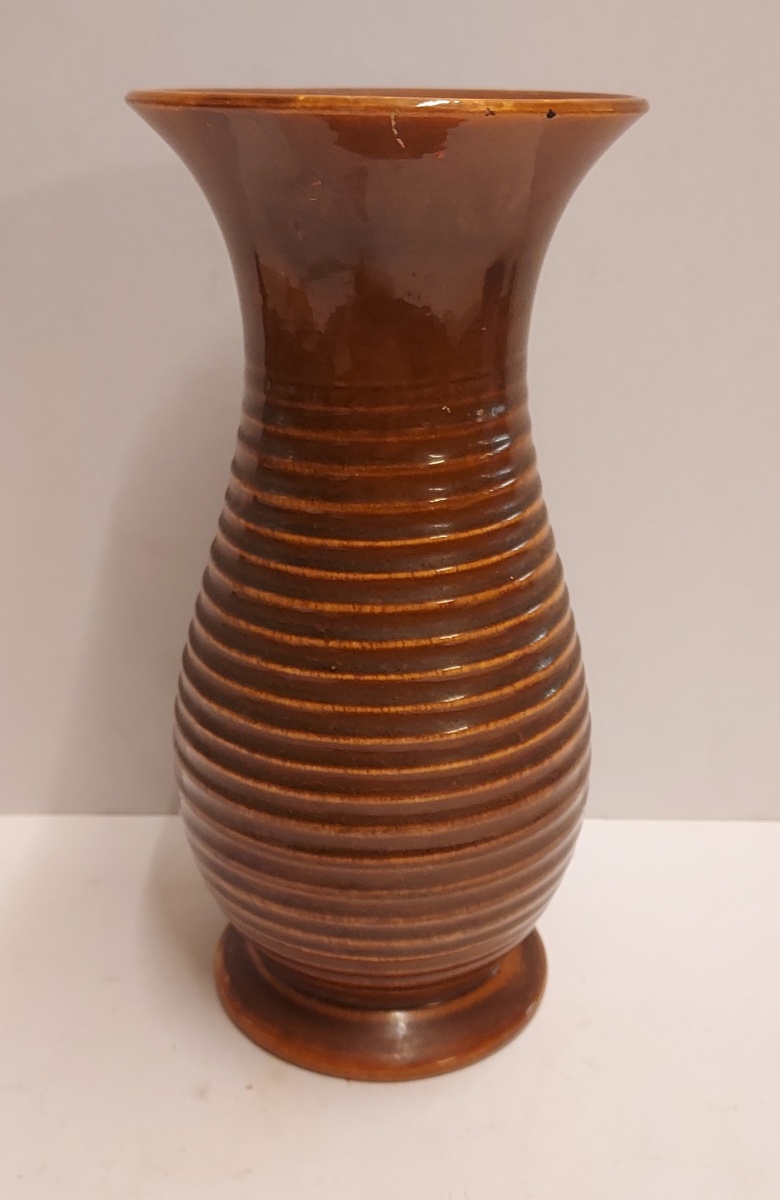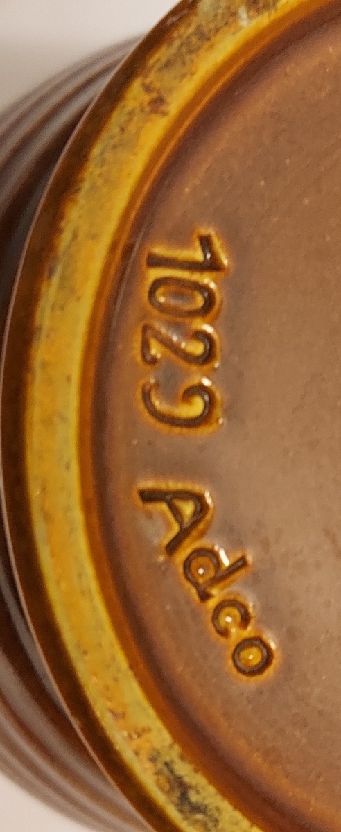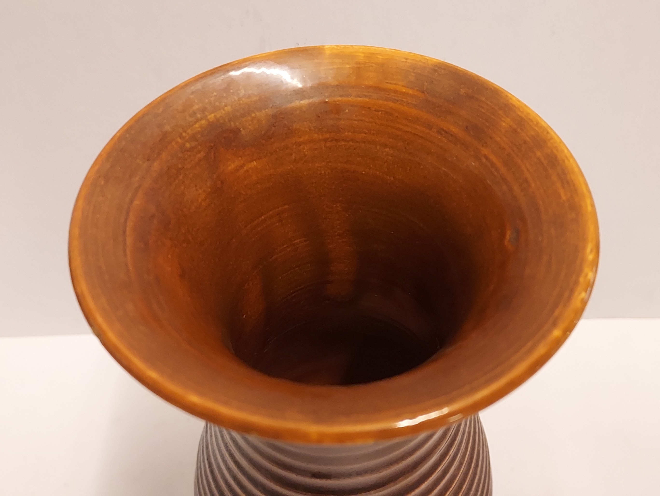 Seltenes Modell Adco Vase mit orange-brauner Glasur. Unterseite markiert.