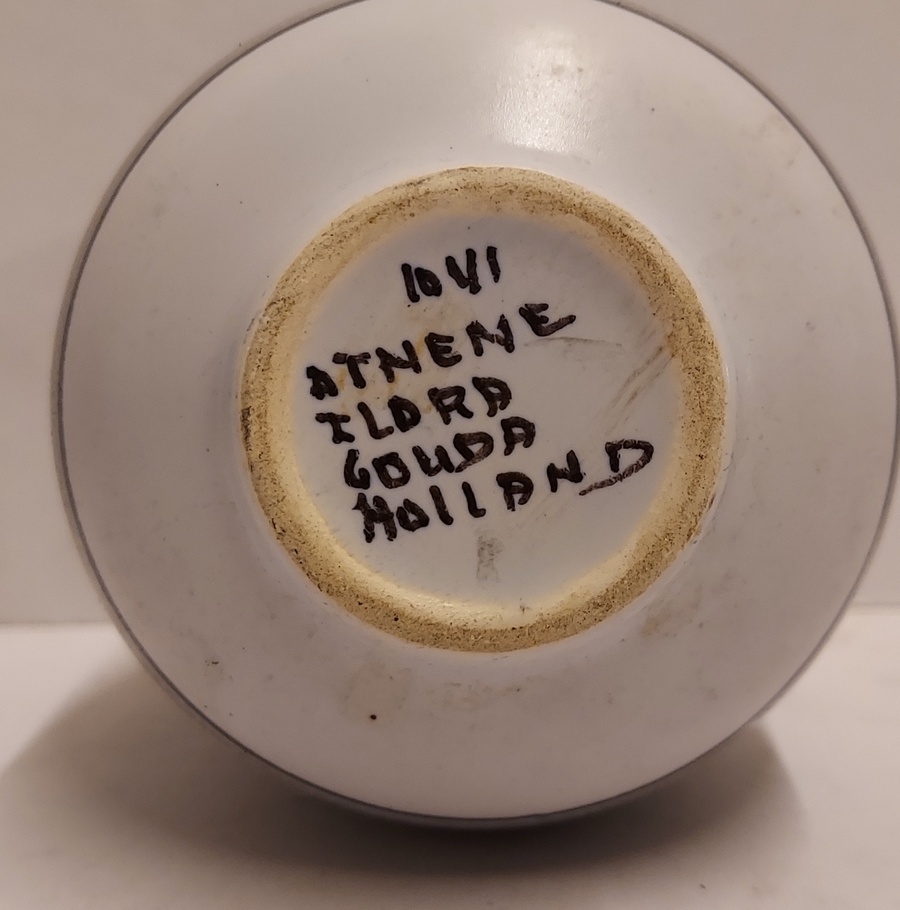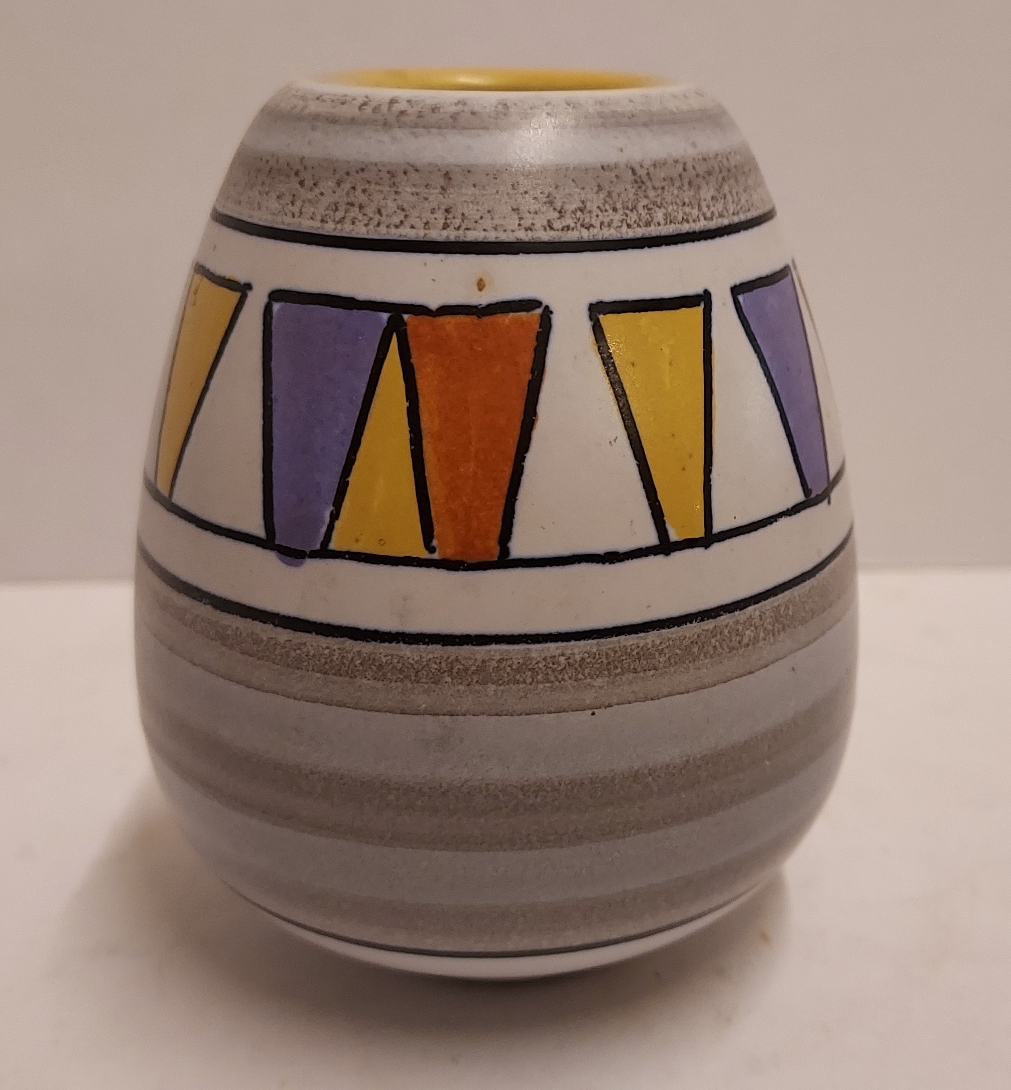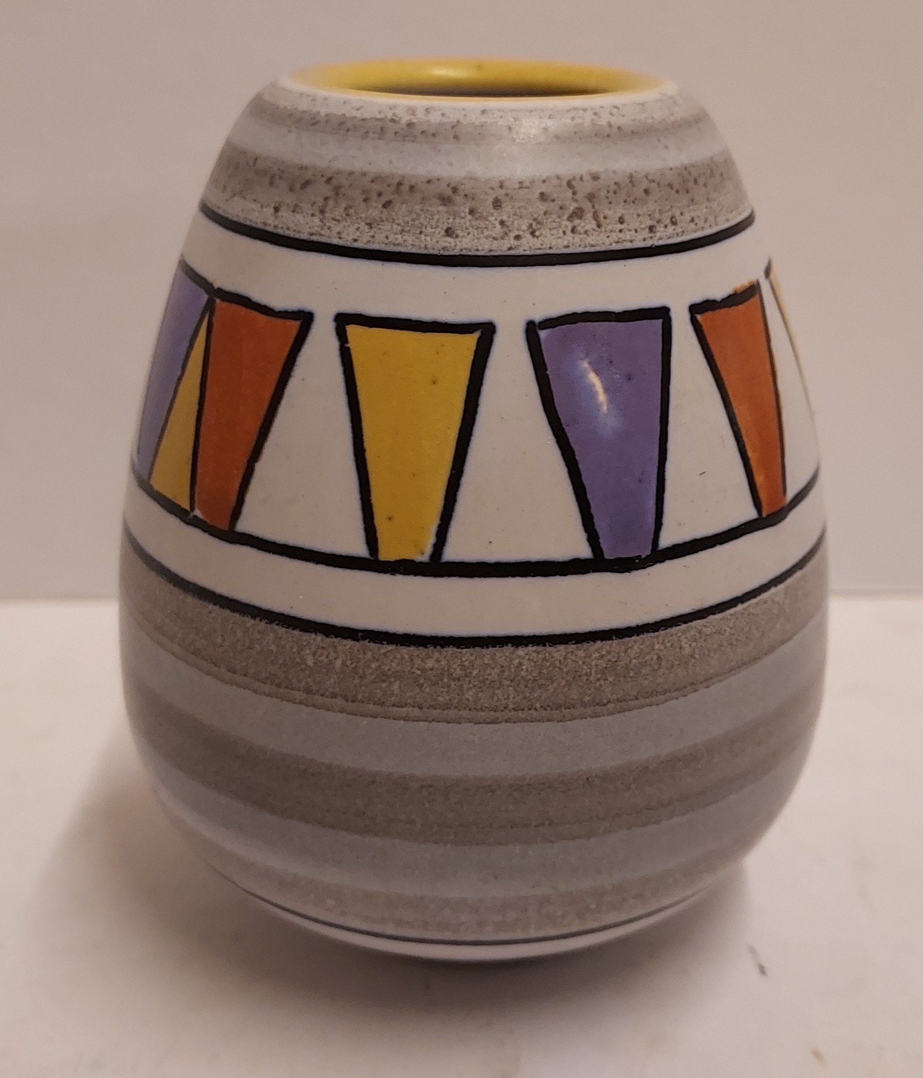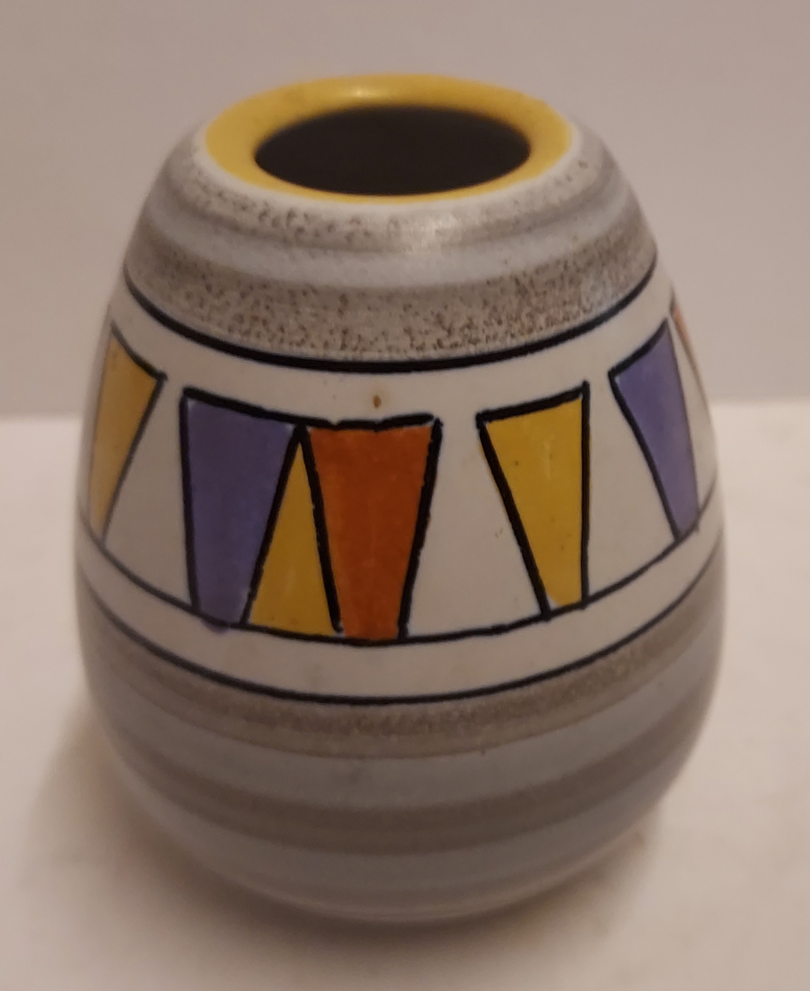 Väschen mit mehrfarbigem geometrischem Dekor Athene. Unterseite markiert und nummeriert.