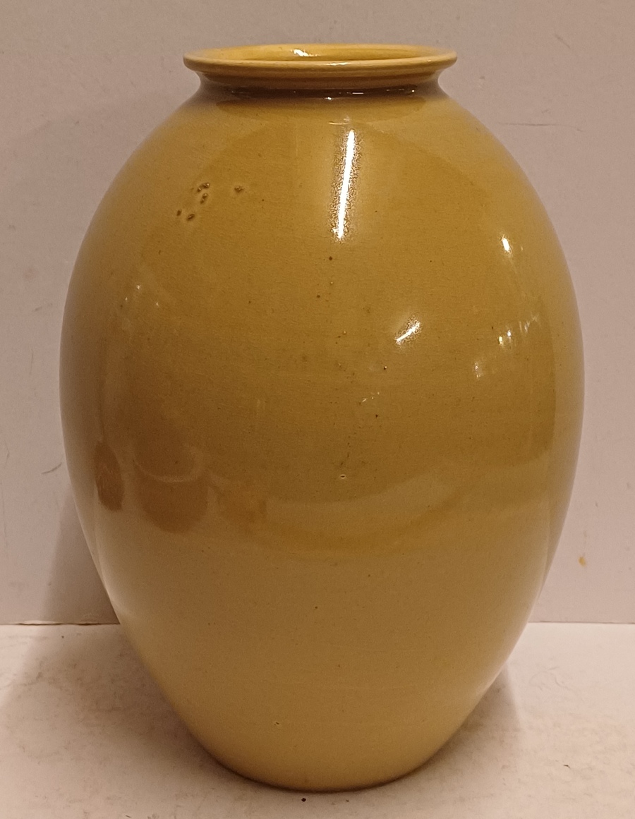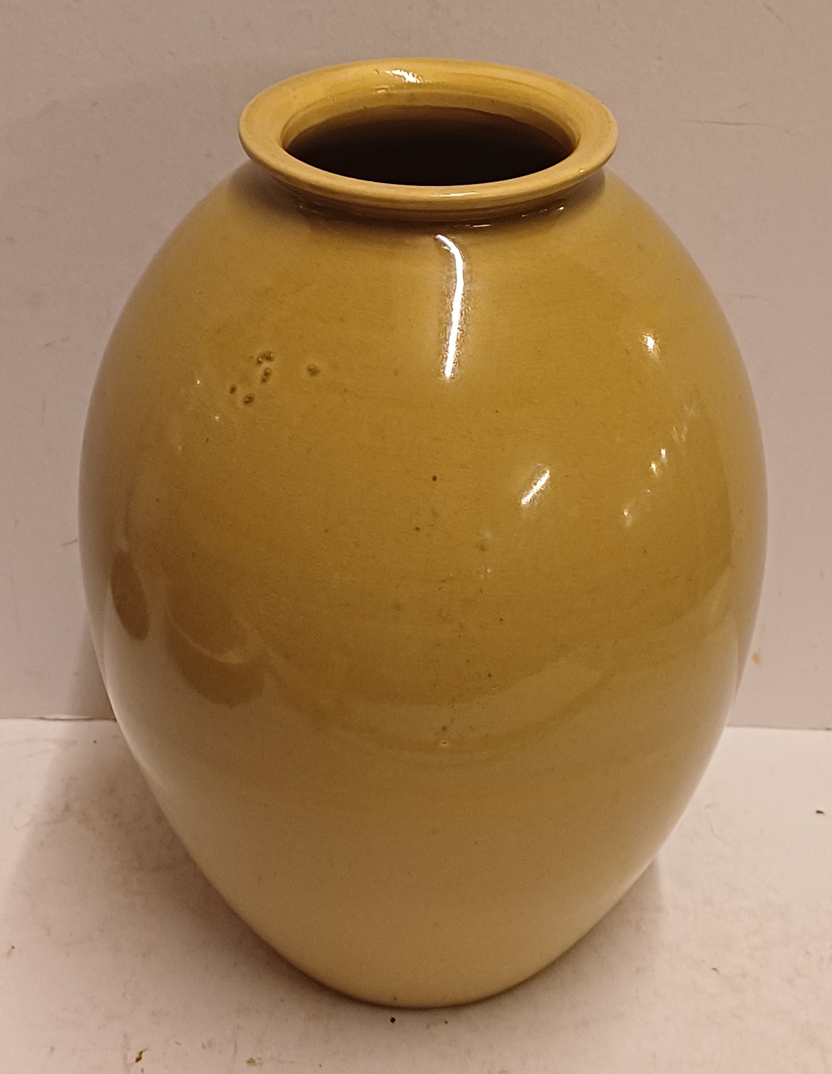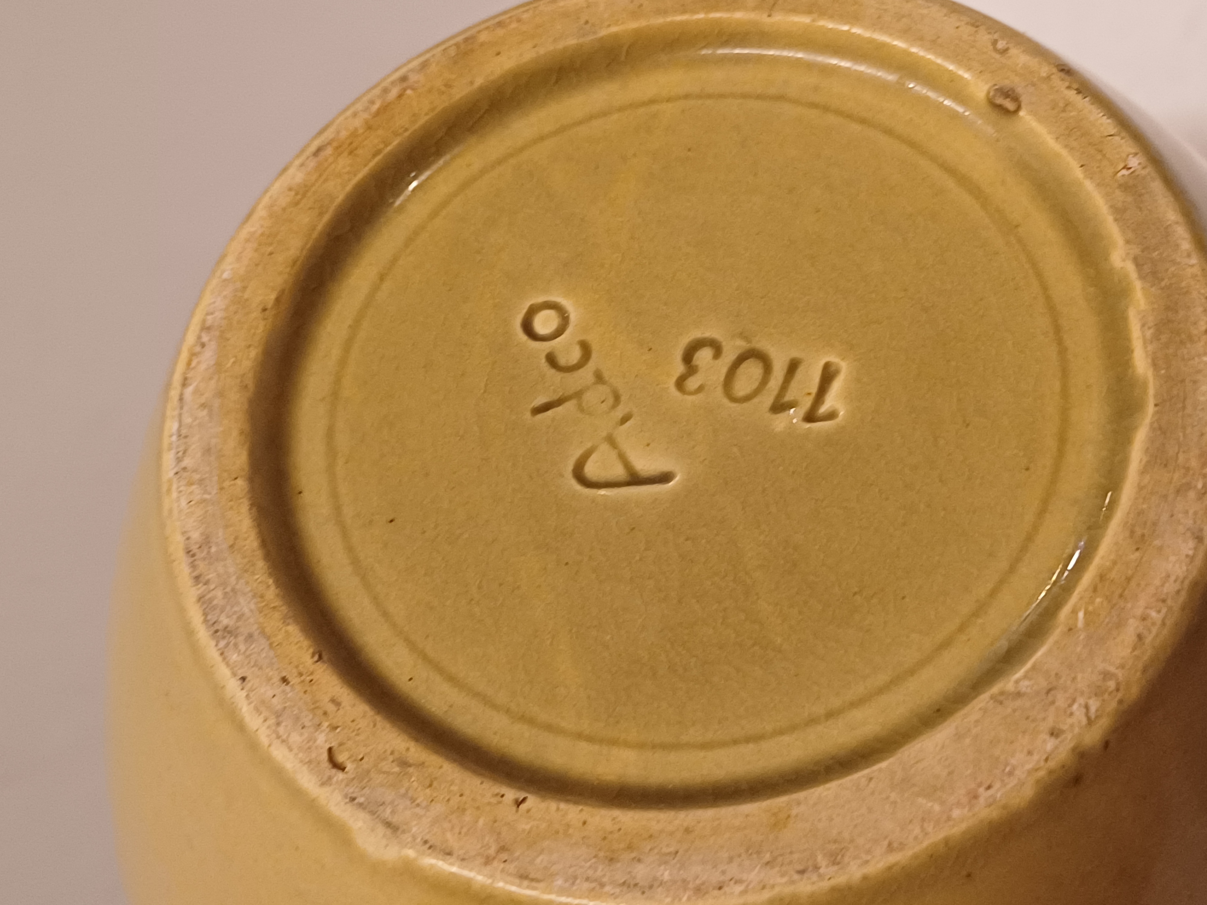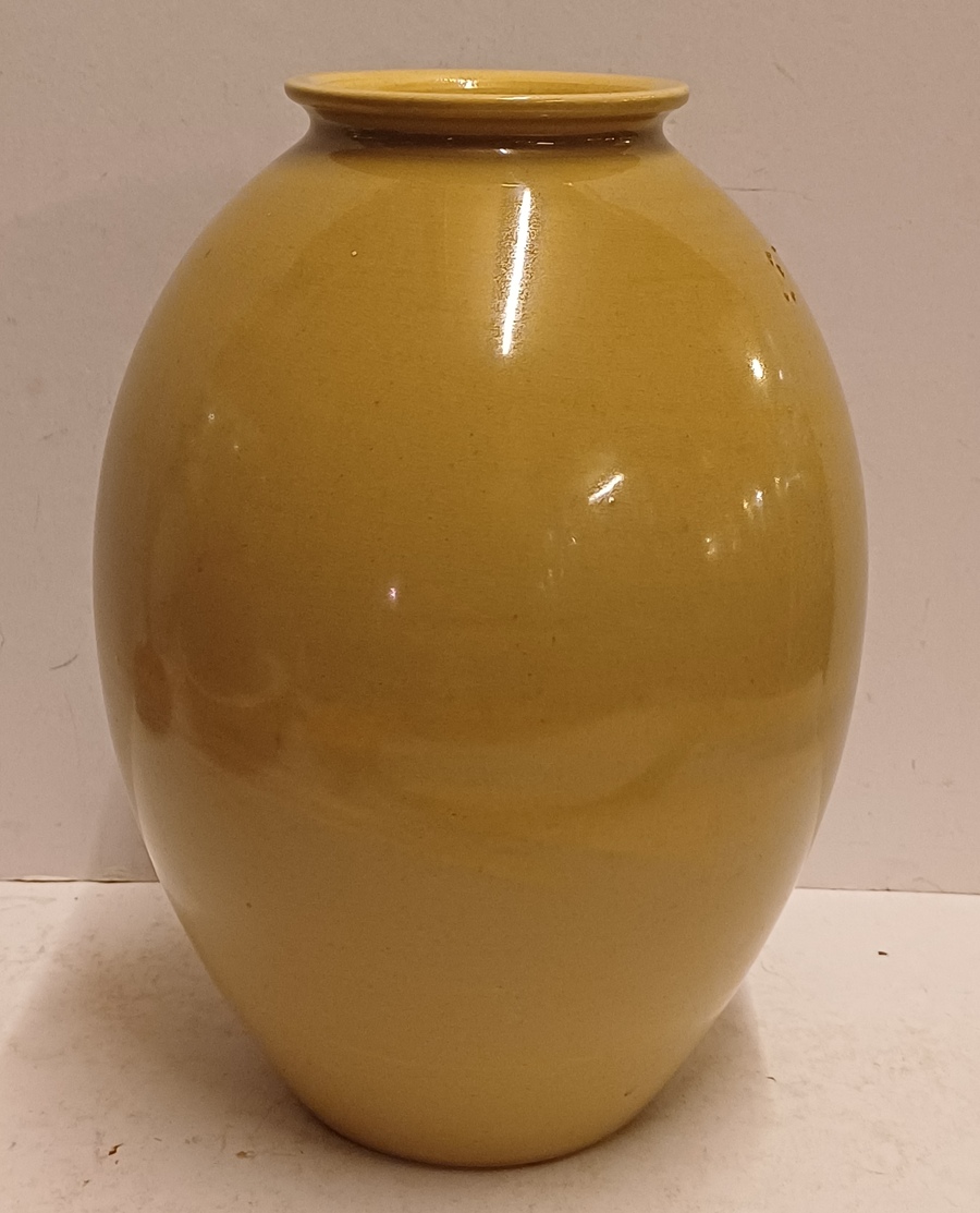 Aardewerken vaas met zandkleurige glazuur. Onderzijde met fabrieksmerk en modelnummer.
