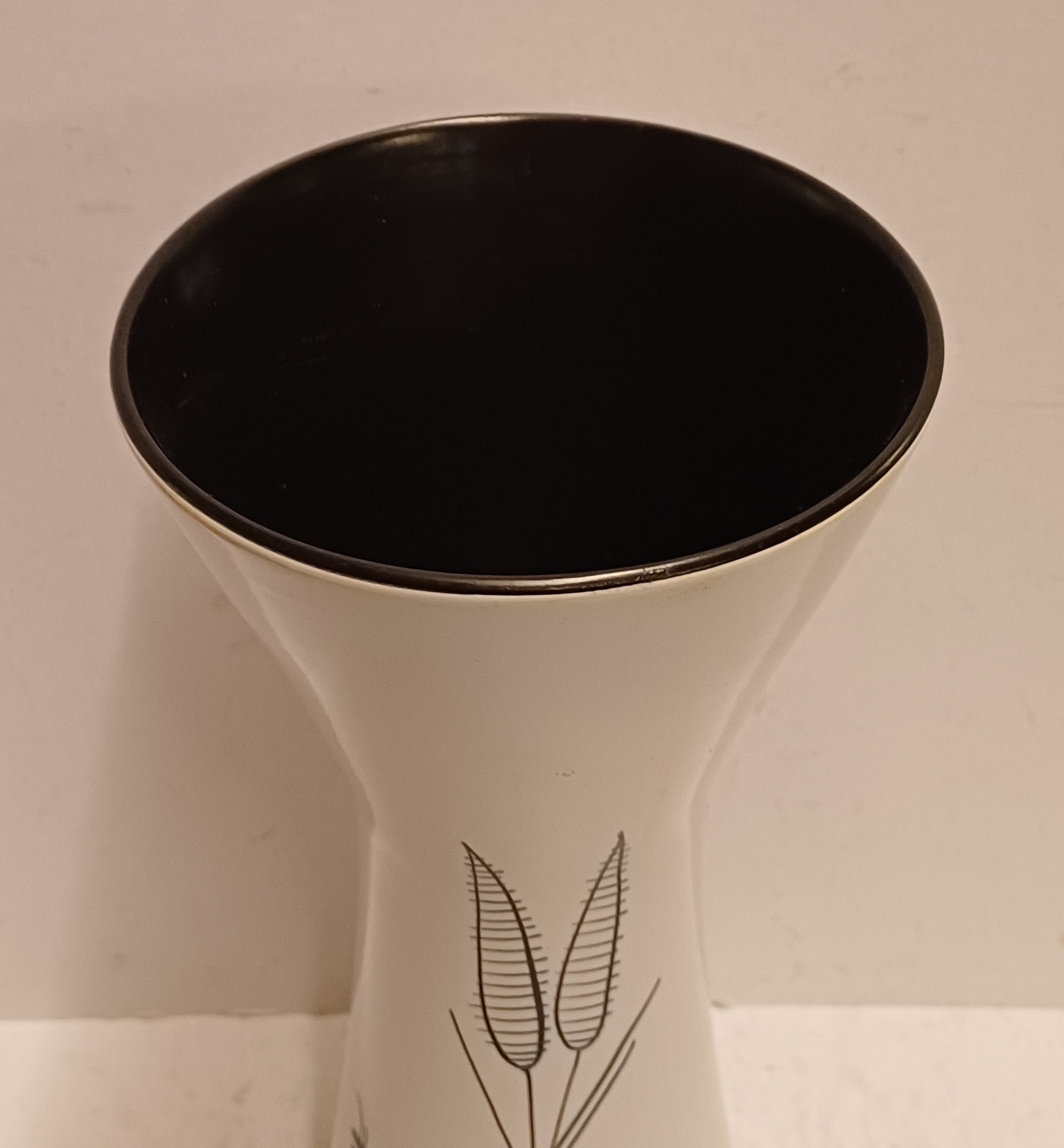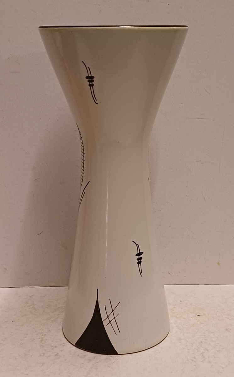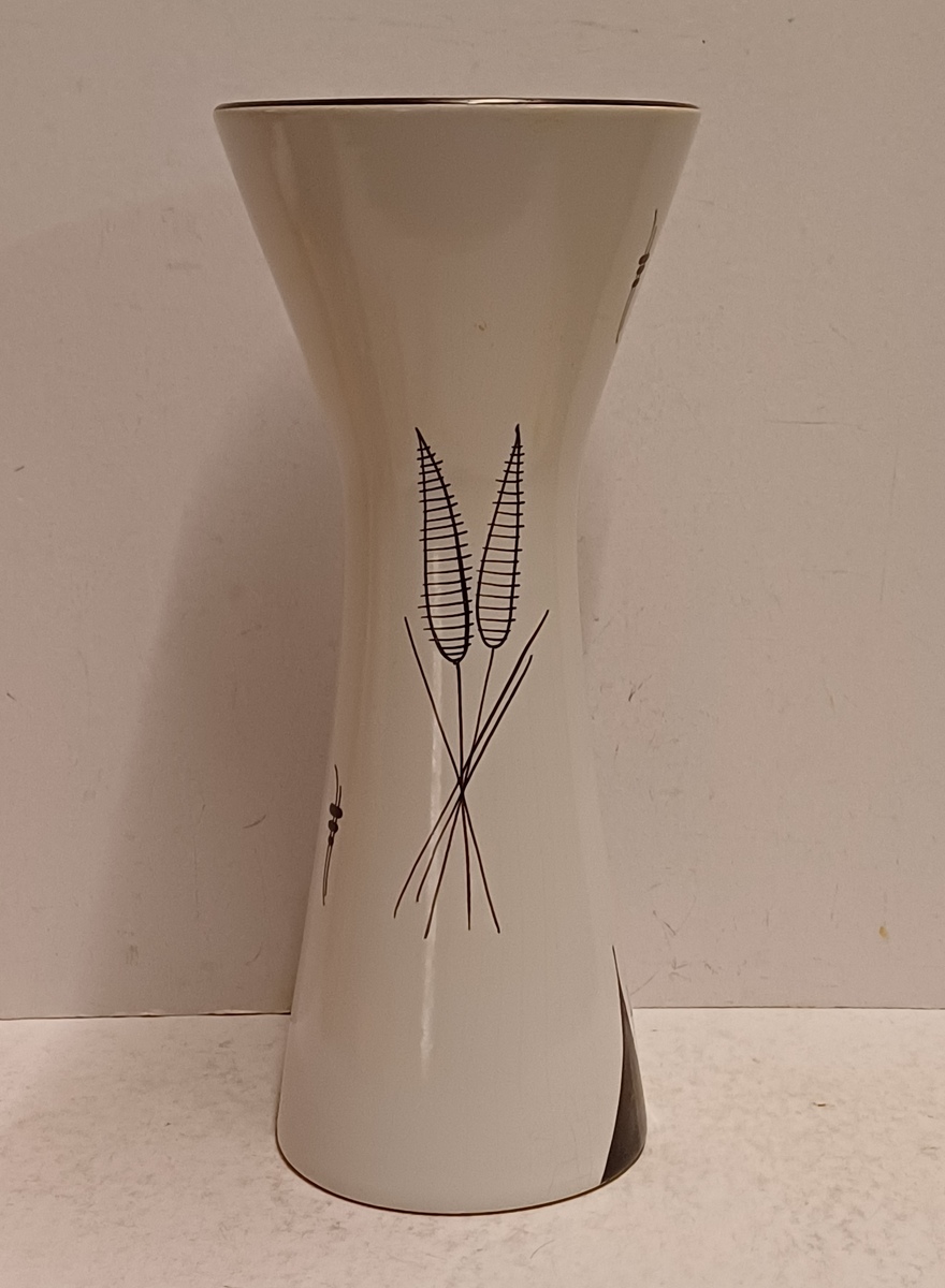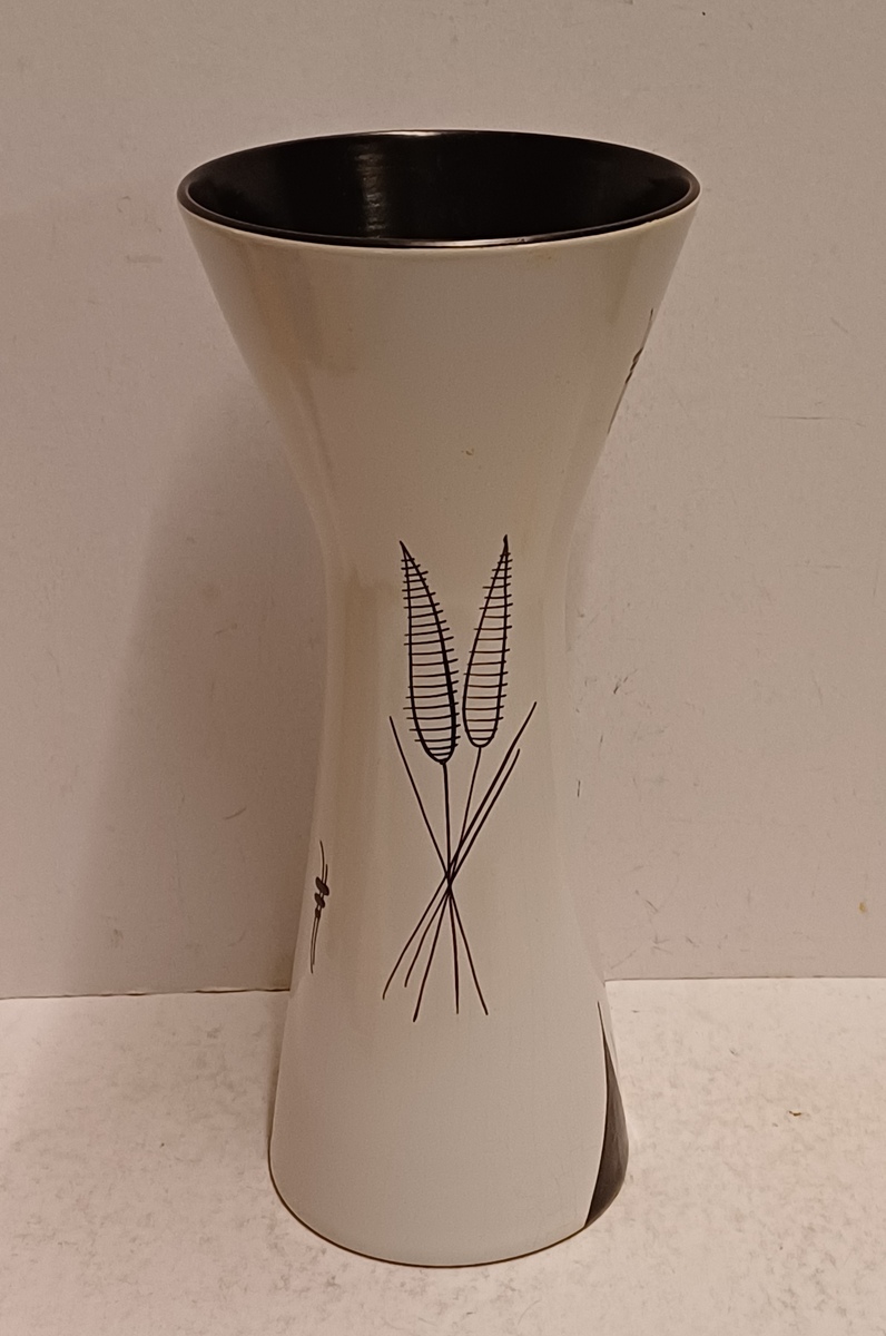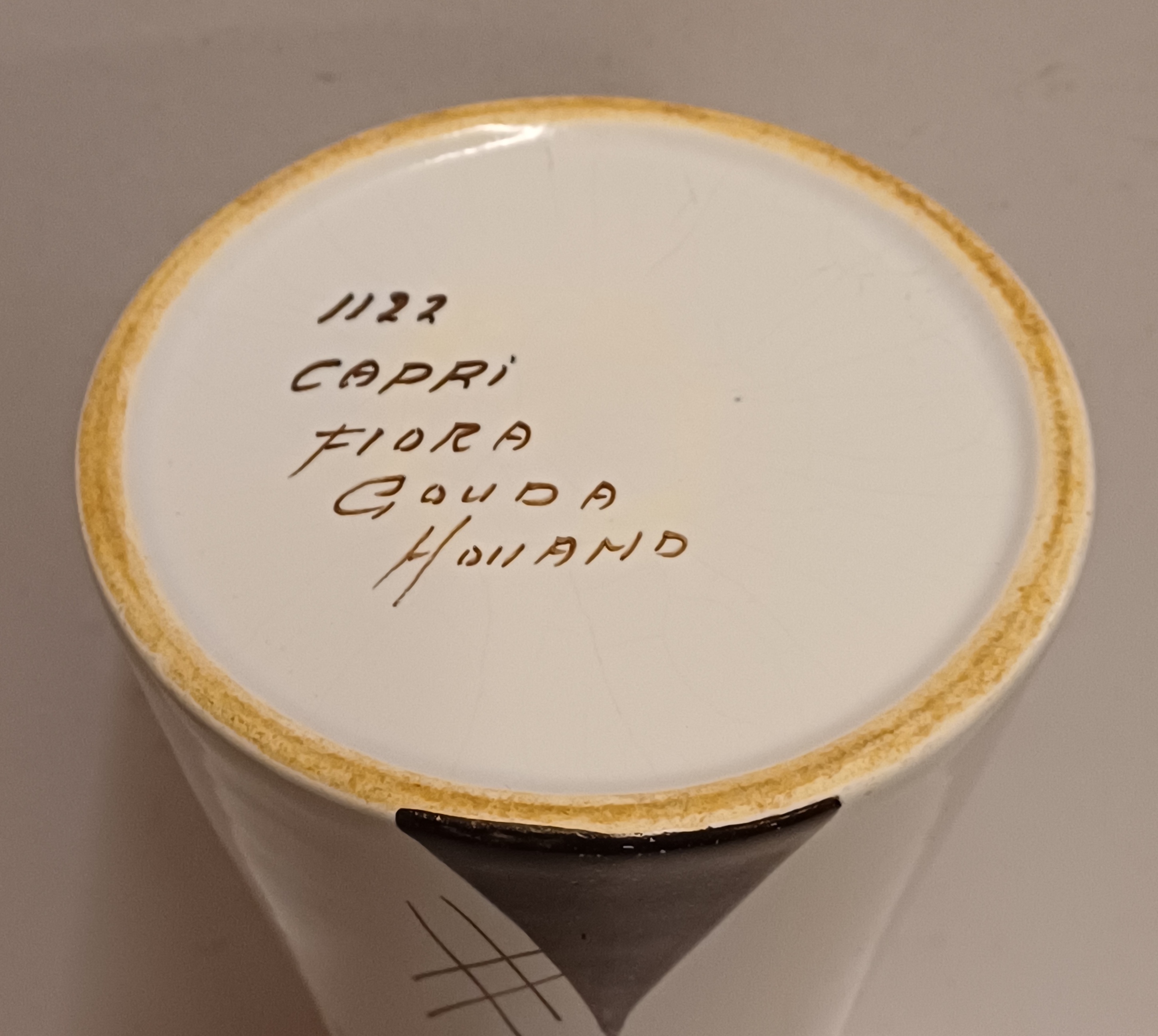 Platelen vaas met decor Capri op grijs fond. Onderzijde met fabrieksmerk en modelnummer.