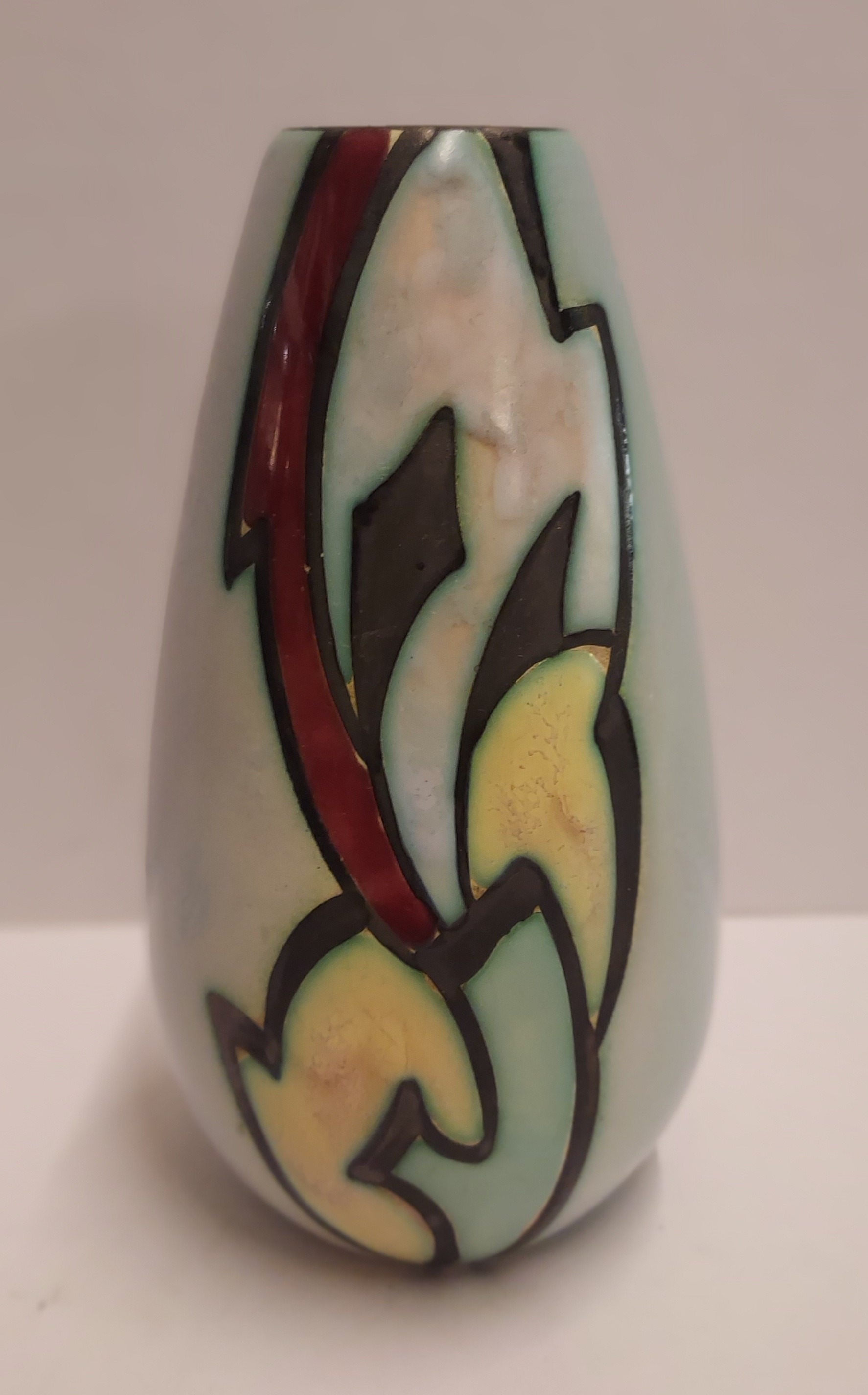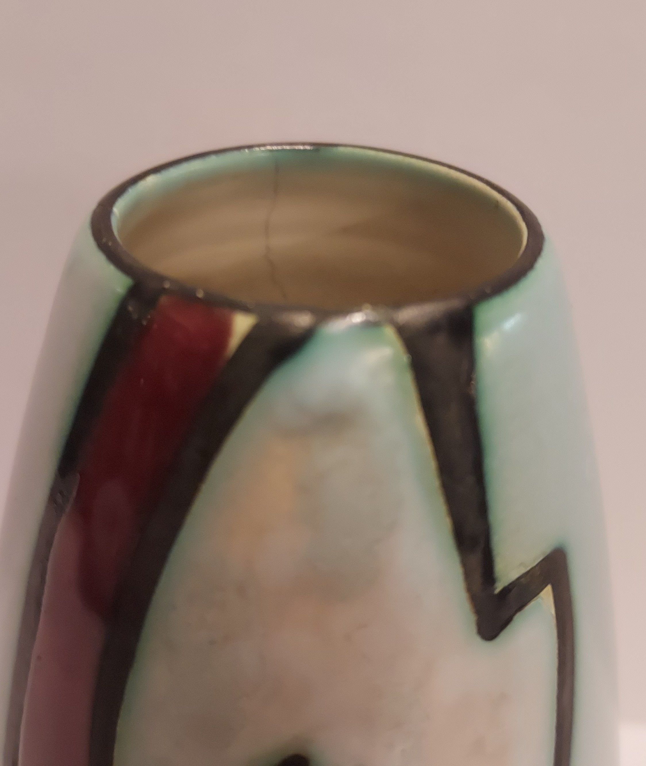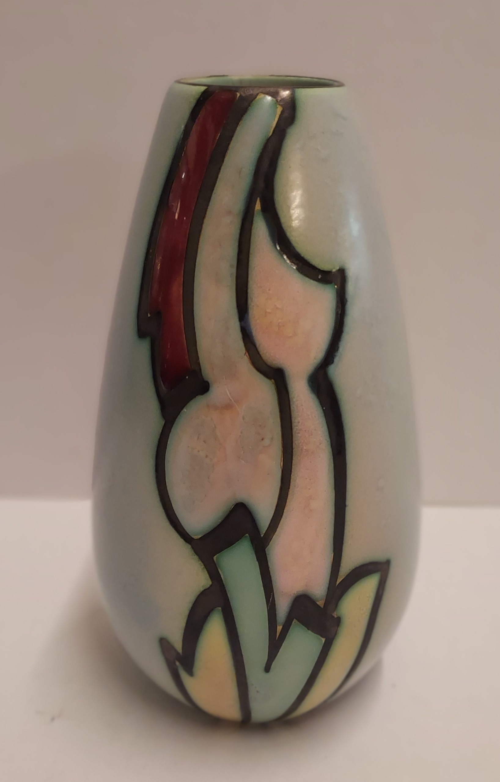 Steingutväschen mit mehrfarbigem Dekor Artistique. Unterseite mit Fabrikmarke.