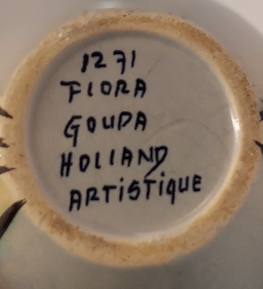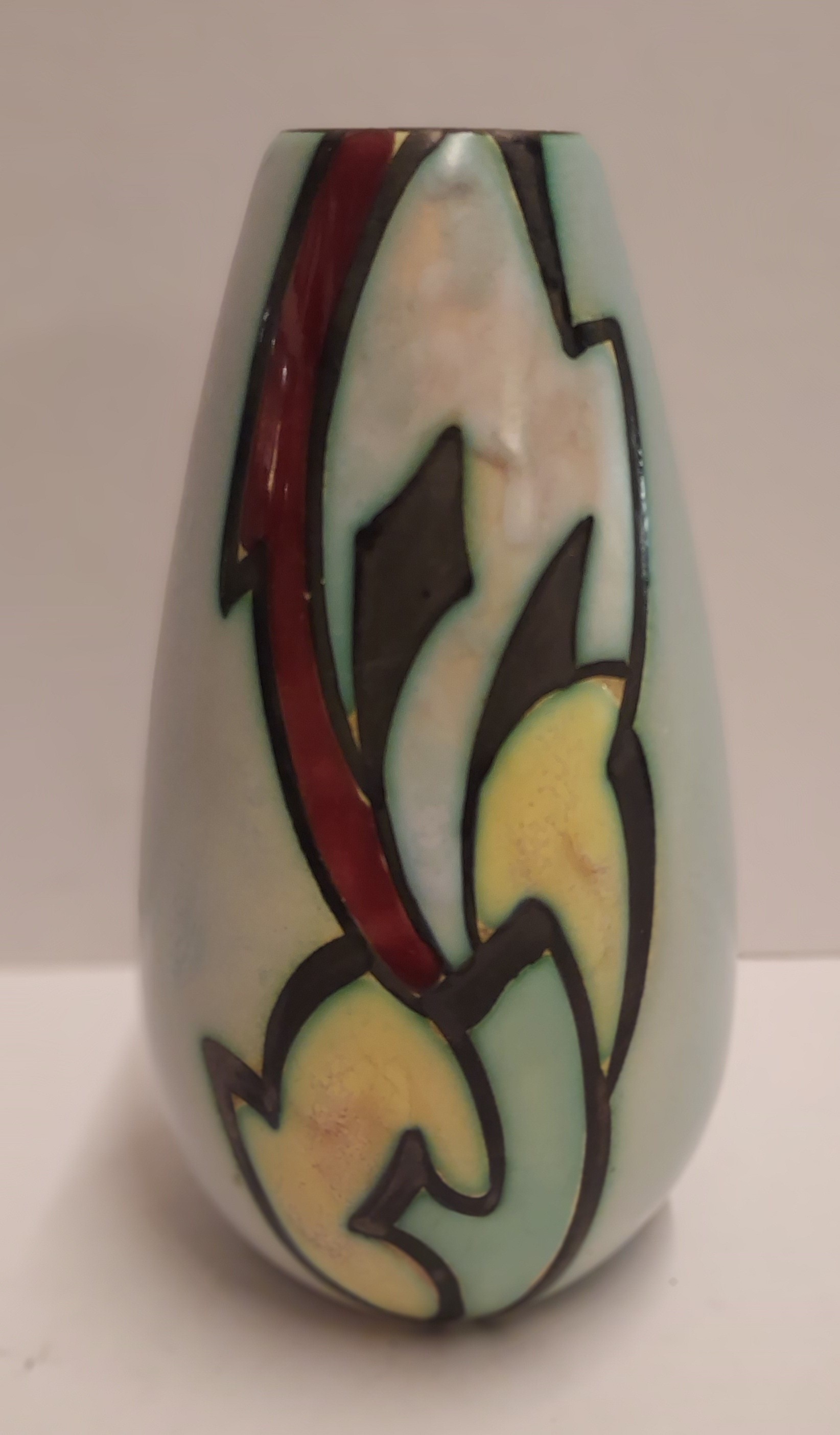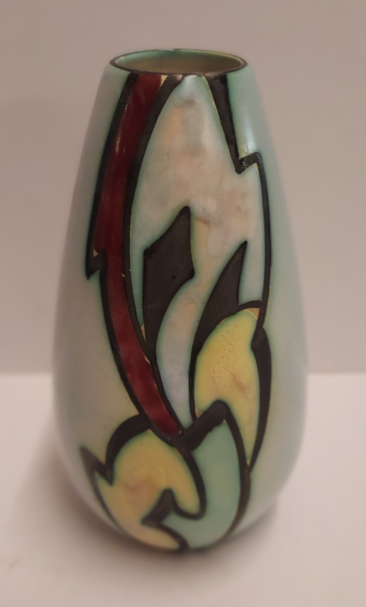 Steingutväschen mit mehrfarbigem Dekor Artistique. Unterseite mit Fabrikmarke.