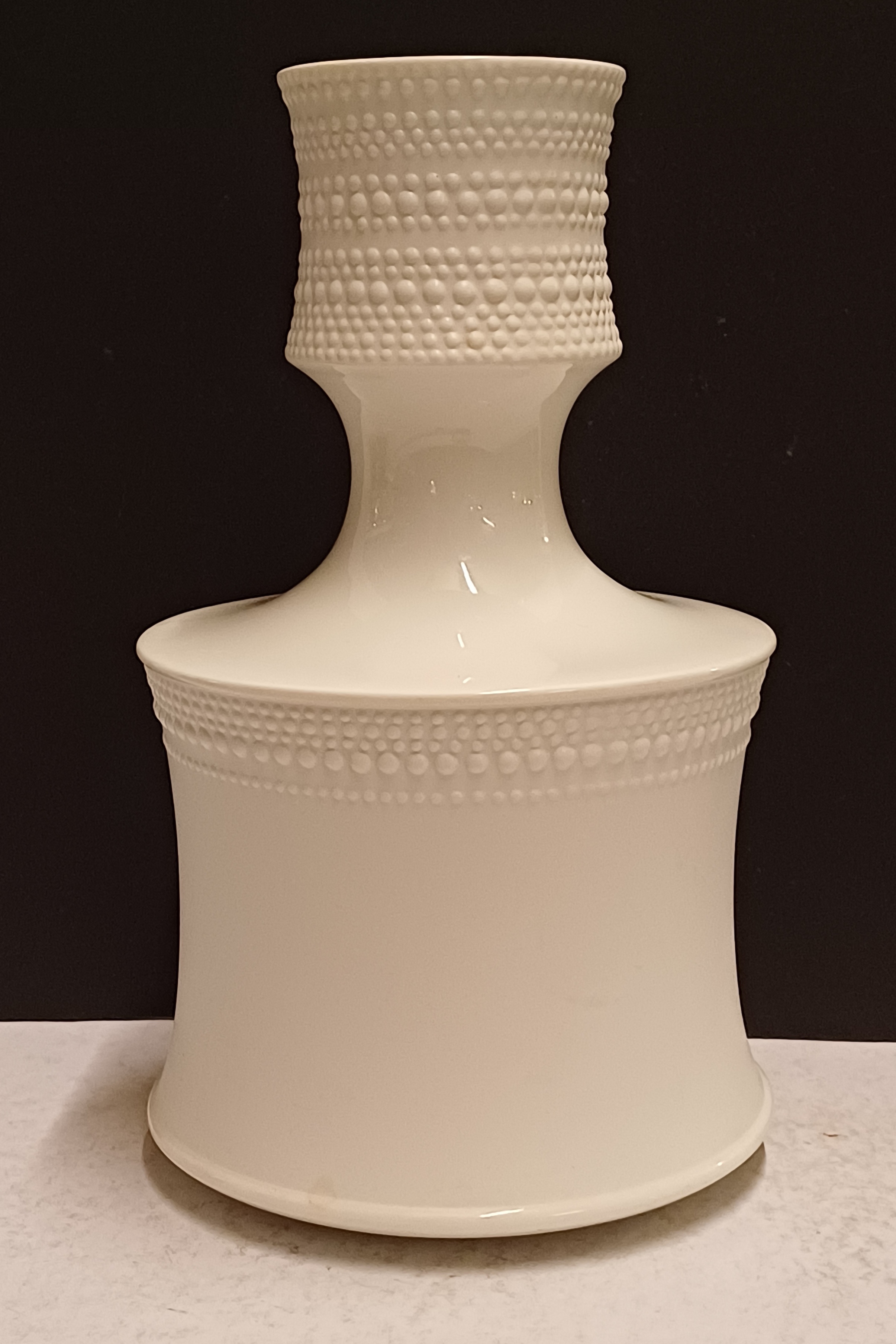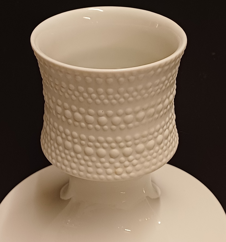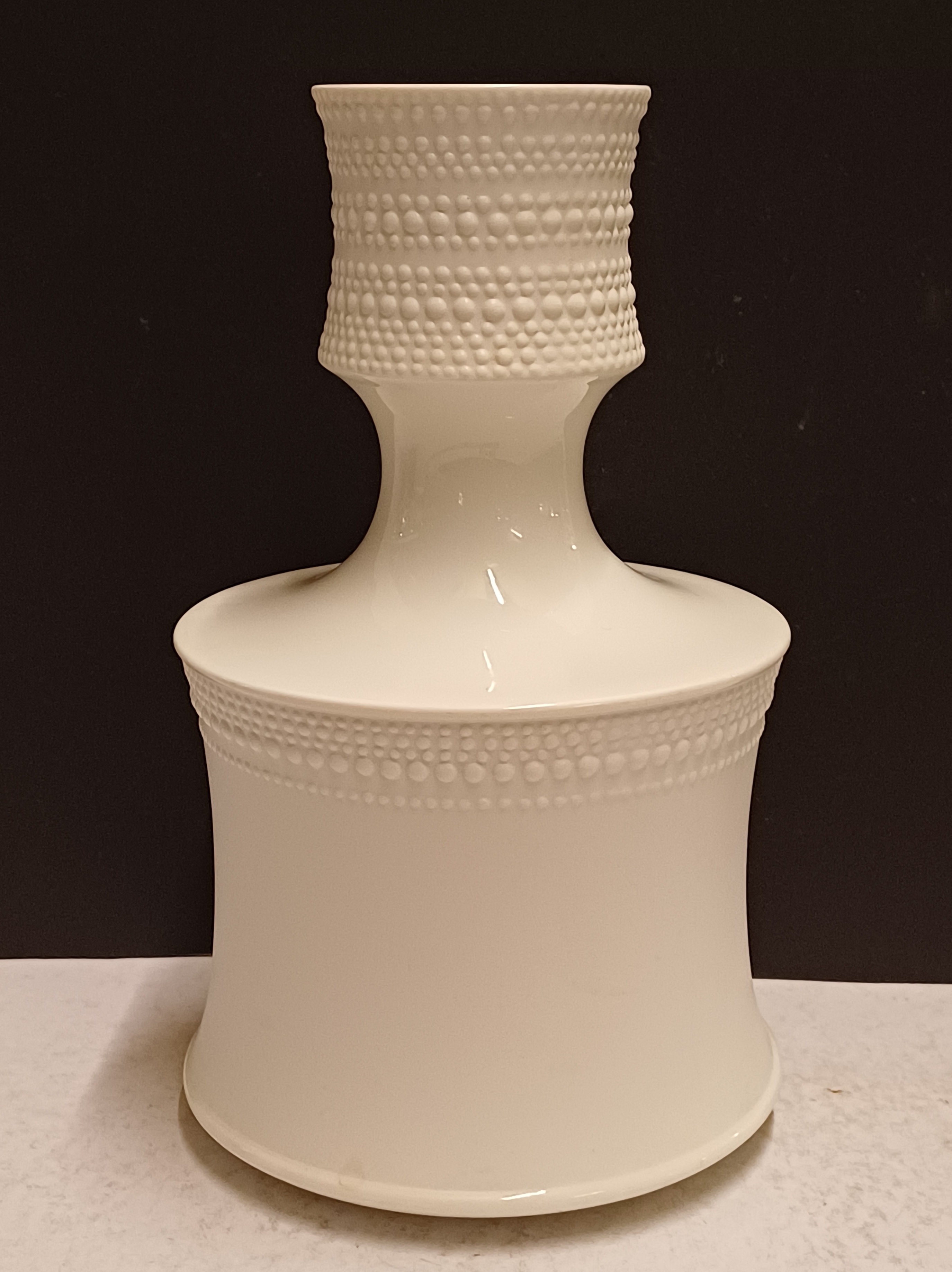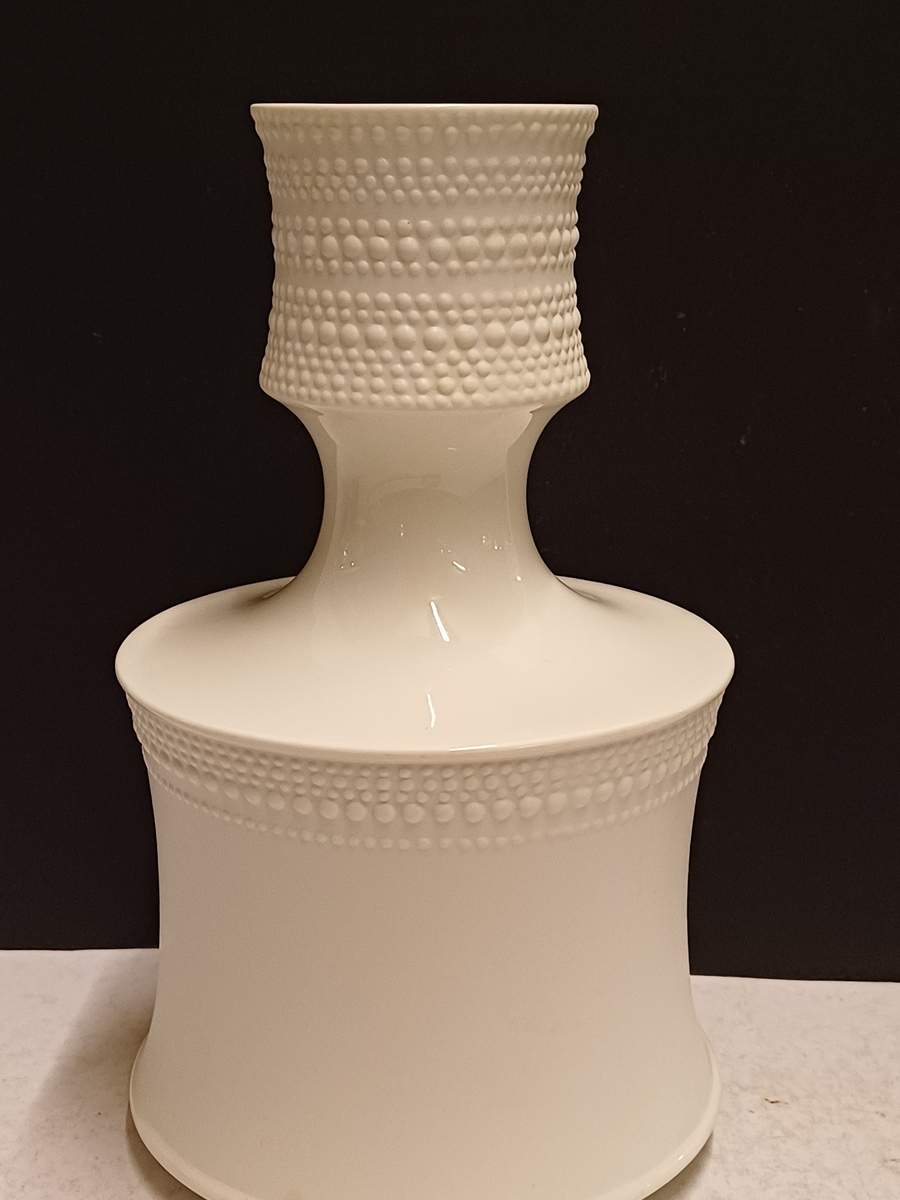 Wit porseleinen vaas met deels gematteerde banen met stippen decoratie. Onderzijde met fabrieksmerk.