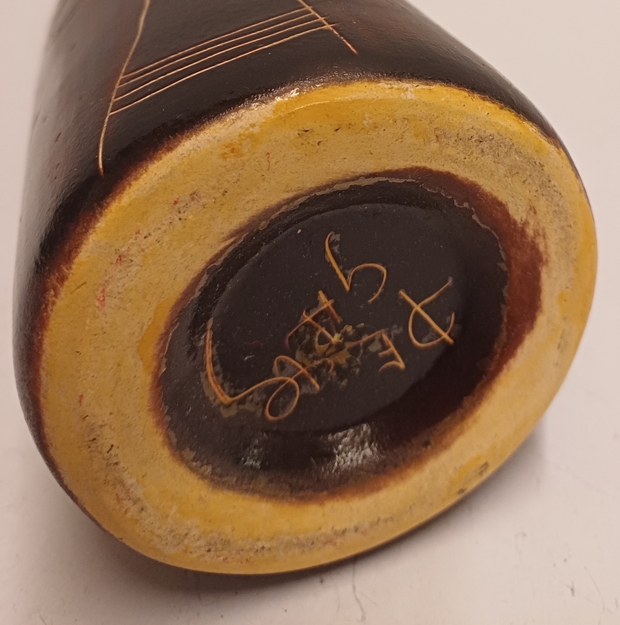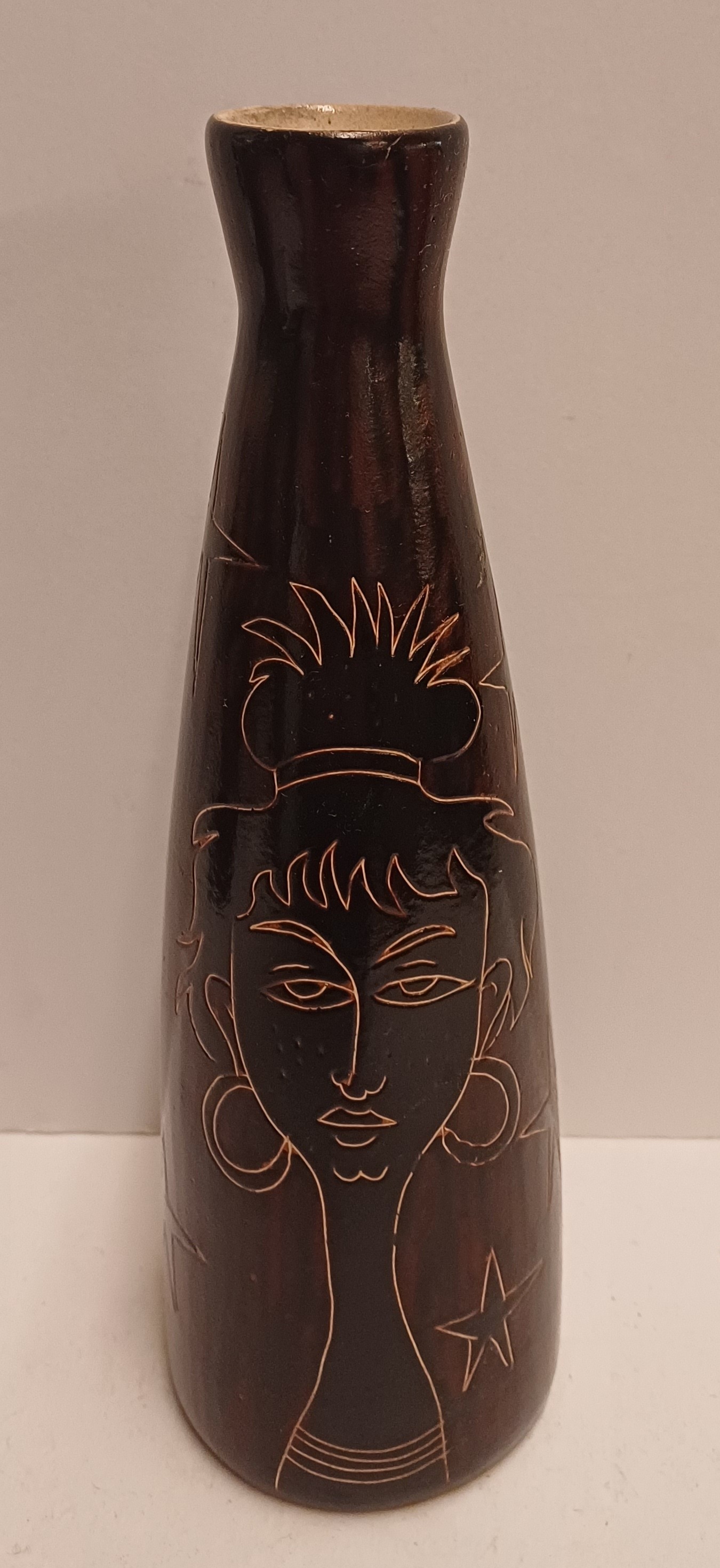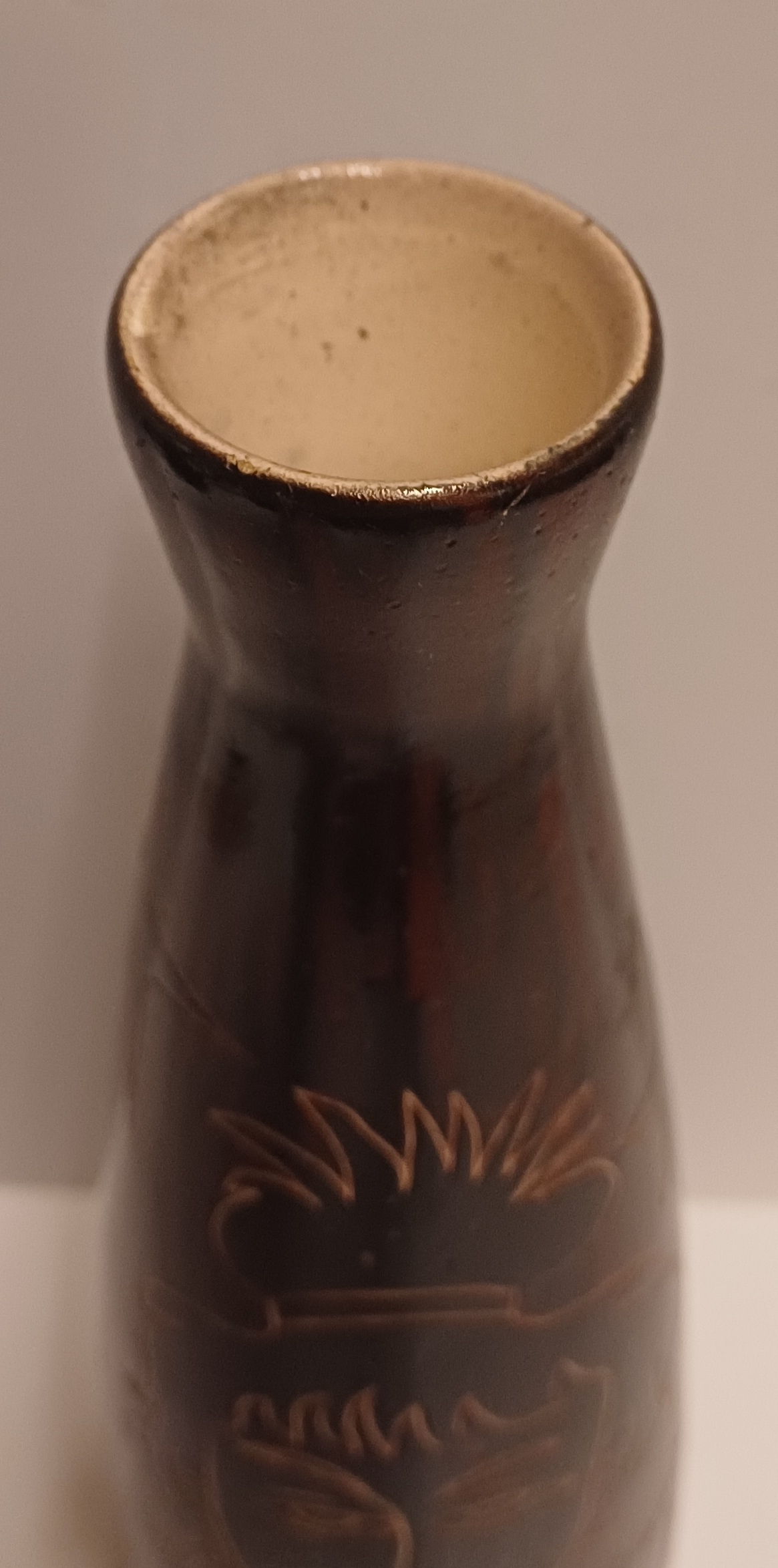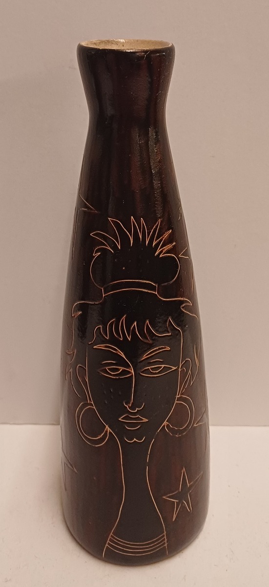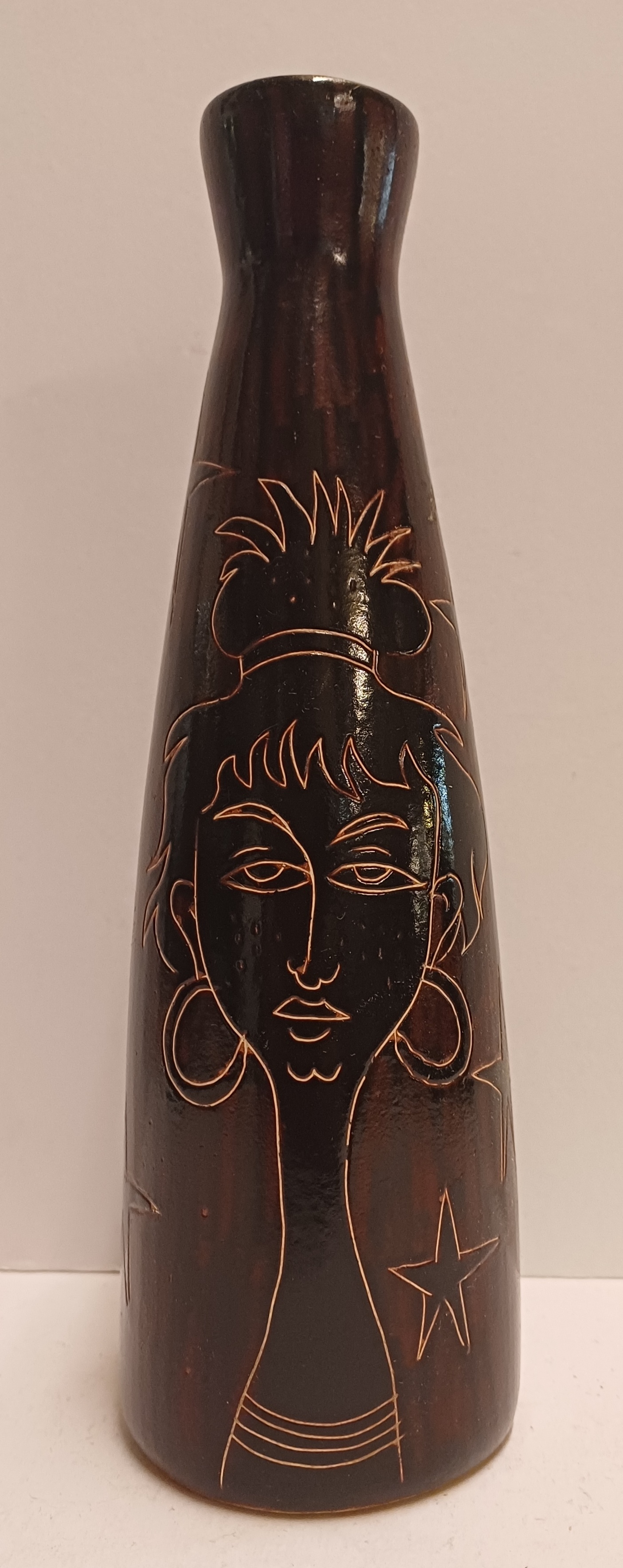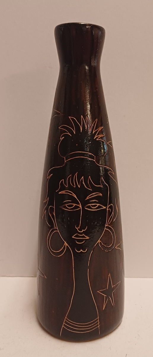 Gegossene Vase mit Dekoration eines Frauenkopfes. Unterseite markiert.