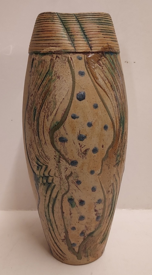 Vase mit abstrakter Dekoration. Ausführung eigene Werkstatt 1998.