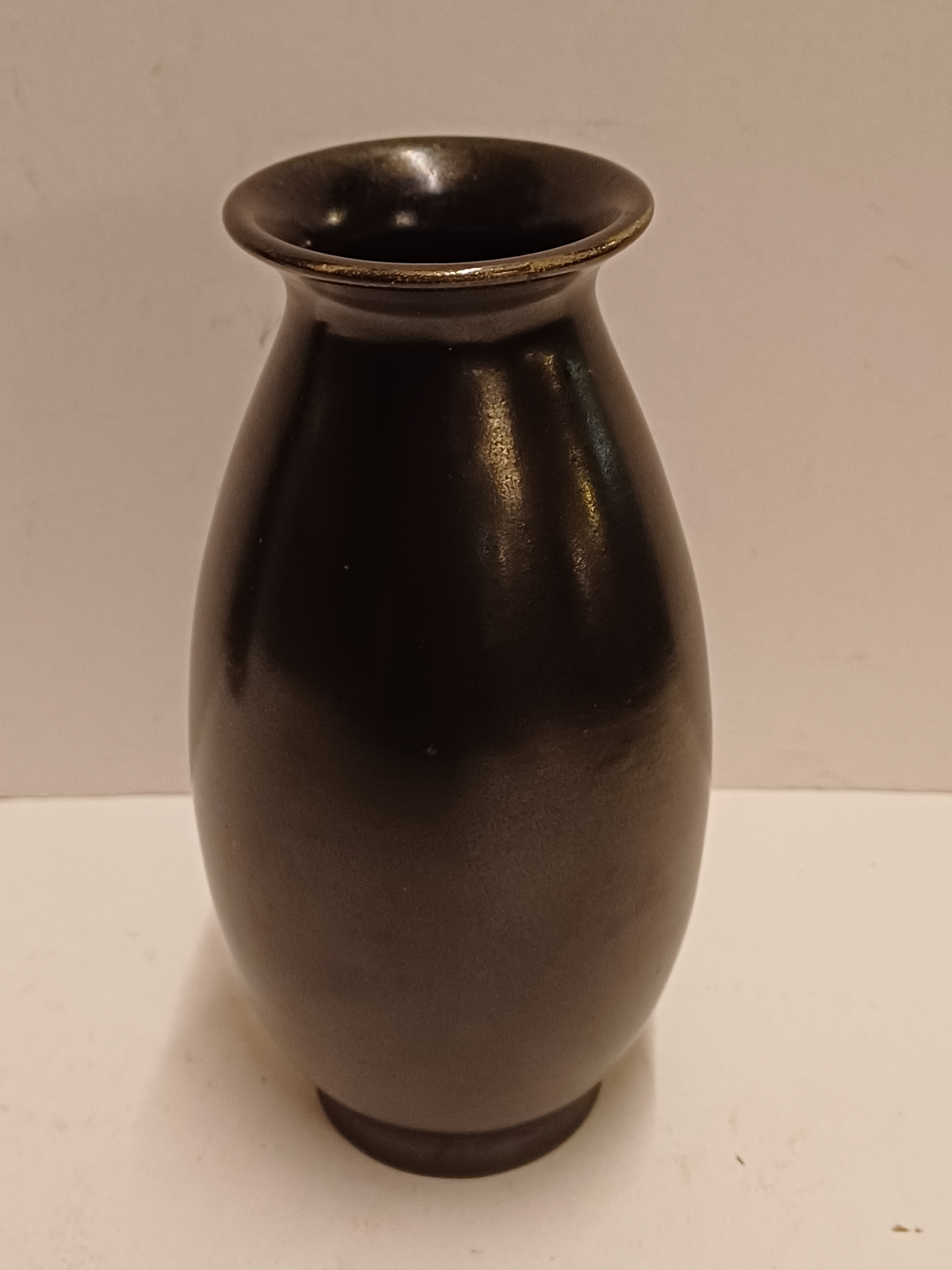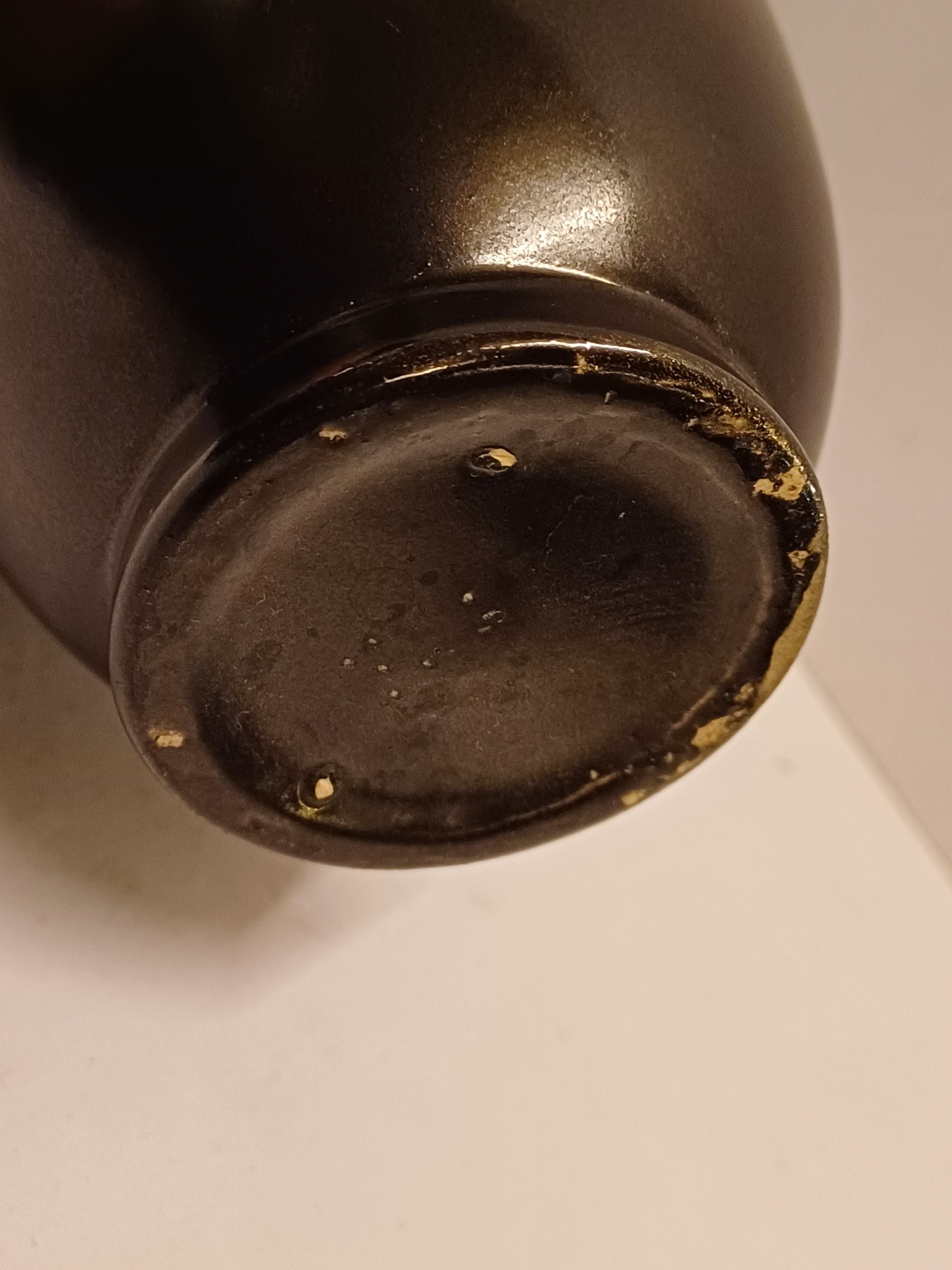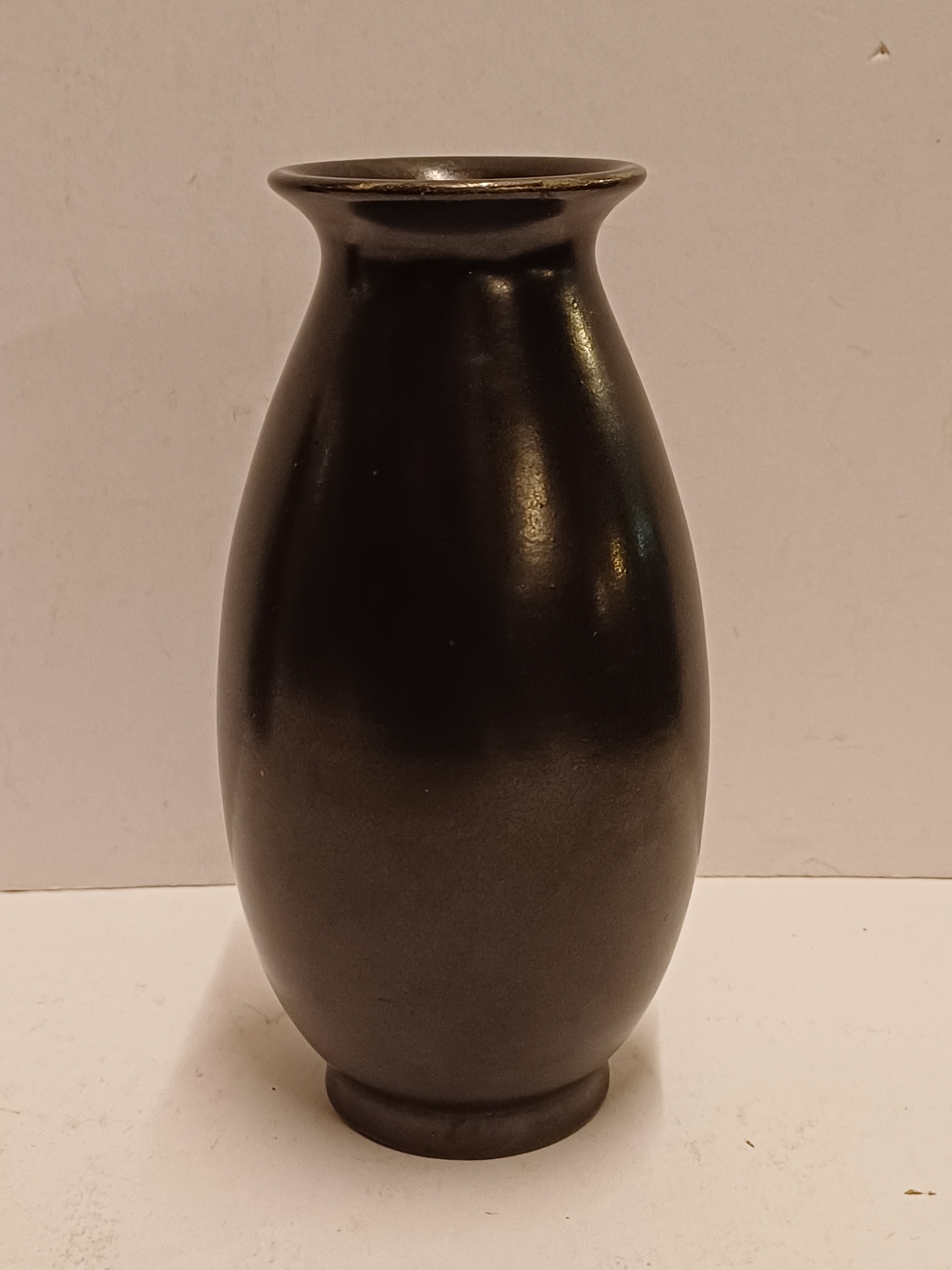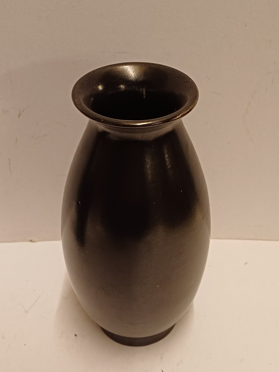 Steingut gegossene Vase mit matt schwarzer Glasur. Nicht signiert.