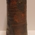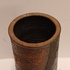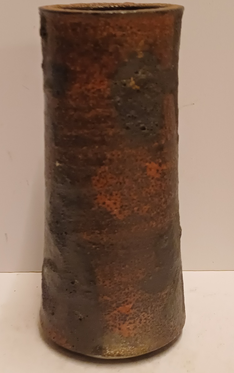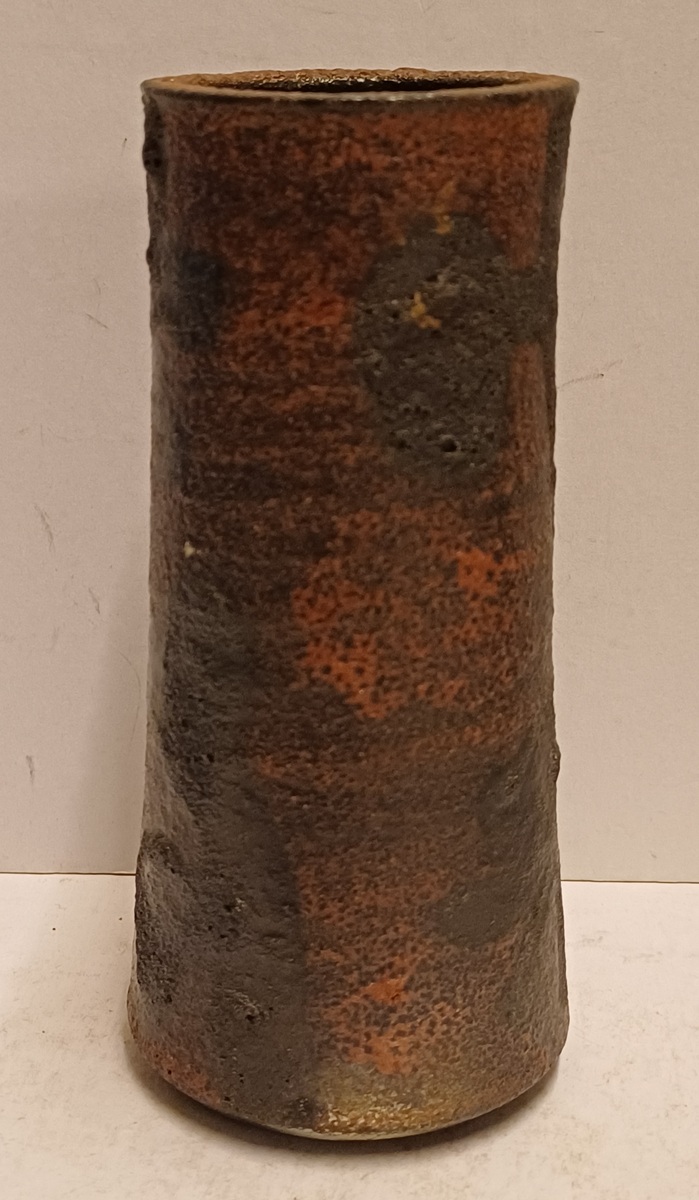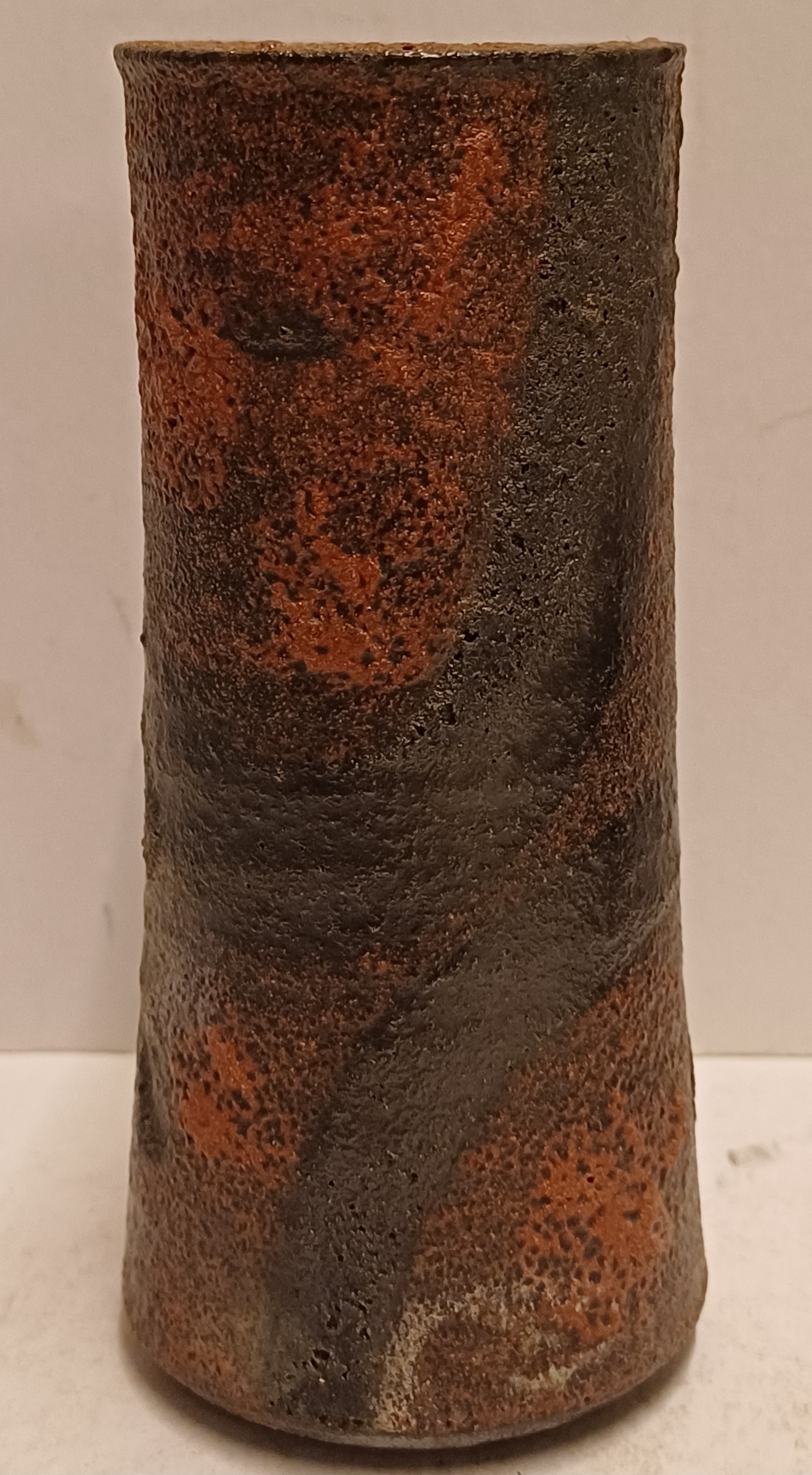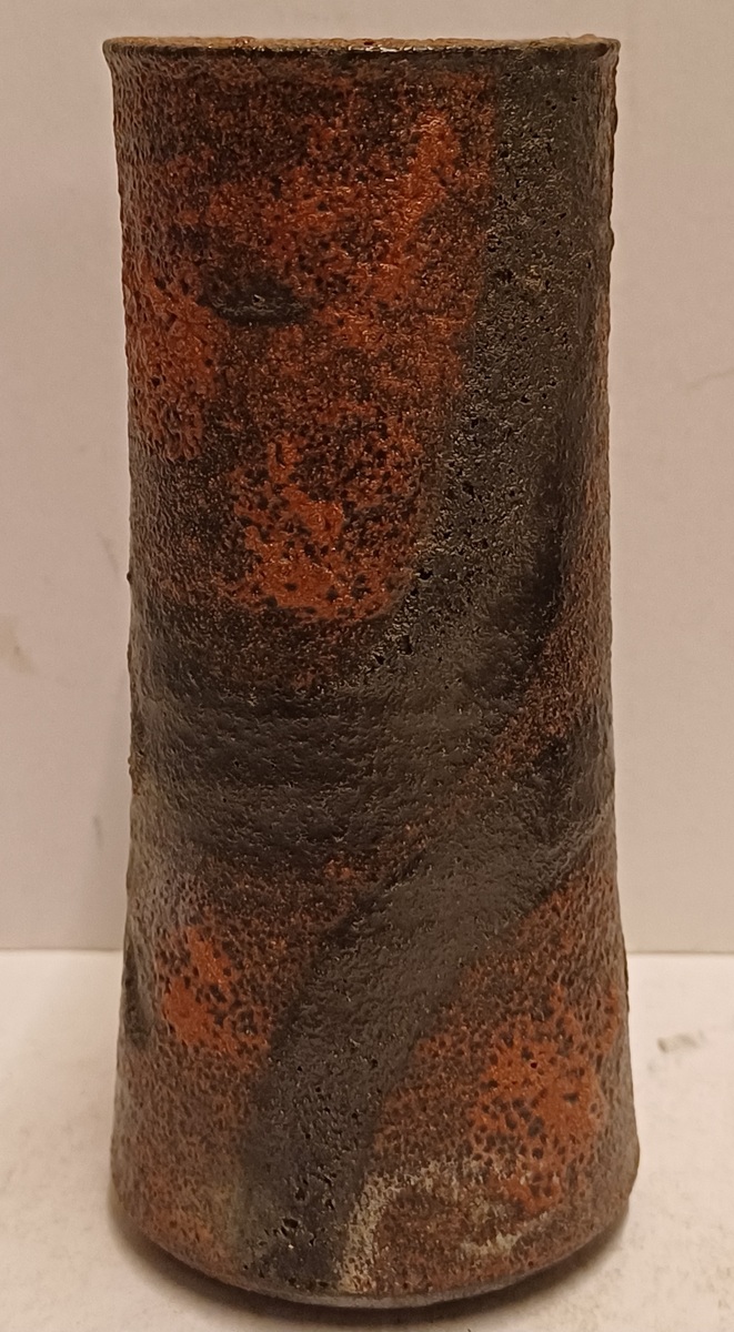 Keramikvase mit brauner Glasur und darauf schwarzer abstrakter Dekoration. Unterseite gekennzeichnet mit Jaap.