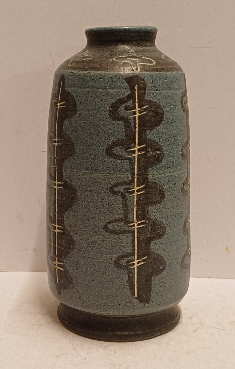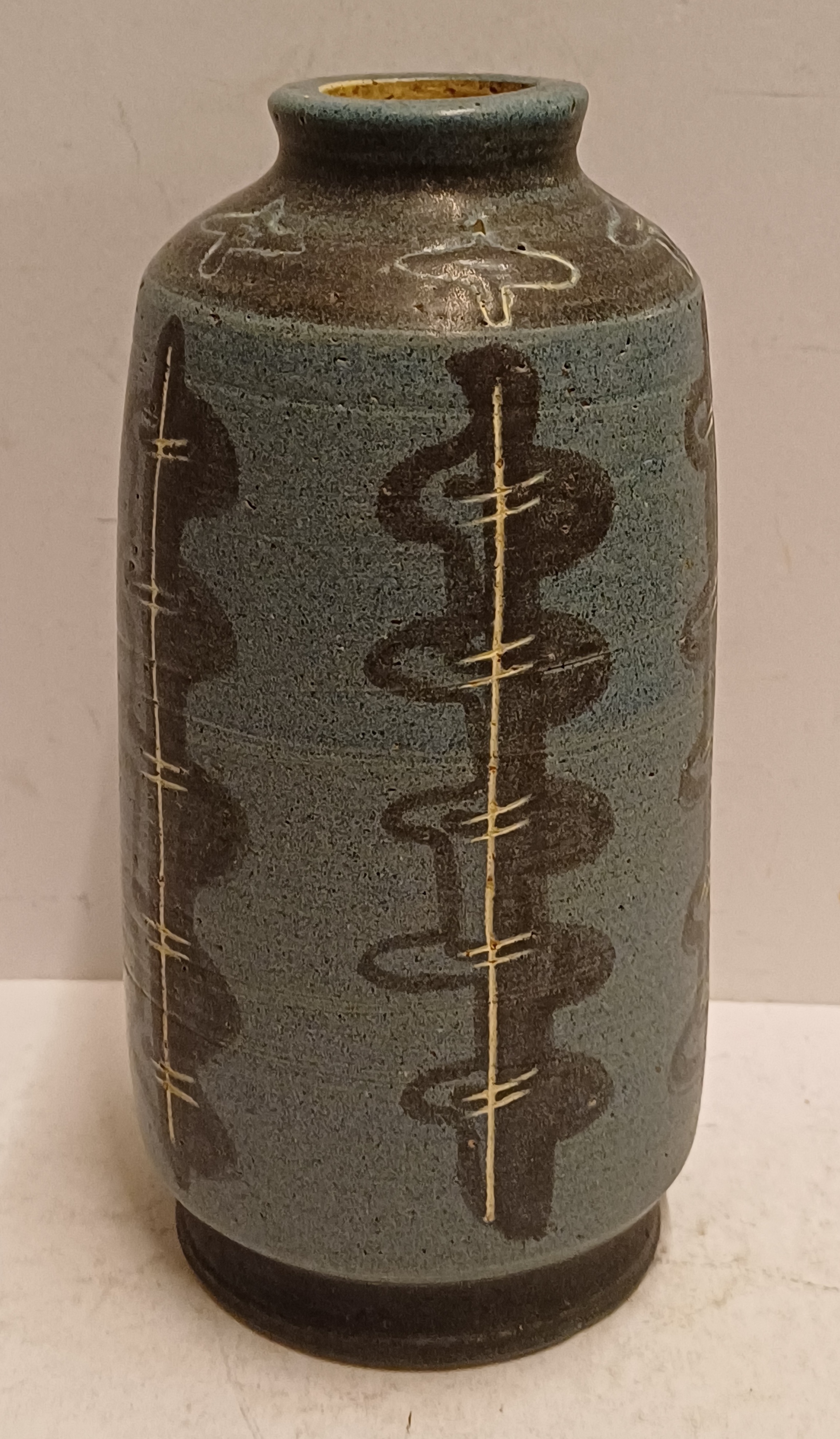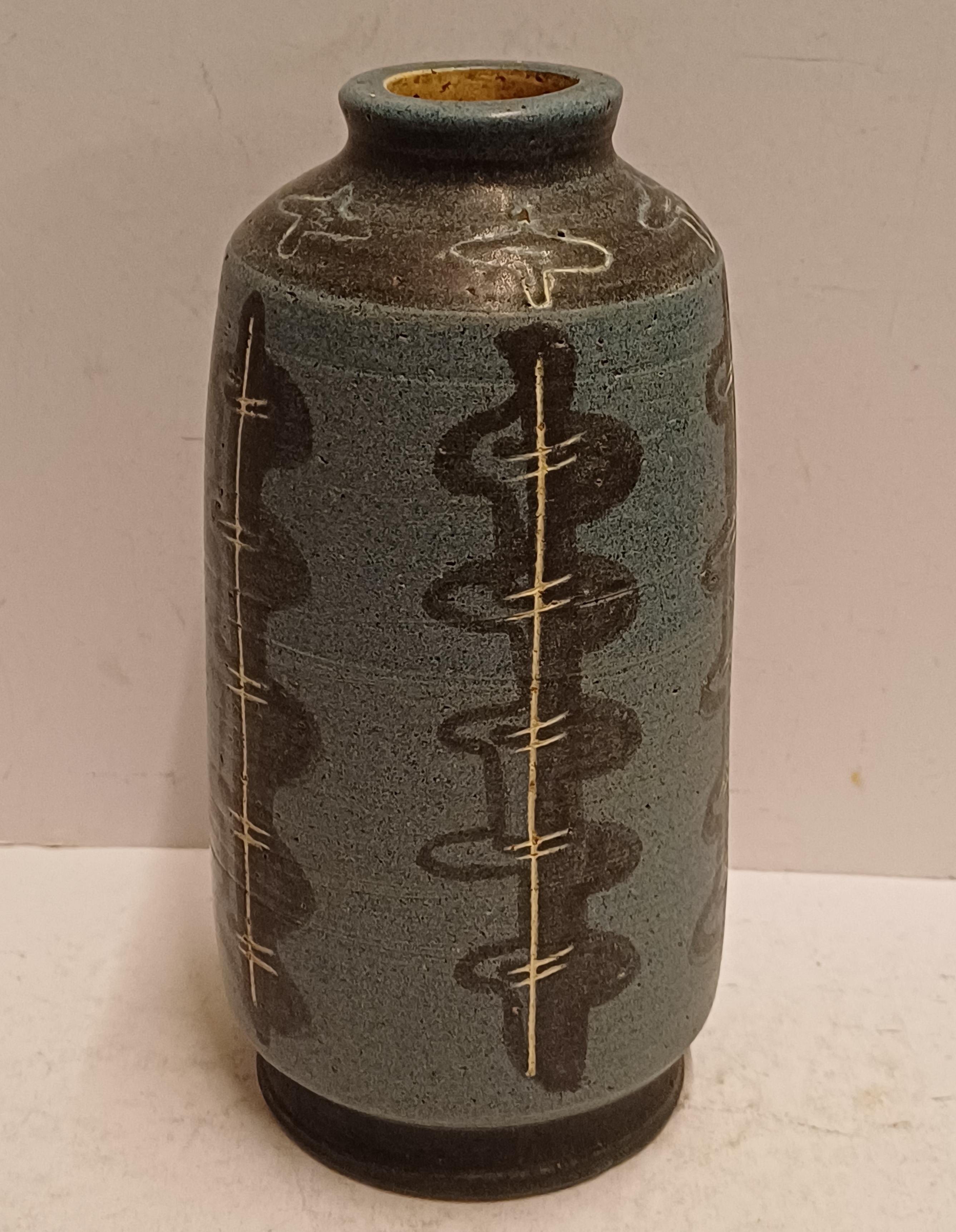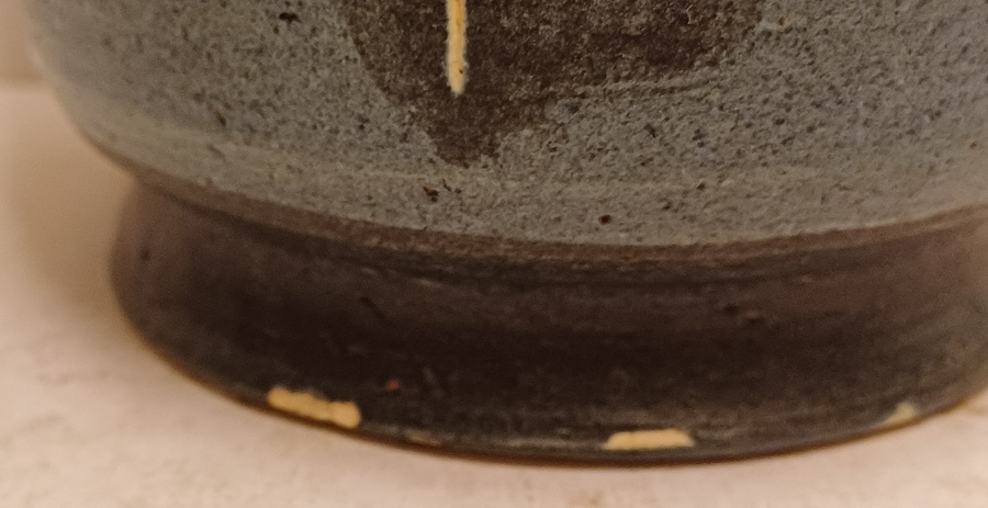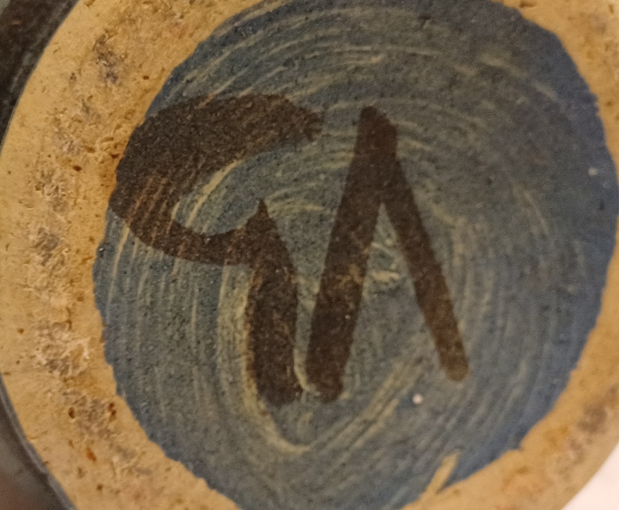 Blauw zwart met ingekerfd decor. Onderzijde met geschilderd VS merk.