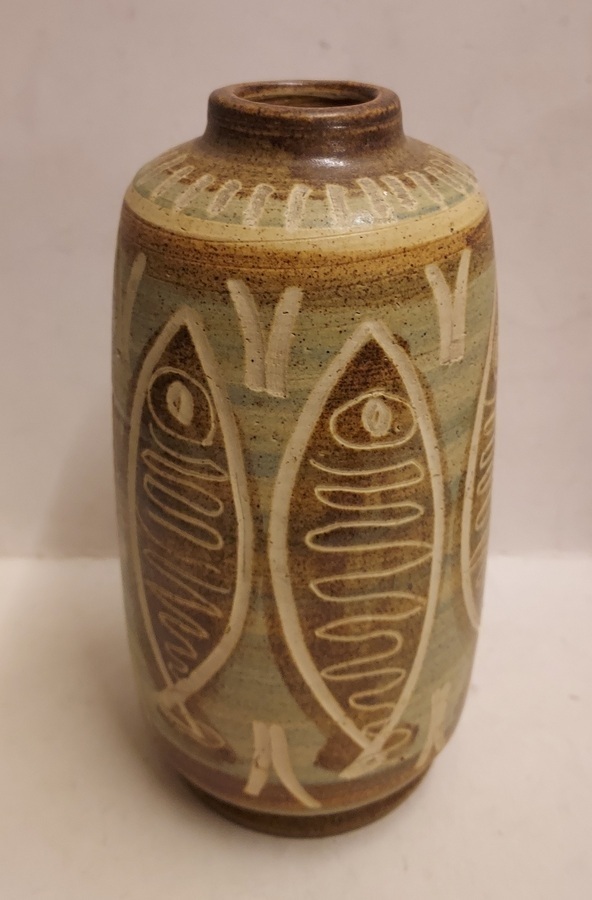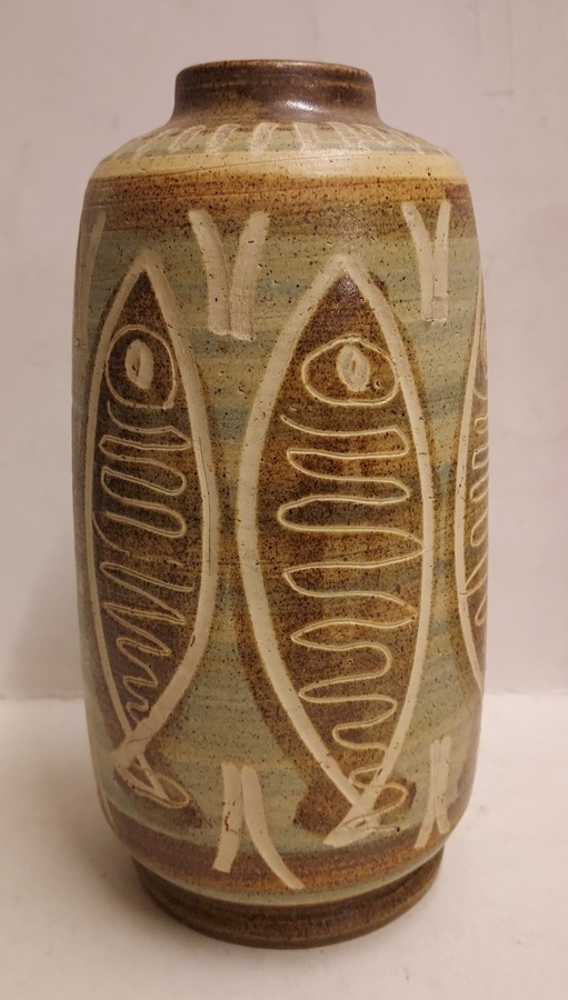 Mit eingeritztem Dekor von Fischen. Unterseite signiert VS.