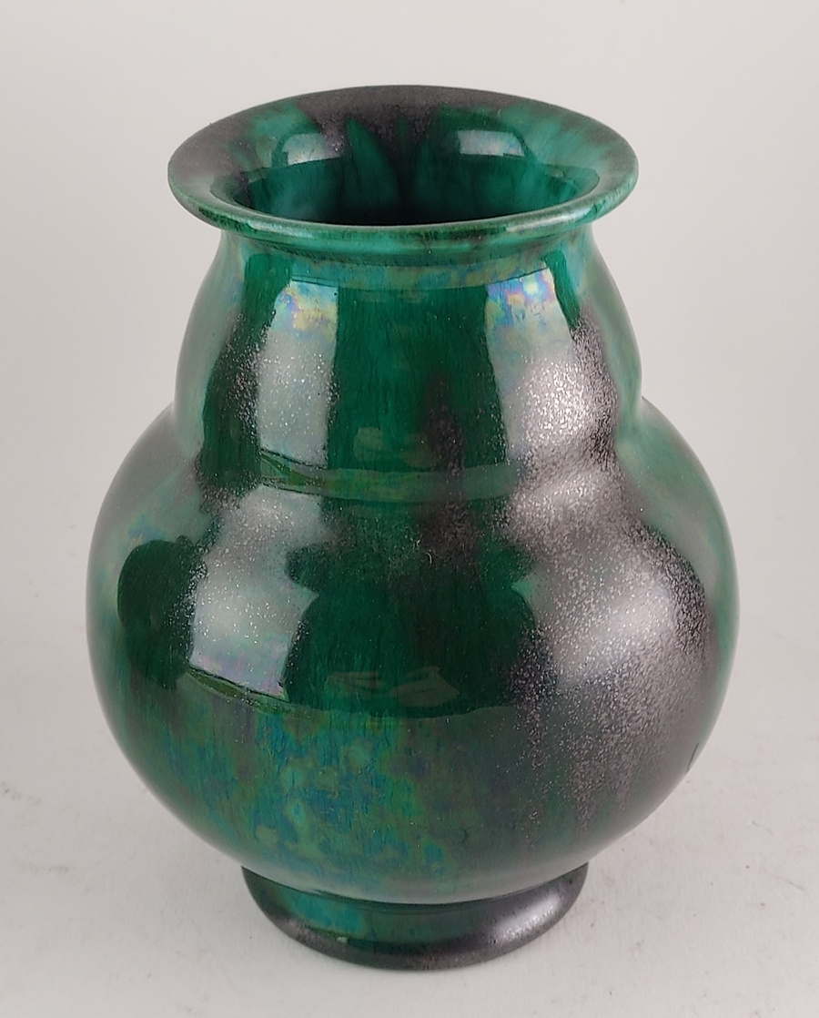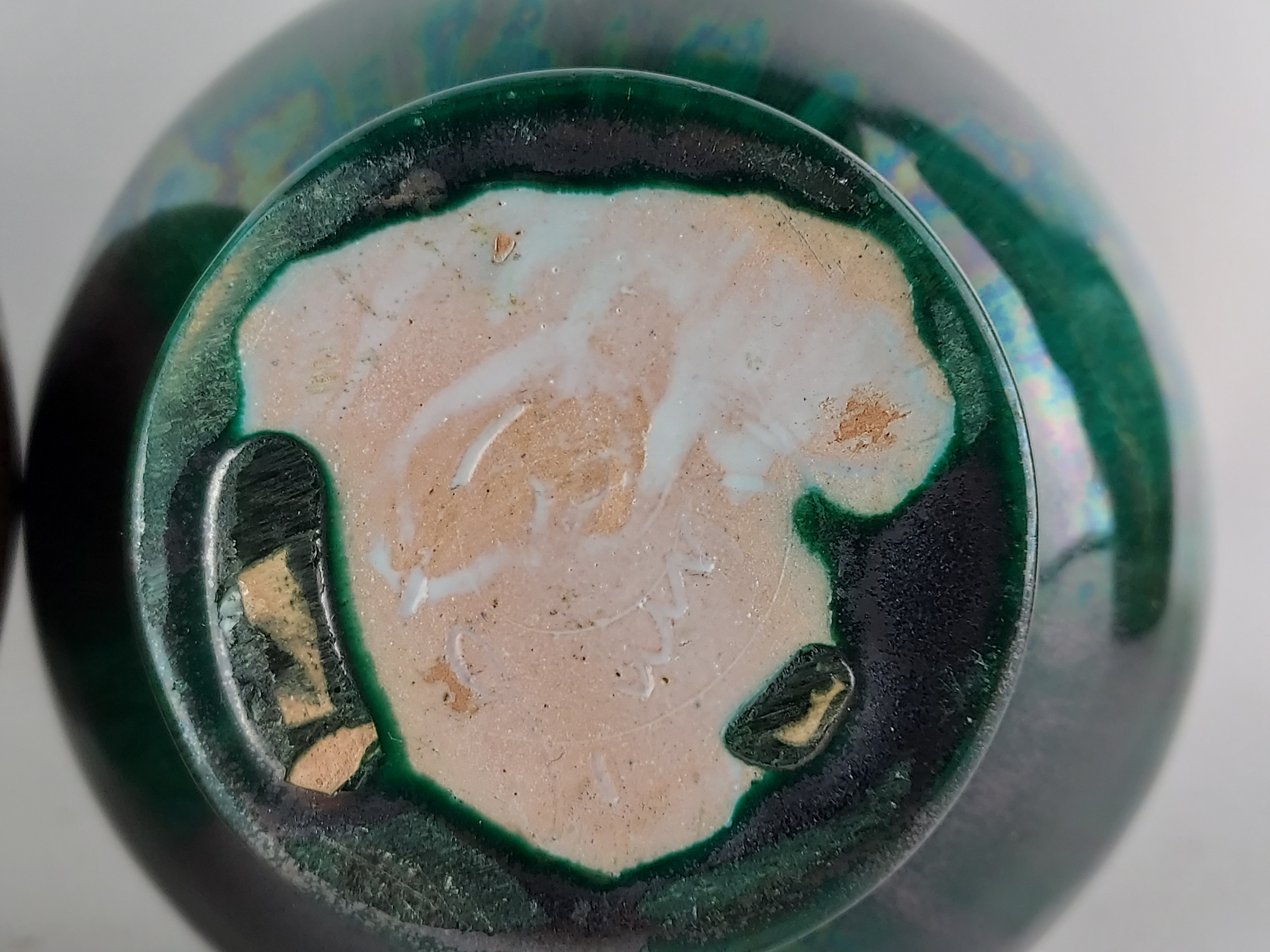 Mit grün-schwarzer Glasur. Unterseite gekennzeichnet.