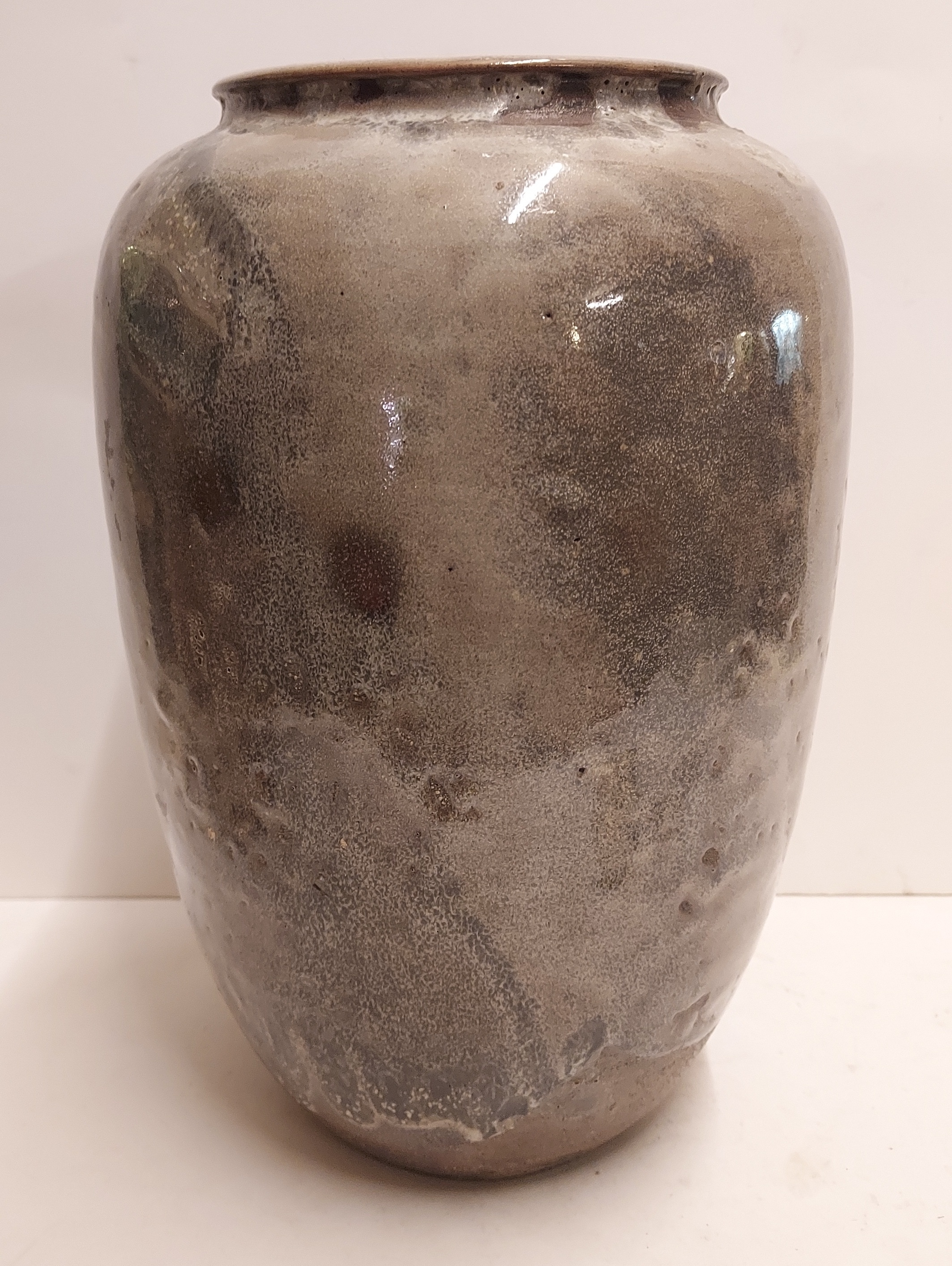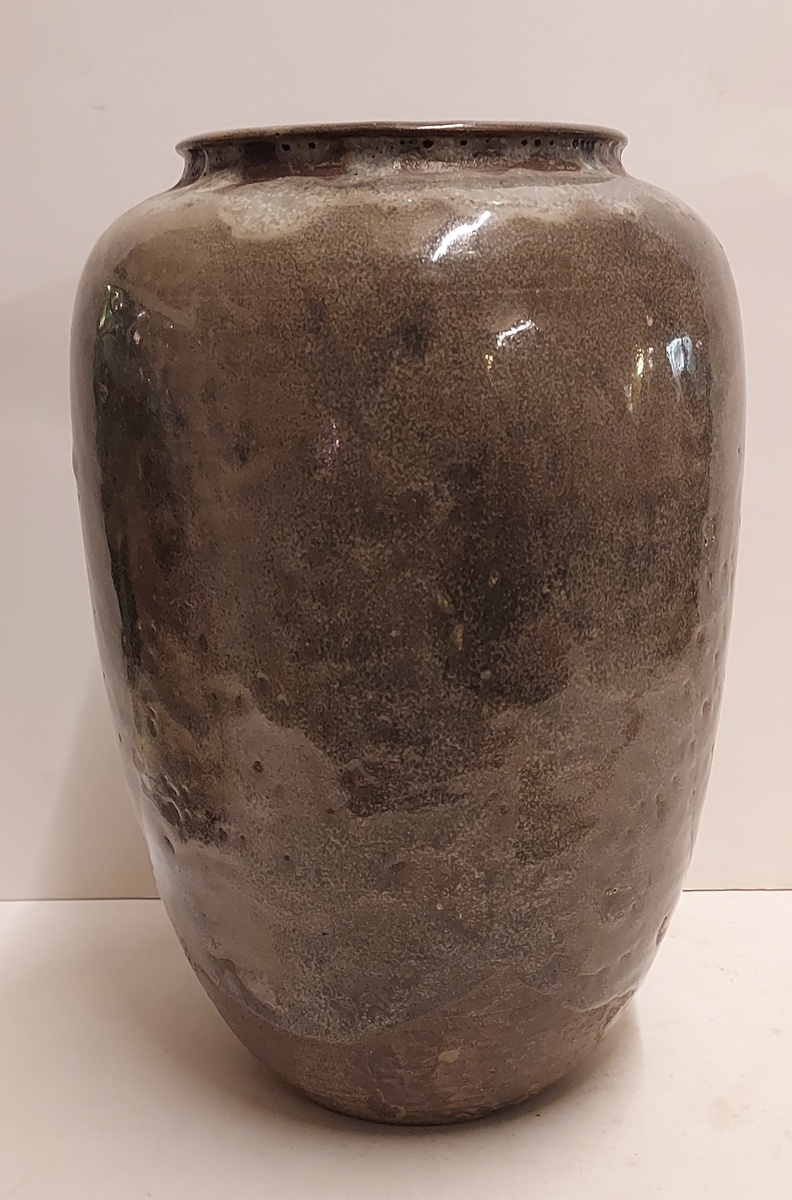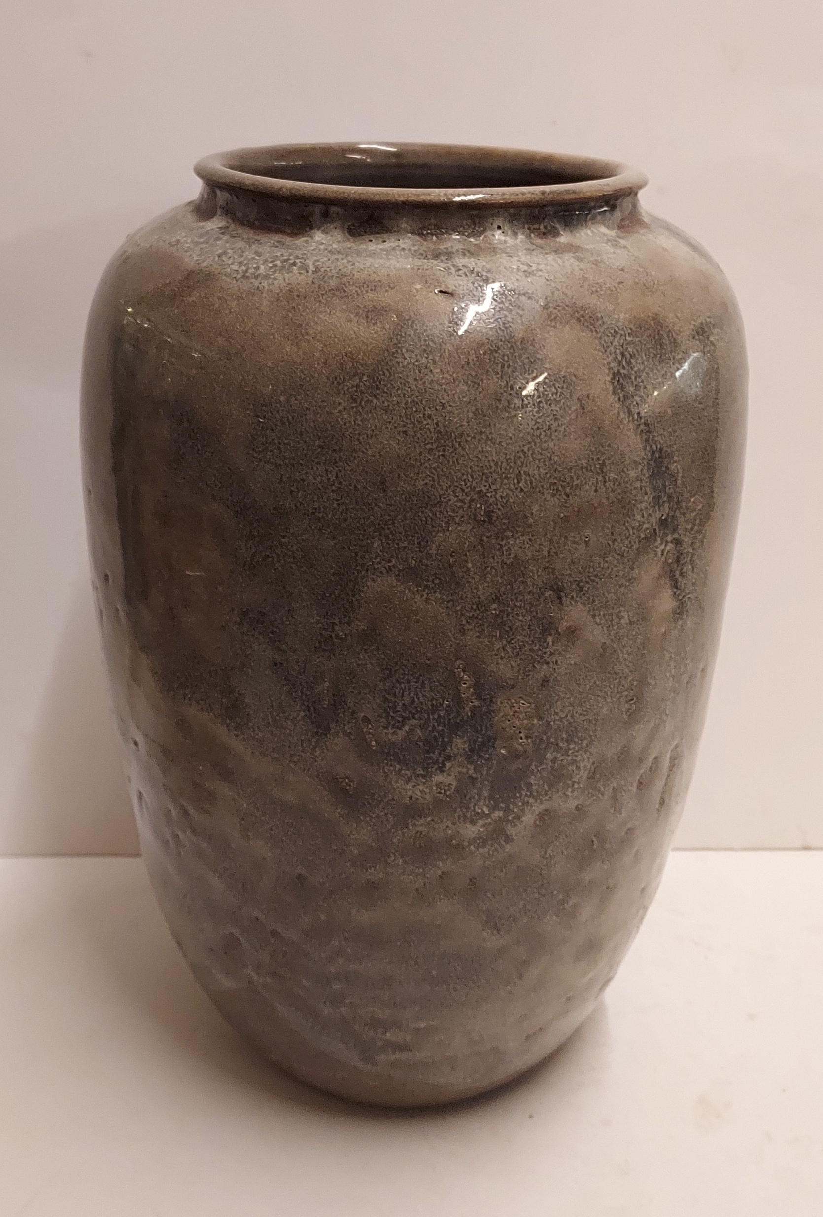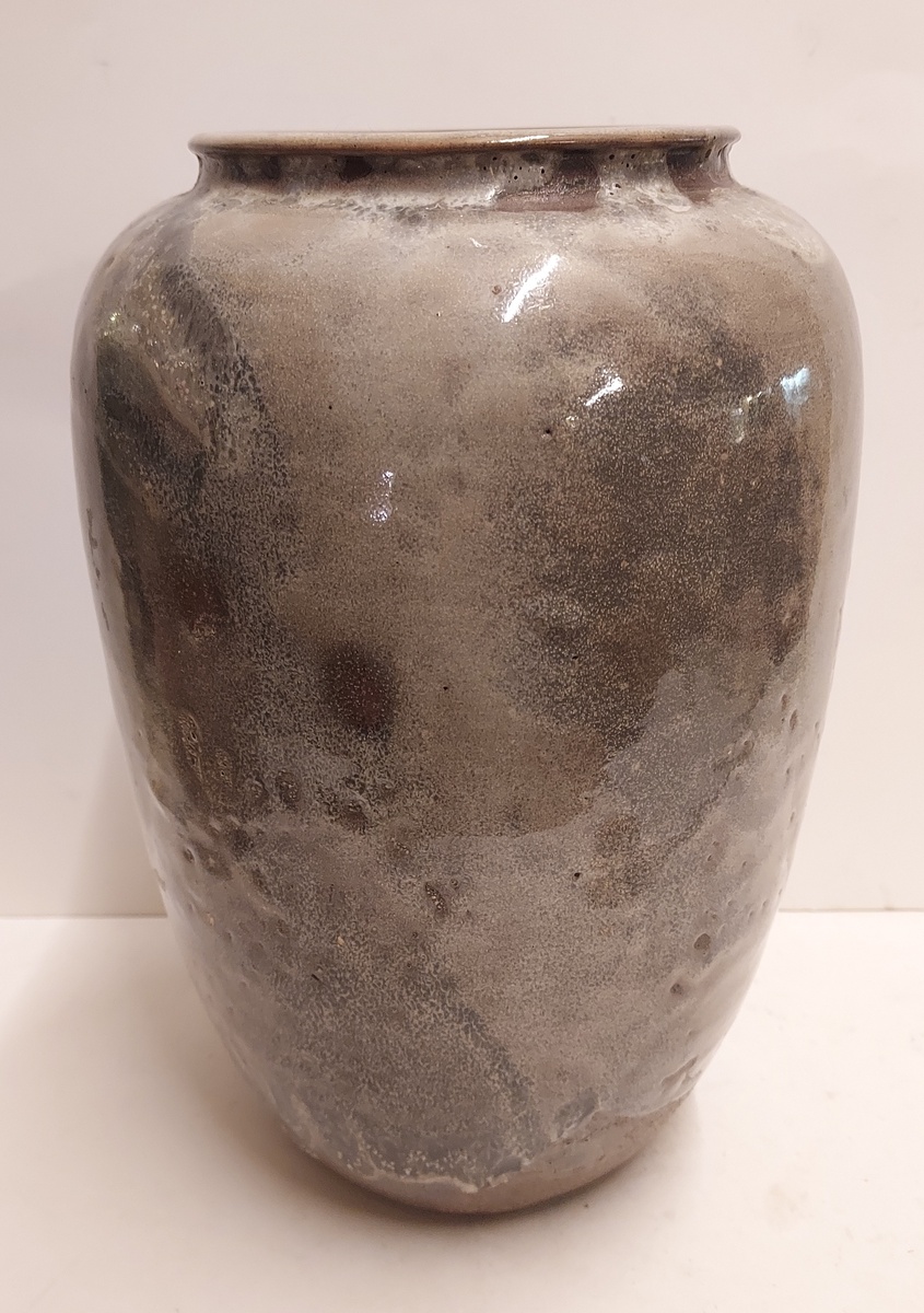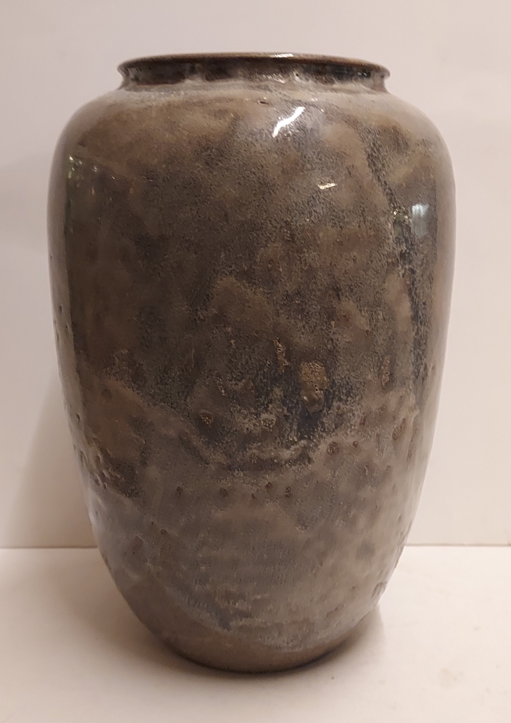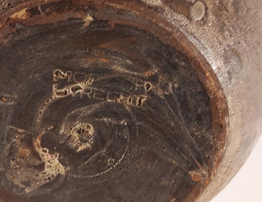 Mit grauer reduzierter Glasur. Unterseite mit Fabrikmarke.