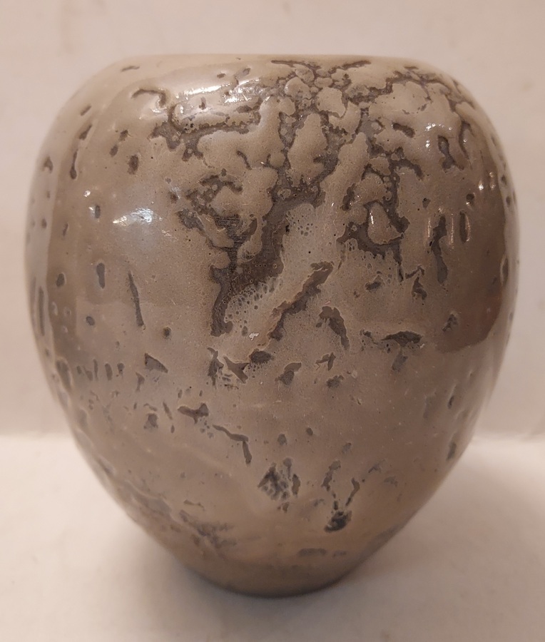Mit grauer Schrumpfglasur. Unterseite mit gestempeltem Fabrikmarke.