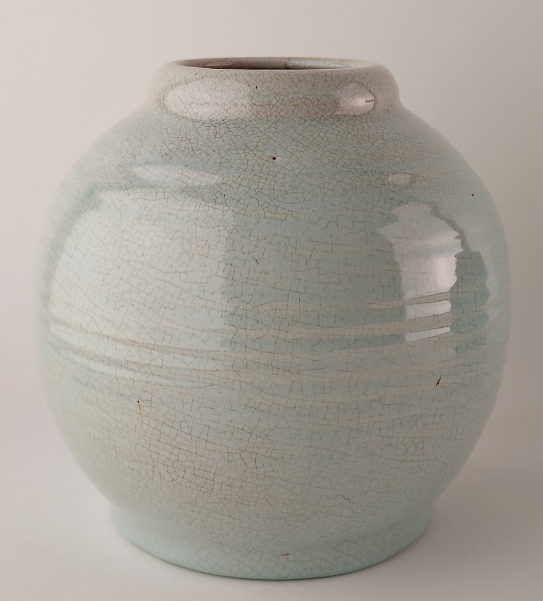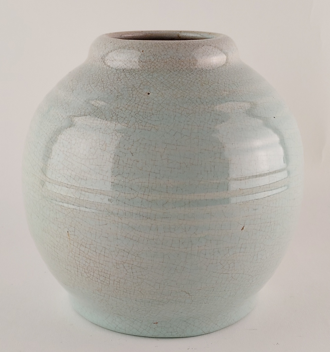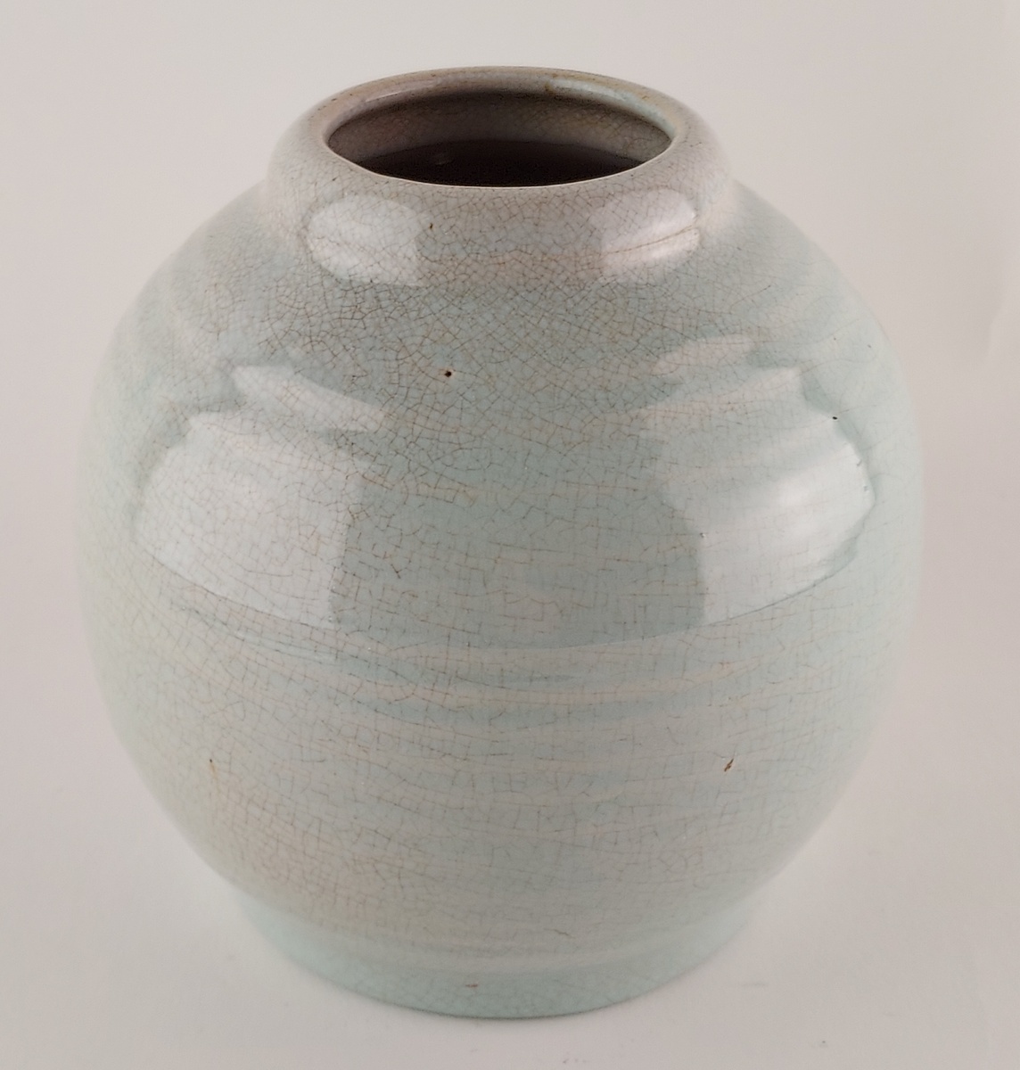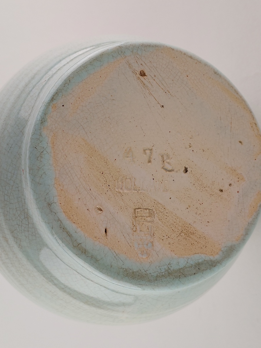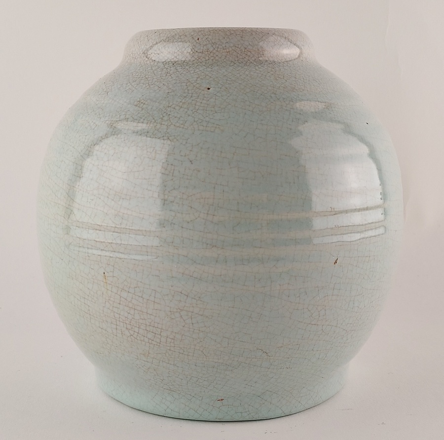 Bauchige Vase mit meerblauem Craquelé-Glasur. Modellnummer 47B. An der Unterseite signiert.