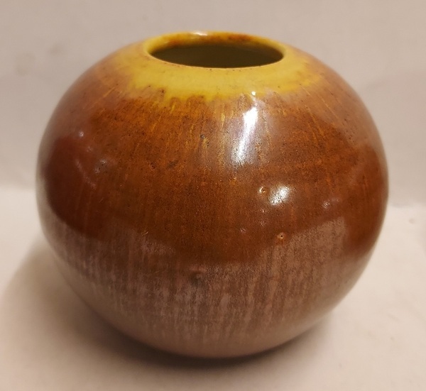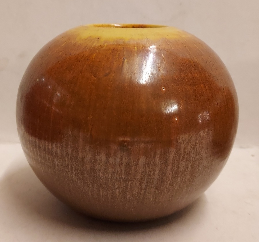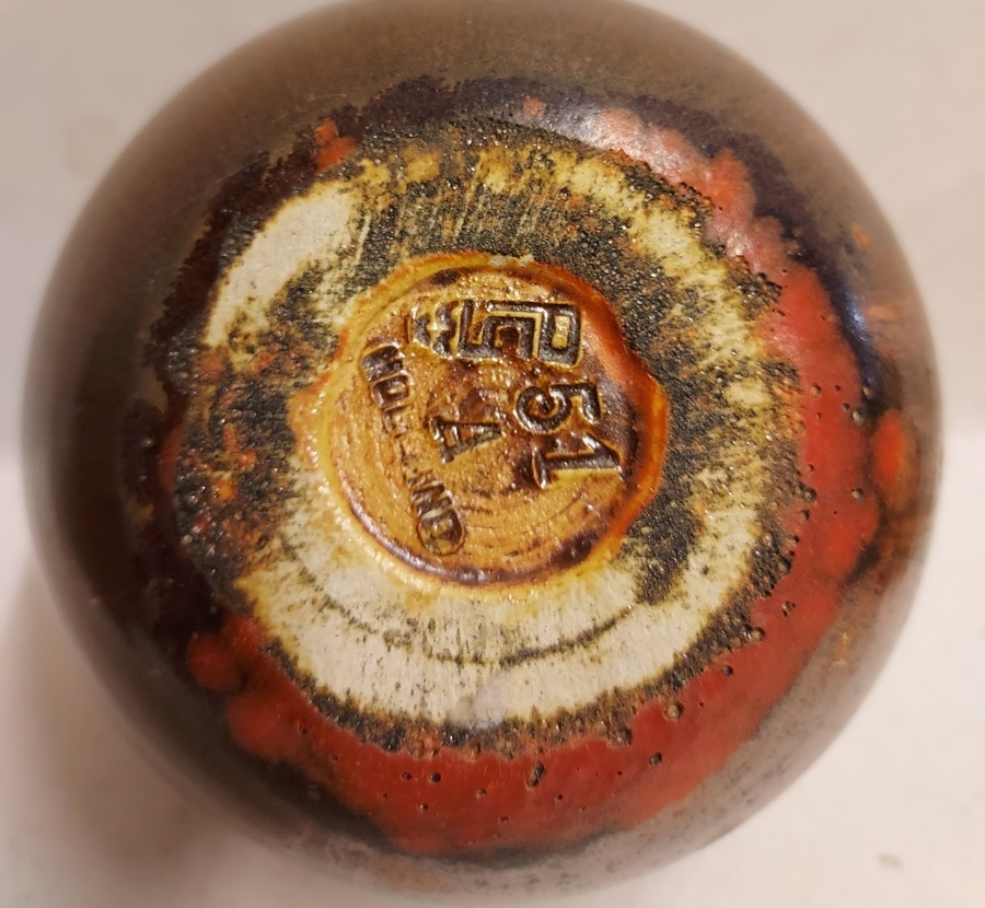 Mit flammender orangefarbener Glasur. Unterseite mit Fabrikmarke, Modellnummer 51A.
