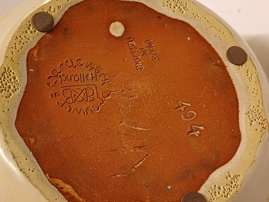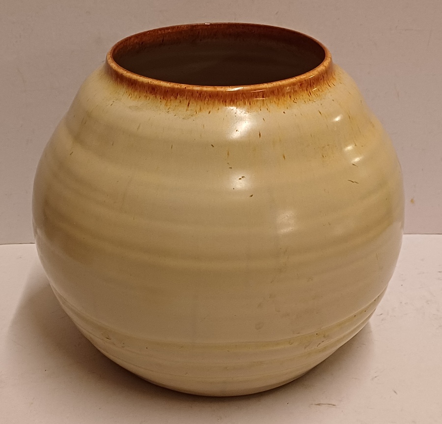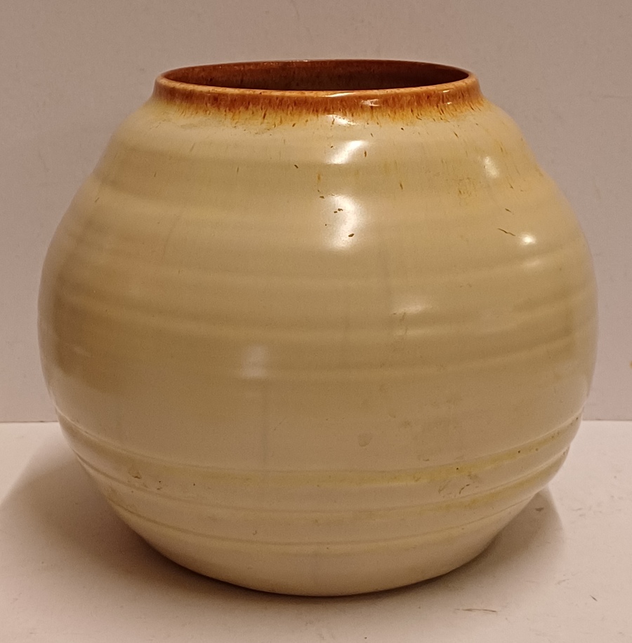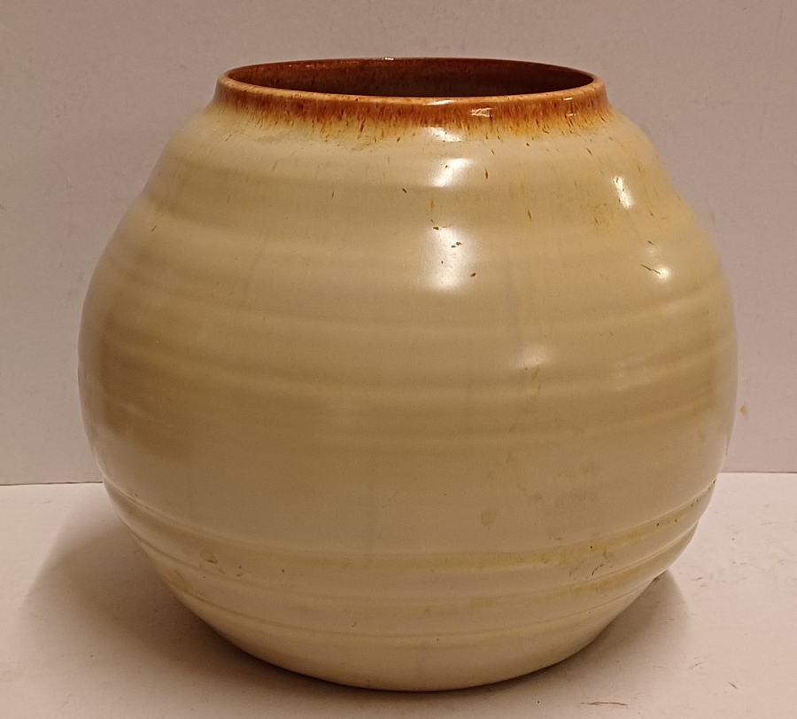 Vaas met creme glazuur en bruine mondrand. Onderzijde met modelnummer en signatuur.